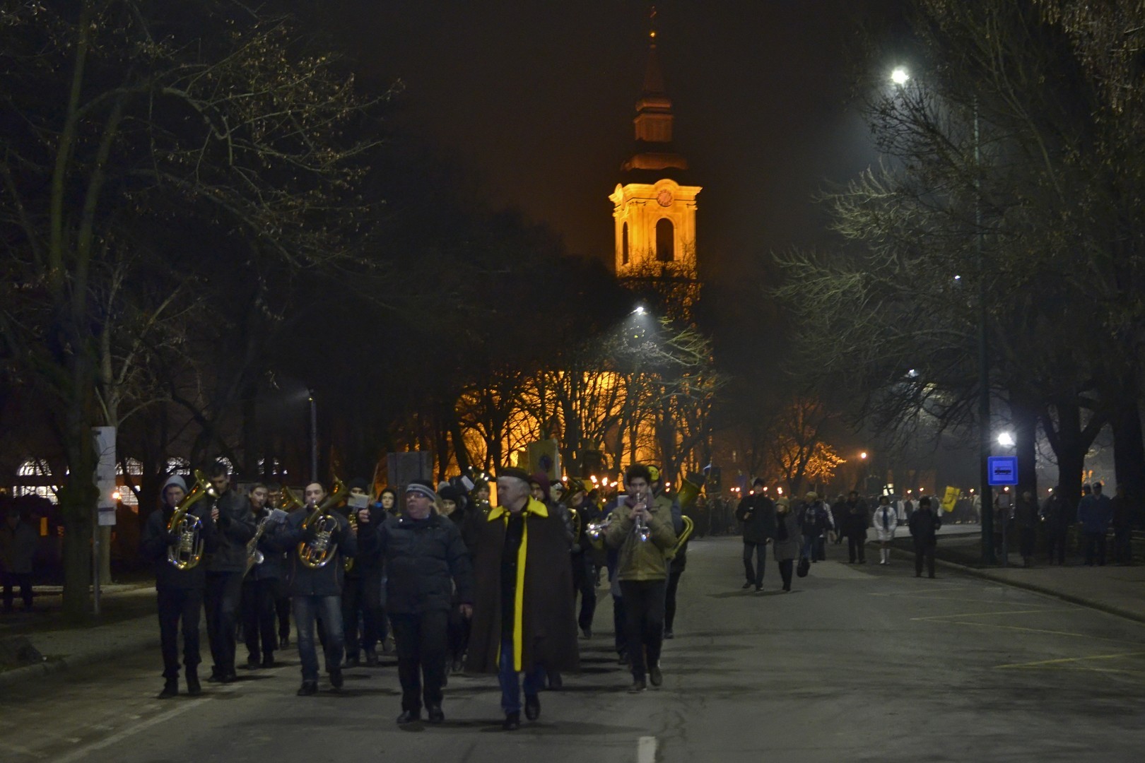 Az ünnepi beszédet követően további előadásokat hallhattak a megjelentek, majd a lovagrendek részvételével fáklyás felvonulás indult a gyulai várba. A menetet a Tótkomlósi Ifjúsági Koncert Fúvószenekar kísérte, így a vonulók égő fáklyáik mellett hangos zenével is hírül adhatták a városnak, hogy kezdetét vette az idei mézes fesztivál. A díszmeneten Simon Diána, a 2014-es év mézkirálynője is részt vett.