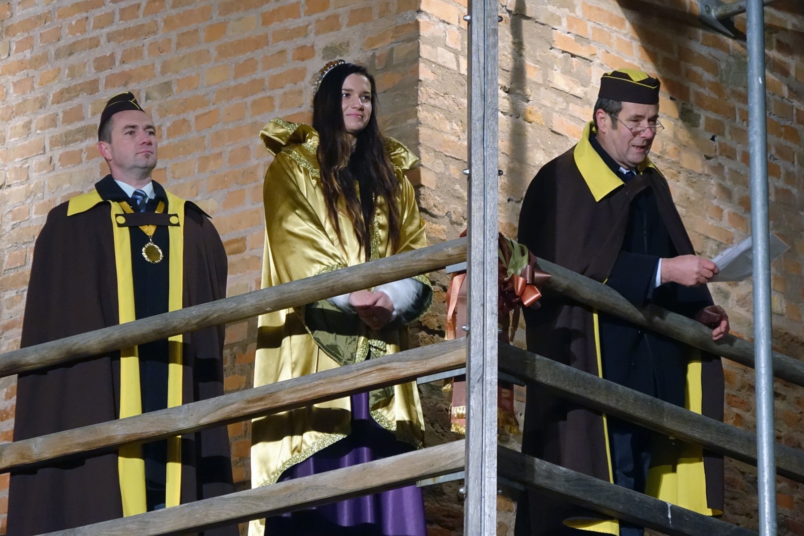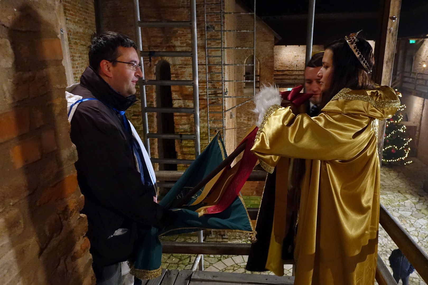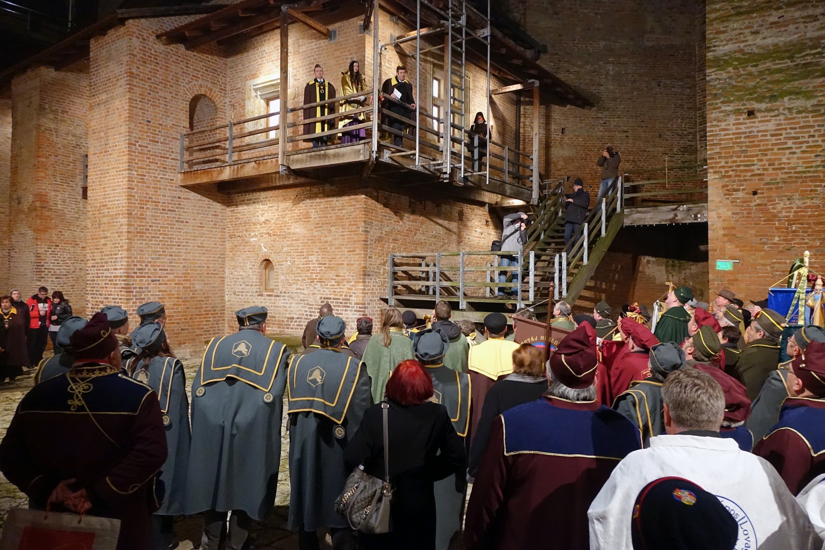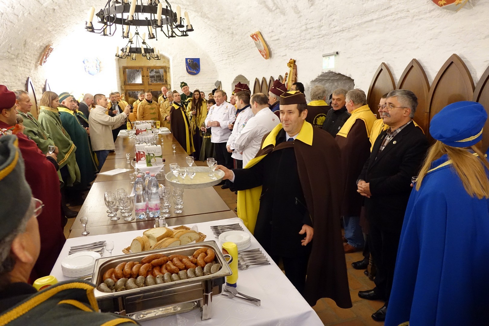 A gyulai várban Haász Ferenc üdvözölte az egybegyűlteket, köztük a 14 lovagrendet, melyek zászlajára ezután Simon Diána mézkirálynő tűzött szalagot. A várudvaron megtartott rövid köszöntőt kellemes hangulatú fogadás követte, ahol a vendégekre jobbnál jobb finomságok vártak, került az asztalra kolbász, hurka és pogácsa is, de nem maradhatott el a pálinka és a borkóstoló sem.