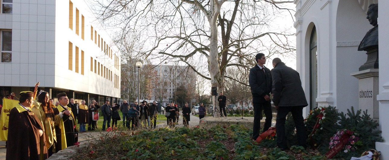 Göndöcs Benedek apátplébános emléke előtt rótták le tiszteletüket a VII. Gyulai Méz- és Mézeskalács Fesztivál, valamint a VI. Göndöcs Benedek Országos Gasztronómiai Emlékverseny keretében megrendezett ünnepi megemlékezés résztvevői december 13-án a Göndöcs-kertben. Az összejövetelen dr. Mészáros László, az OMME elnöke idézte fel Gyula város kiemelkedő alakjának legjelentősebb cselekedeteit, majd a jelenlévők elhelyezték koszorúikat a gyulai Vigadó mellett álló Göndöcs mellszobornál.