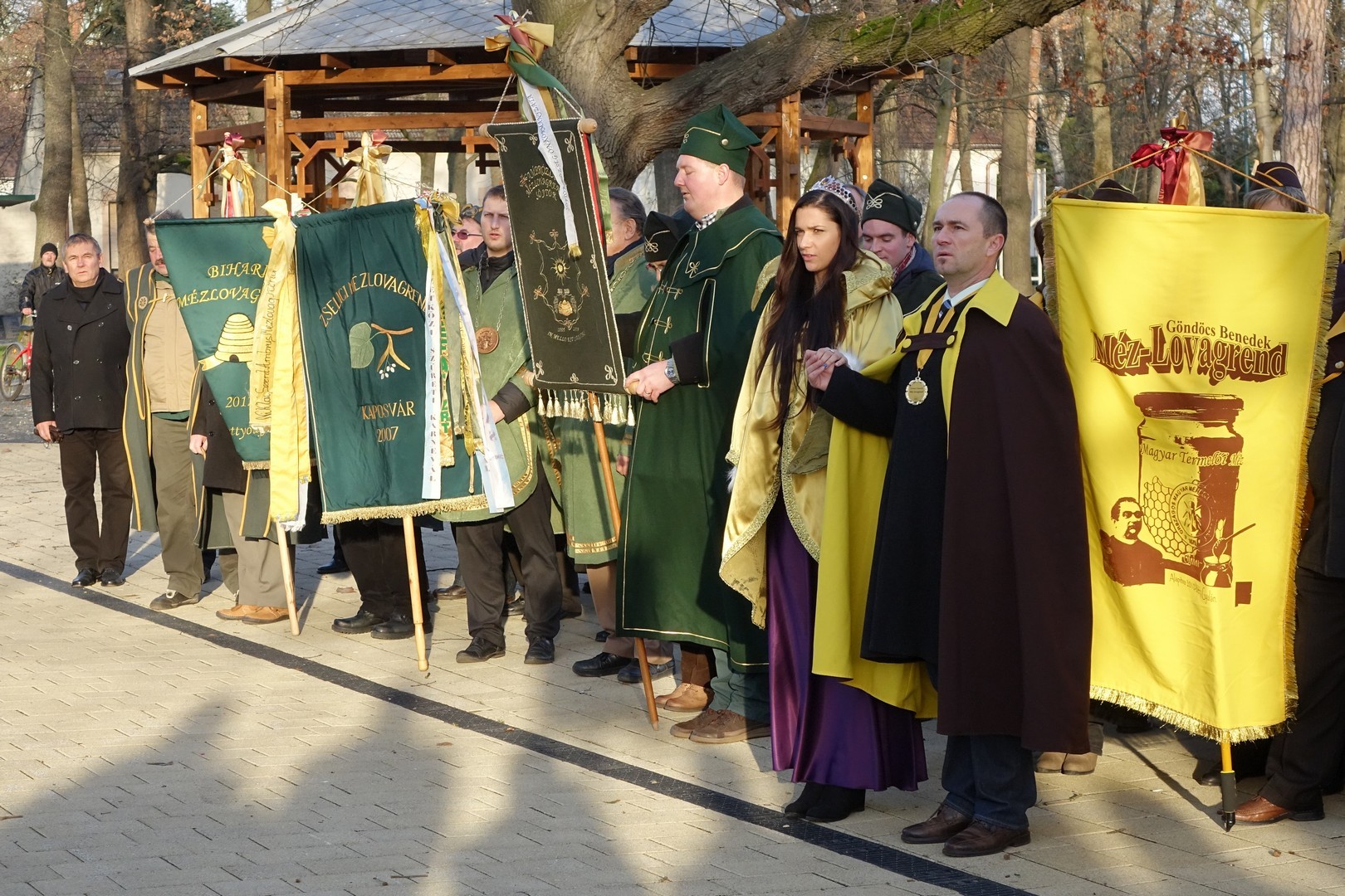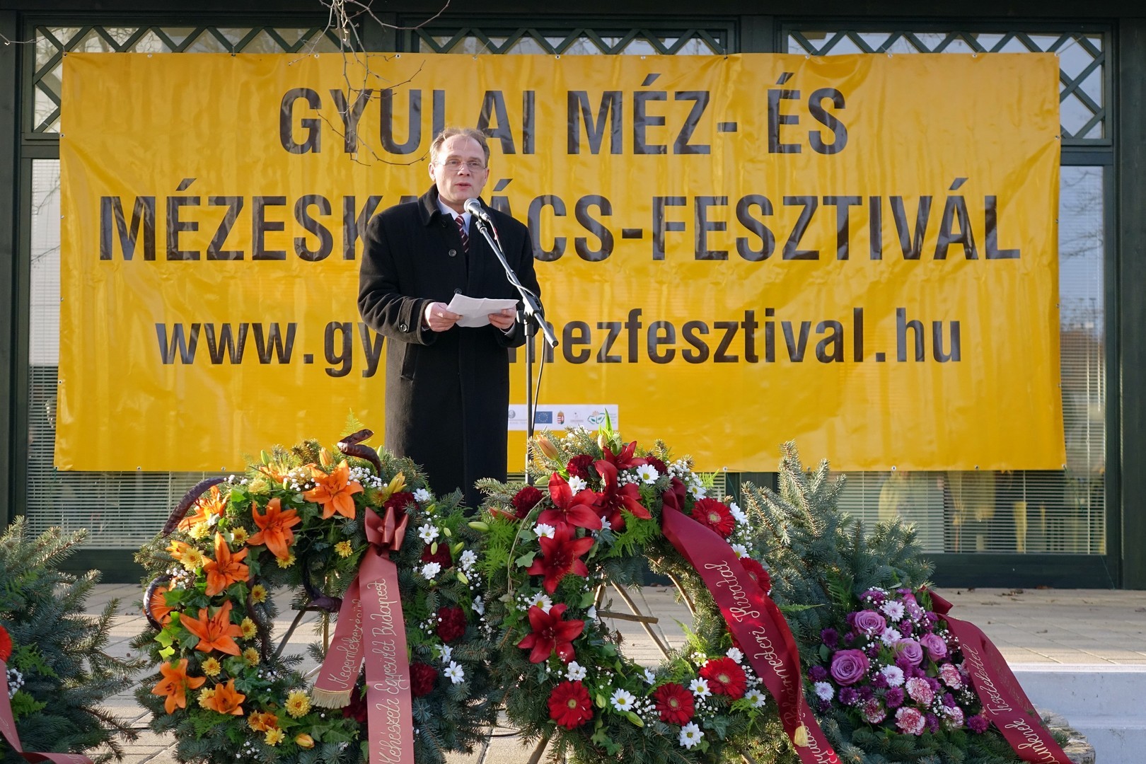 Gyula város nevében dr. Görgényi Ernő polgármester, a Göndöcs Benedek Középiskola nevében dr. Czirok Sándor igazgató és Szabóné Erdődi Márta igazgatóhelyettes, az OMME nevében pedig dr. Mészáros László elnök és Fekete József általános elnökhelyettes helyezett el koszorút. Ezután a Hunor, a Palóctáj, az Udvarhelyszéki és a Szent Ambrus Mézlovagrendek tették le tiszteletük virágfüzéreit Göndöcs Benedek szobra előtt, végül a Békés Megyei Göndöcs Benedek Méhész Egyesület nevében Haász Ferenc, Molnár Ferenc és Simon Diána mézkirálynő is megkoszorúzták az emlékművet.