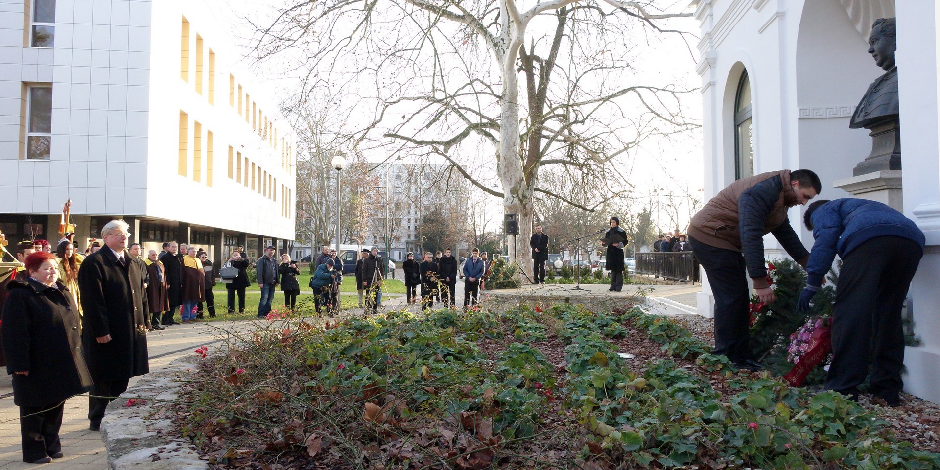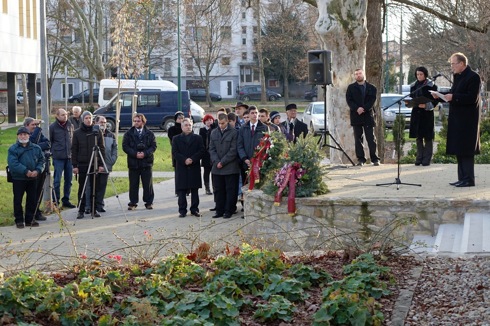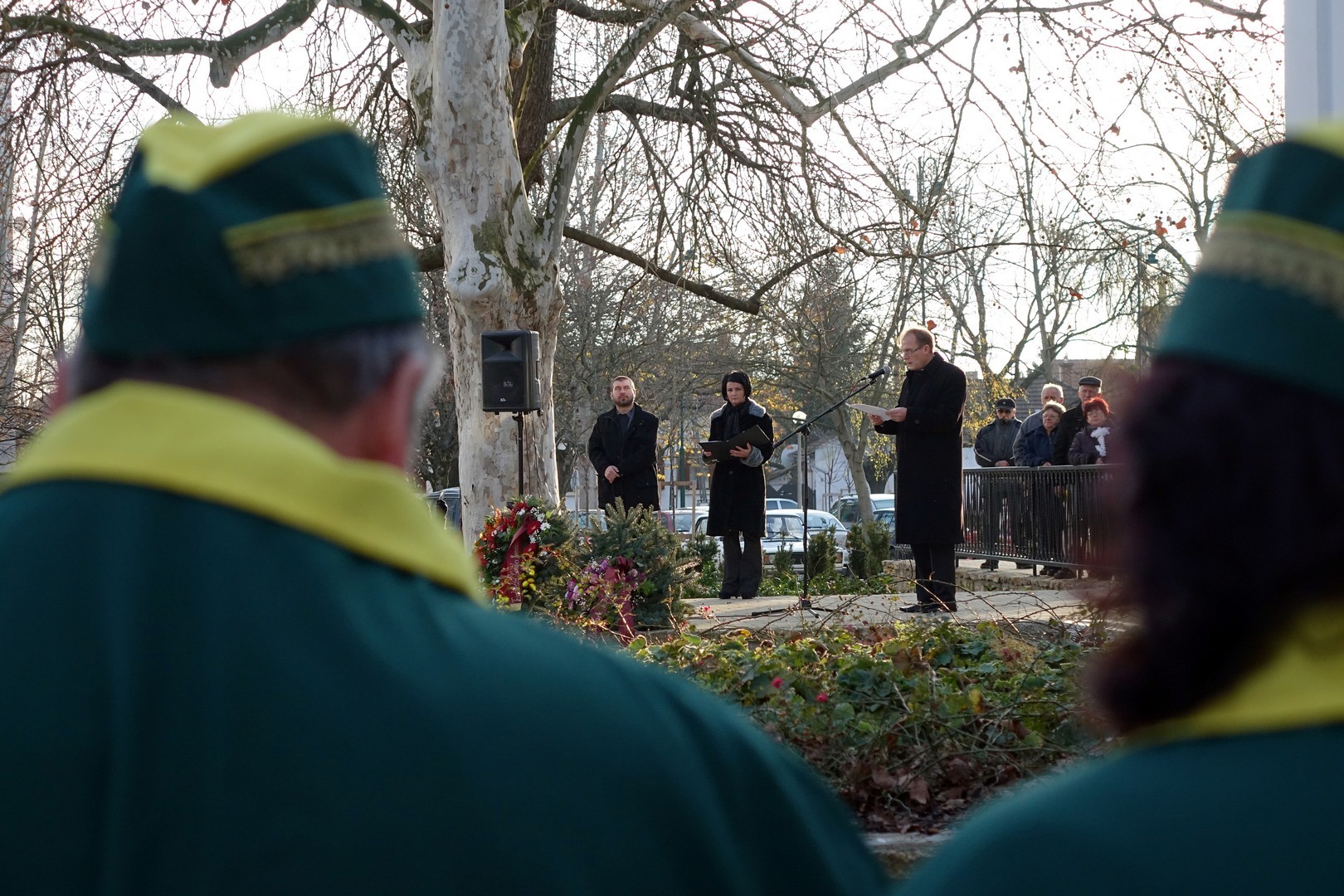A Himnuszt követően Kiss Bianka tolmácsolásában Nagy Gáspár Öreg pap – tűnődő esti imája című versét hallhattuk, majd dr. Mészáros László tartott emlékbeszédet.