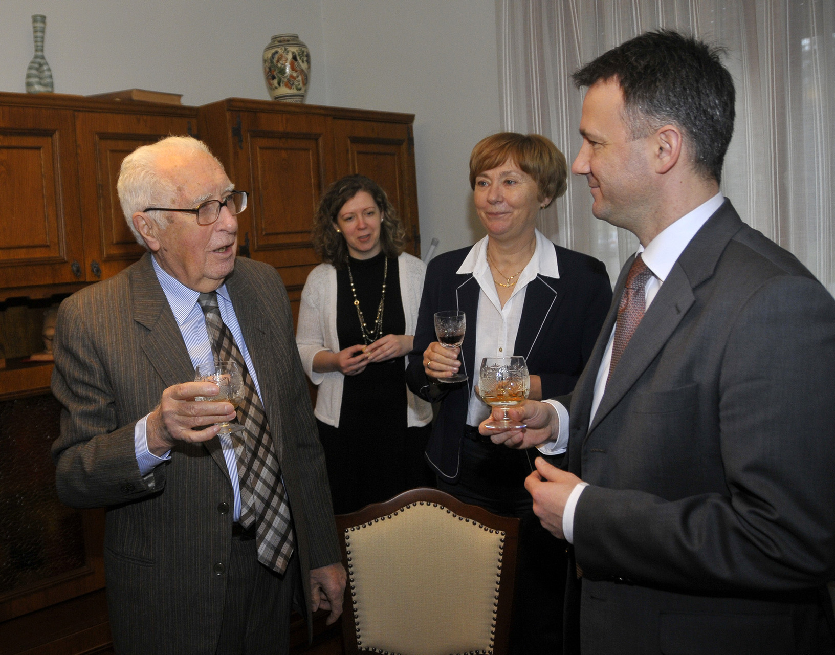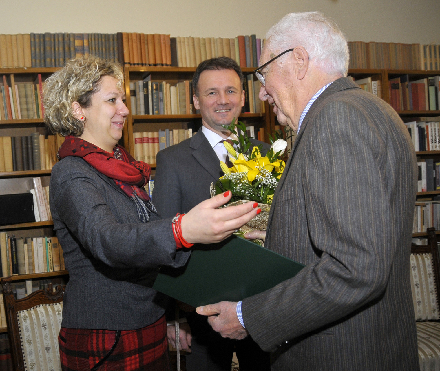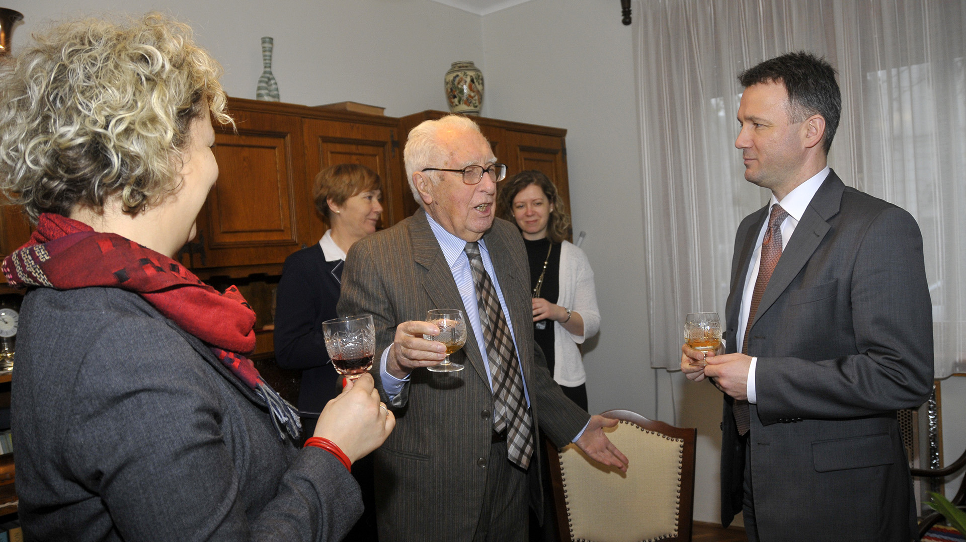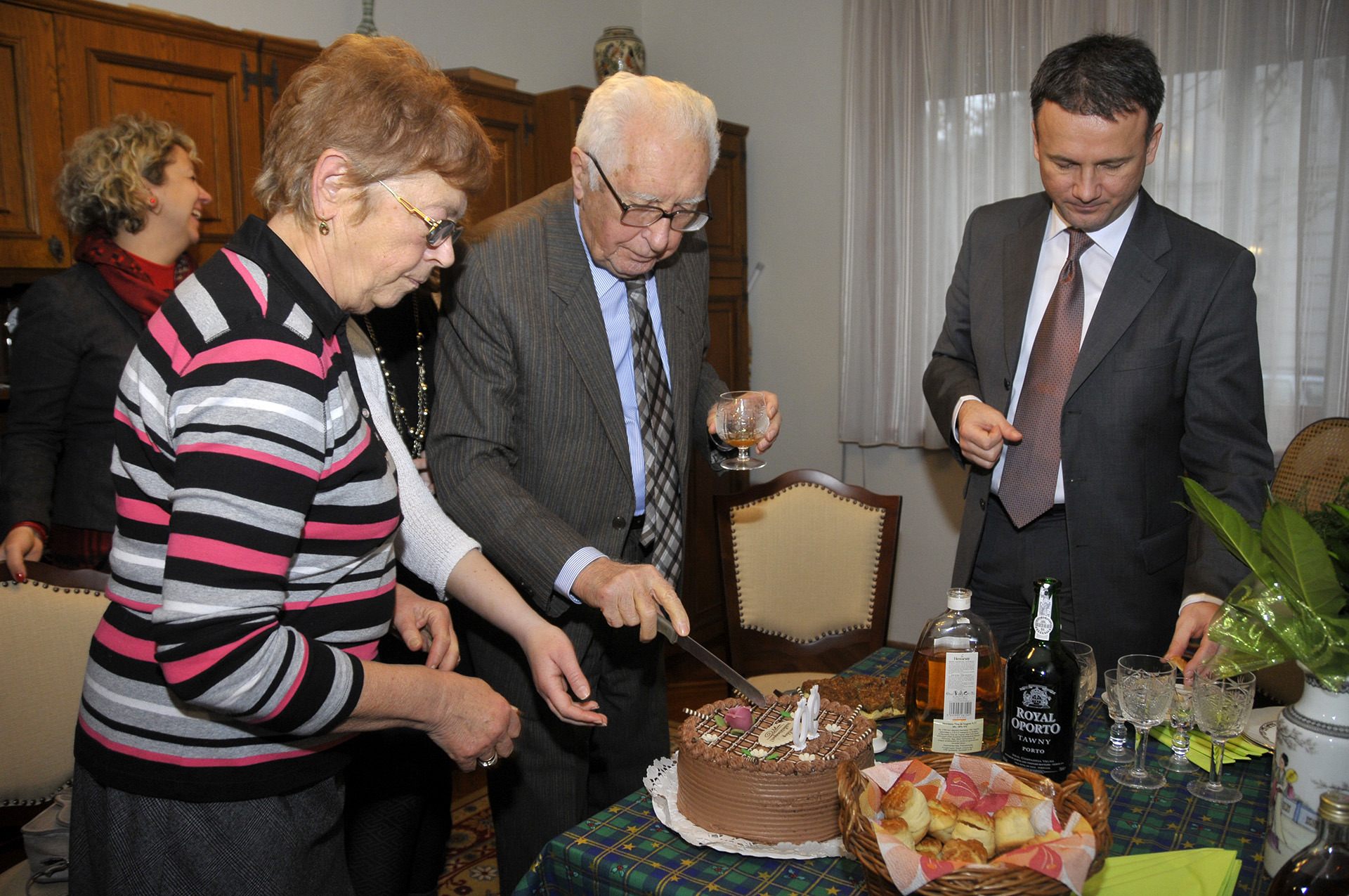 Gyula város díszpolgárát, dr. Pintér Miklóst köszöntötte kilencvenedik születésnapja alkalmából dr. Görgényi Ernő polgármester, dr. Varga Erzsébet aljegyző és Mittag Mónika, a városrész önkormányzati képviselője. Az irigylésre méltó egészségi állapotnak és szellemi frissességnek örvendő Miklós bácsi a hosszú élet titkát firtató kérdésünkre lakonikusan és a sokat látott ember bölcsességével csak annyit mondott: szerencse.