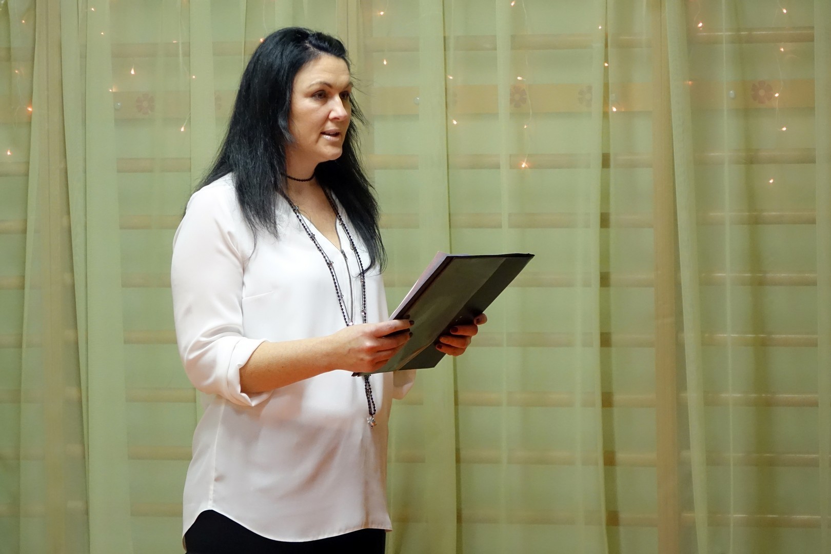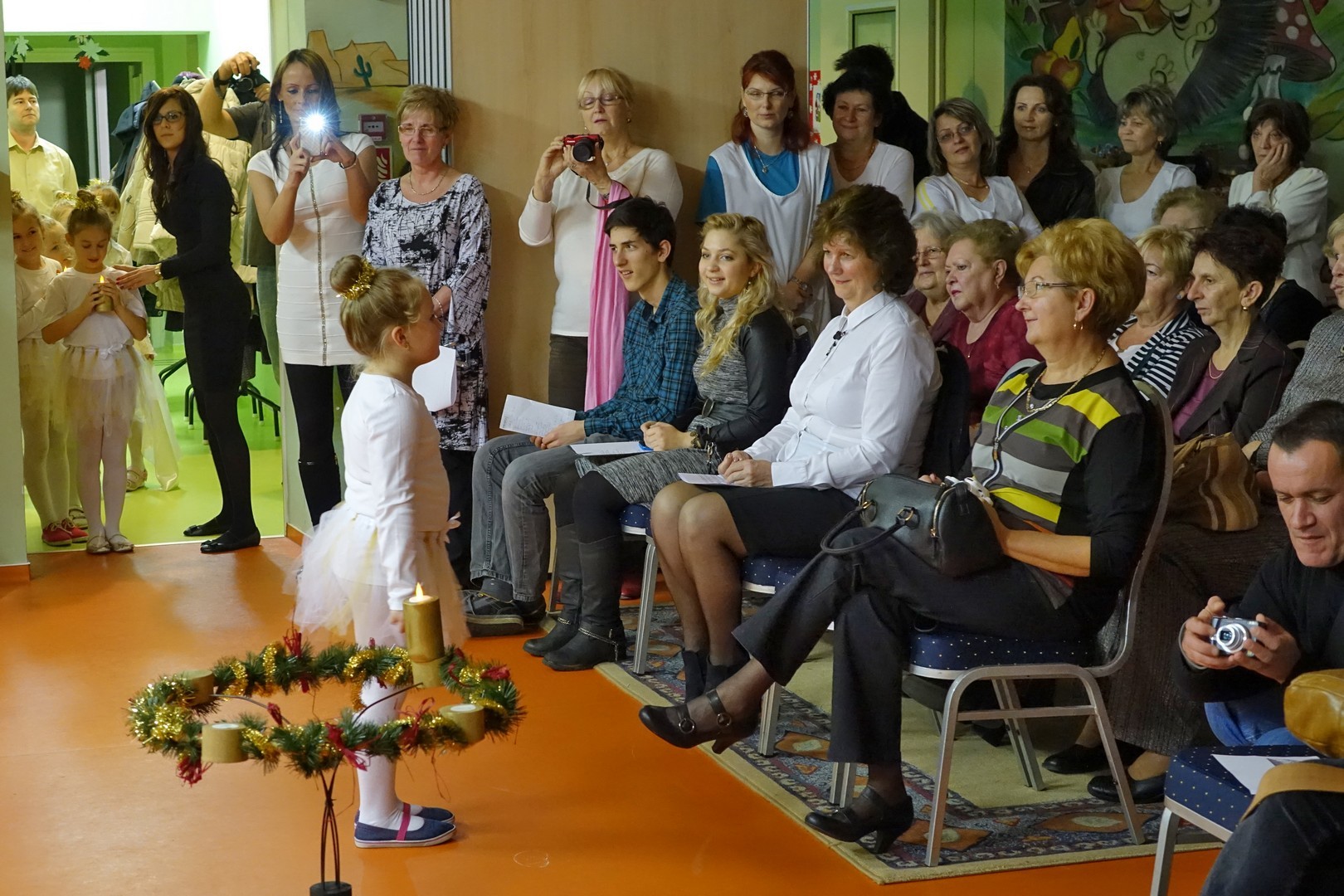 A karácsonyi ünnepség során Nagy Attiláné köszöntötte a jelenlévőket, aki szavaival igyekezett „karácsonyra hangolni” a jelenlévőket. Beszédében arra is rávilágított, miszerint ilyenkor, az ünnepek előtt legtöbben rájövünk arra, hogy adni az egyik legcsodálatosabb dolog a világon, ámde nem drága ajándékokkal, hanem kedves szavakkal, ölelésekkel és szeretettel kell megajándékoznunk egymást.