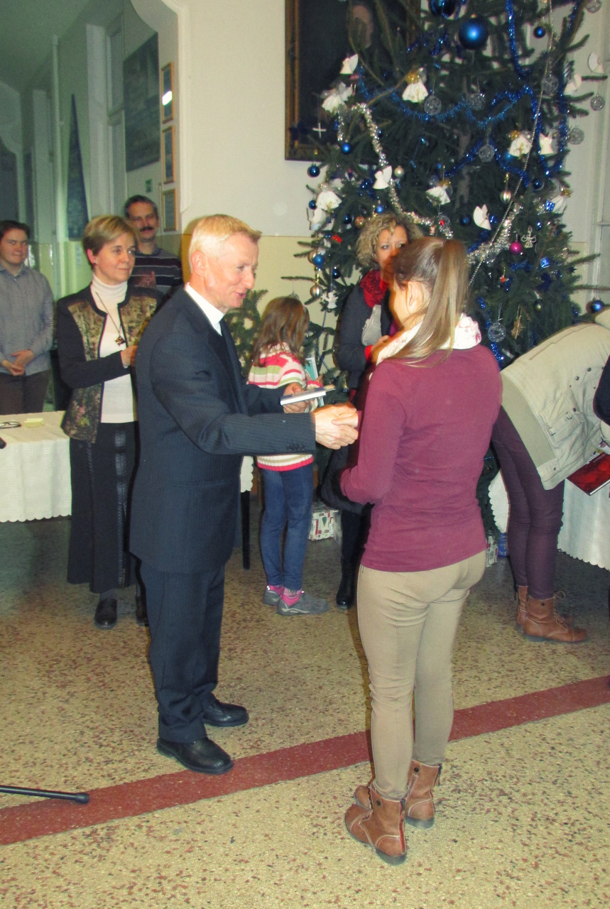 A karácsonyi rajzpályázat ünnepélyes eredményhirdetését és az alkotásokból álló tárlat megnyitóját december 15-én rendezték meg a Karácsonyi János Katolikus Gimnázium I. emeletén. A kiállítást Kovács Péter esperes-plébános nyitotta meg.