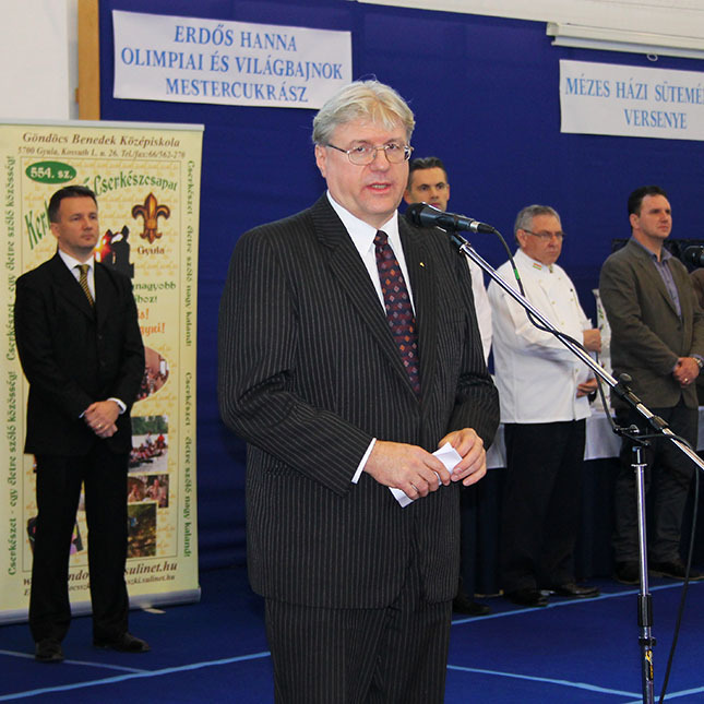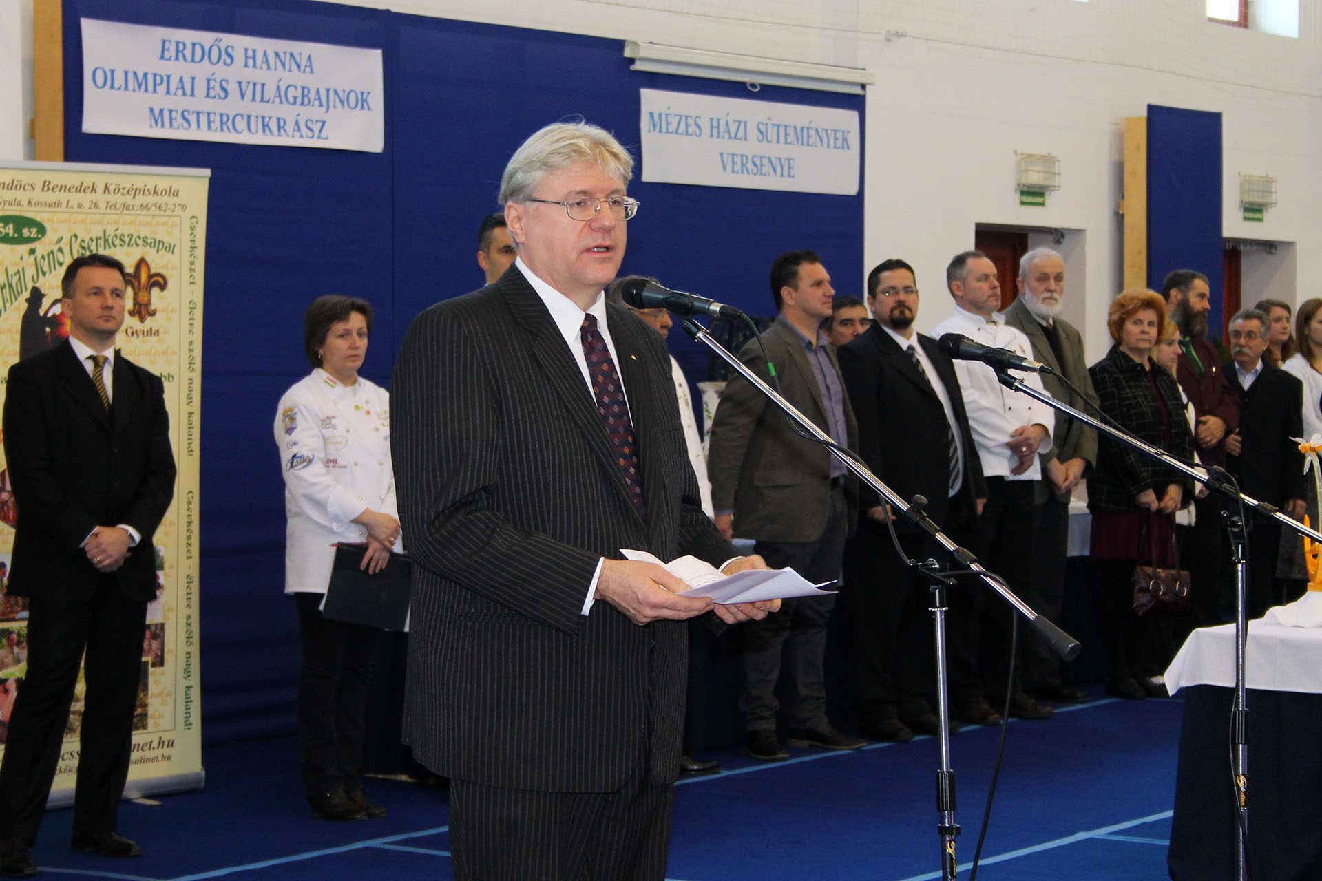 A megnyitón dr. Görgényi Ernő polgármester is köszöntötte a jelenlévőket, aki beszédében kiemelte, a Gyulai Méz- és Mézeskalács Fesztivál nemcsak a jó időzítés miatt örvend különösen nagy érdeklődésnek, de azért is népszerű, mert egyrészt vásárlásra és szakmai továbbképzésre is lehetőséget biztosít, másrészt viszont a legértékesebb elemei, legkedveltebb attrakciói között szerepel a gasztronómiai emlékverseny, amelyen a szakmakultúrák fiatal titánjai mérik össze tudásukat.