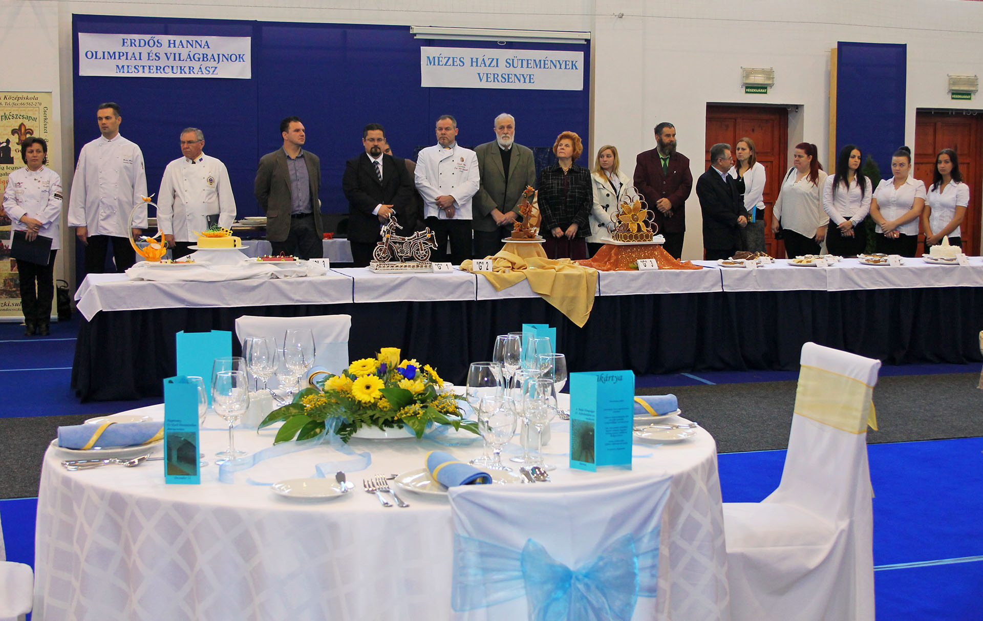 A beszédeket követően dr. Czirok Sándor ismertette a nap programját, majd Erdős Hanna, olimpiai és világbajnok mestercukrász, illetve Szabóné Erdődi Mária, igazgatóhelyettes bemutatták a különböző versenykategóriák pályamunkáit bíráló zsűri bizottságok tagjait.
