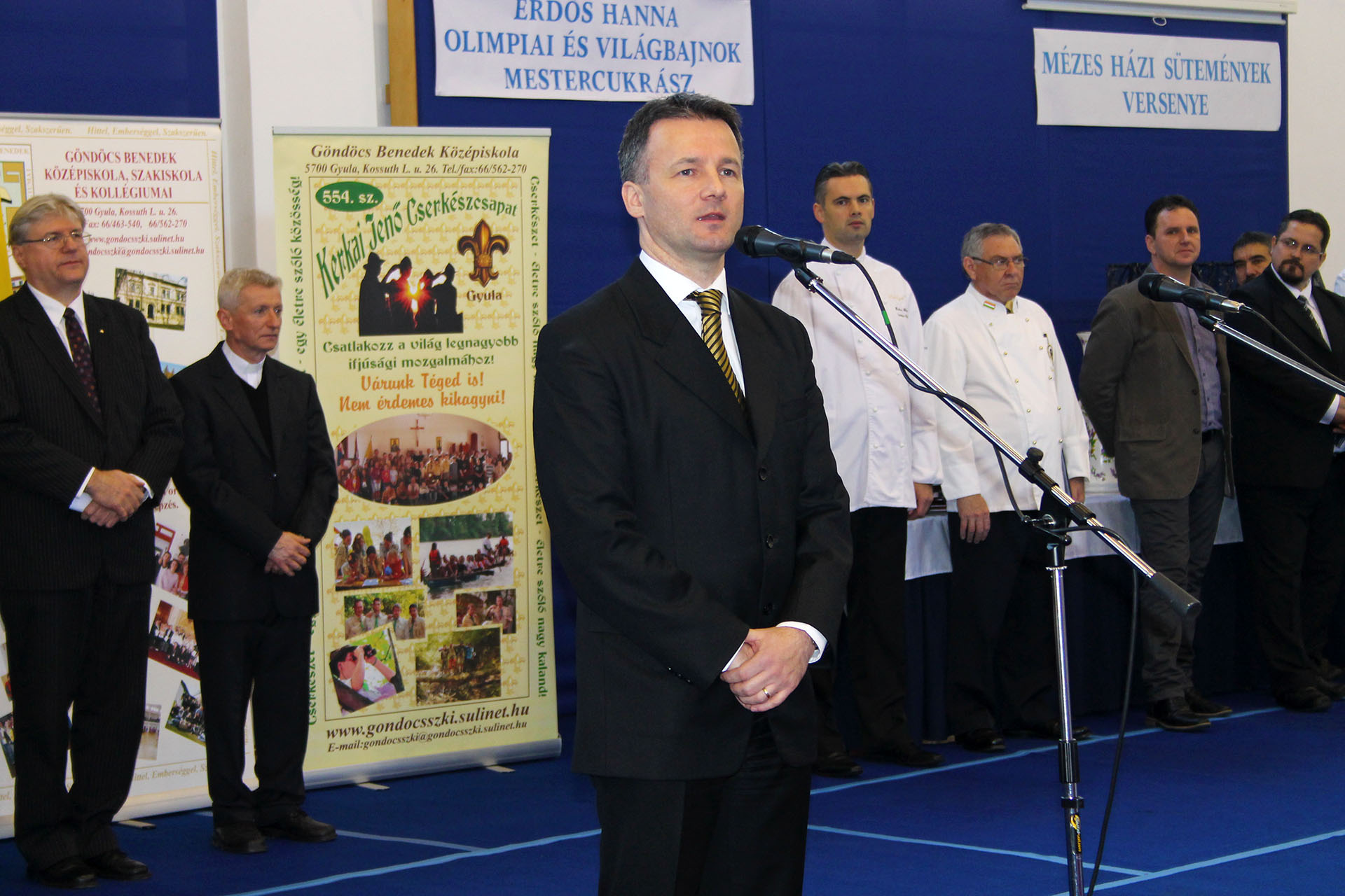 - A résztvevők a vendéglátás, a kereskedelem, a virágkötészet, a magyar hungarikumok közé tartozó pálinka bemutatásán keresztül egészen a csodálatos rajzokon, képeslapokon át mutathatják meg azt a nagyszerű talentumot, amely mindenkiben benne rejlik, de bennük különösen. Hat évvel ezelőtt azért hoztuk létre ezt a versenyt, hogy ezt a fajta tehetséget megmutassuk. Megmutassuk azt, hogy a mézben milyen lehetőségek rejlenek, és megmutassuk azt, hogy iskolánk névadója, Göndöcs Benedek egykori apátplébános, országgyűlési képviselő mennyire szívén viselte a fiatalok nevelését, oktatását – hangzott el dr. Czirok Sándor megnyitó beszédében.