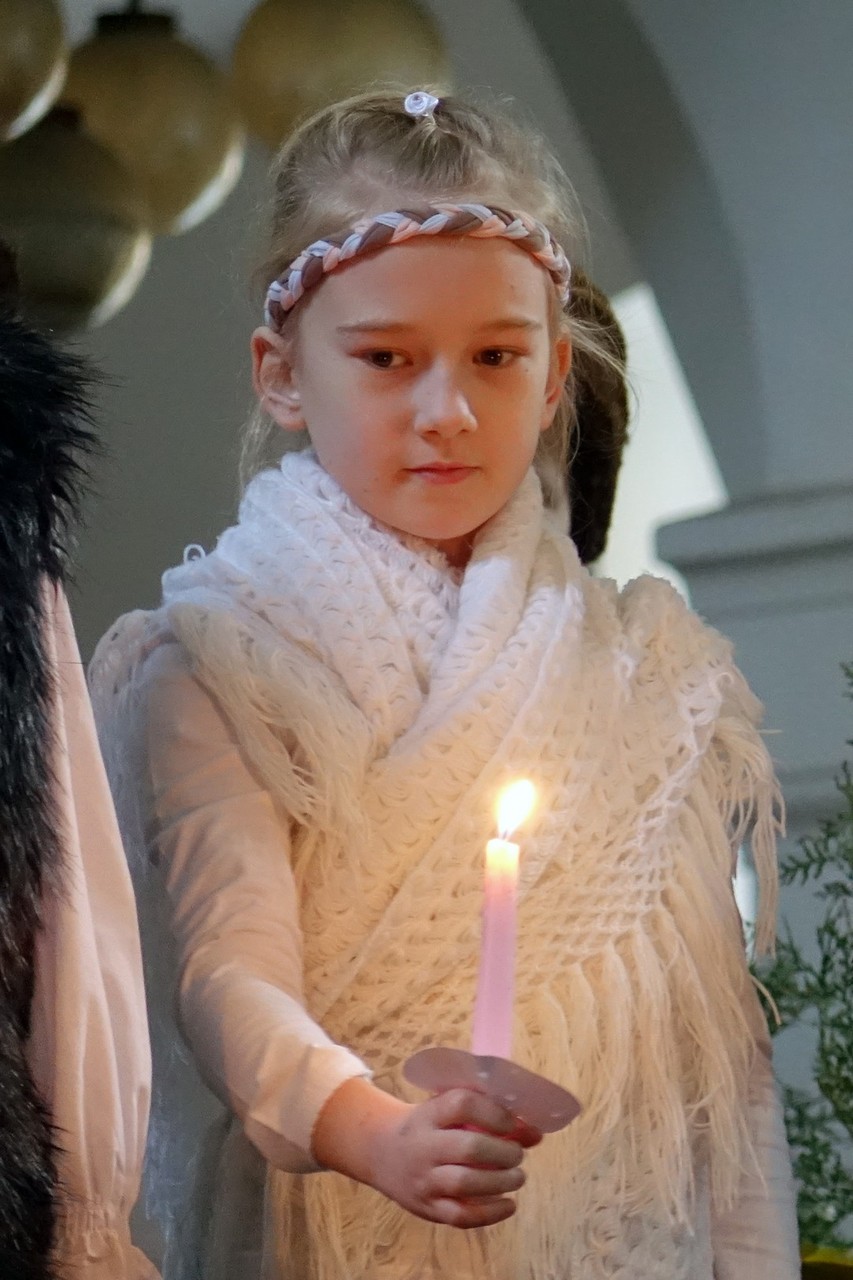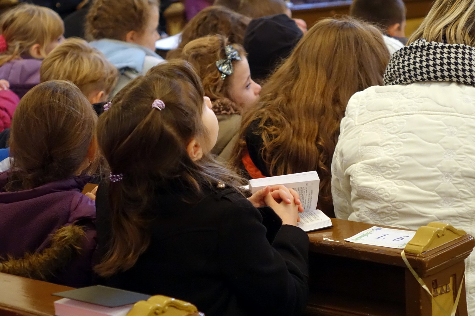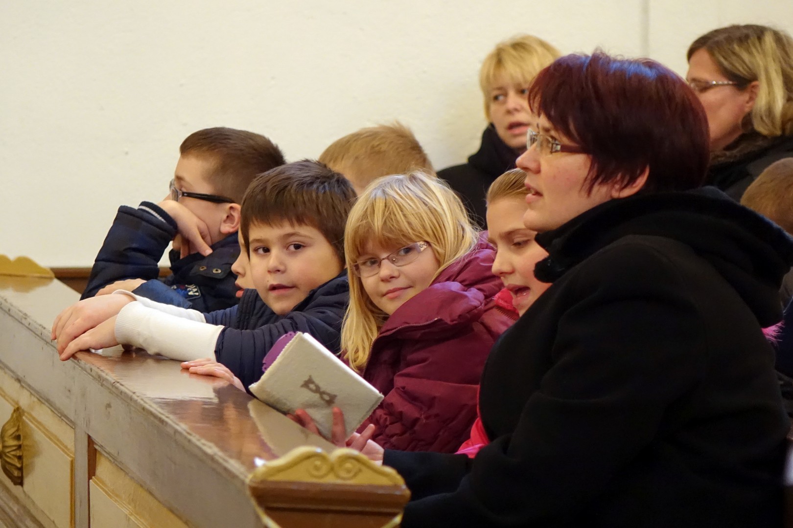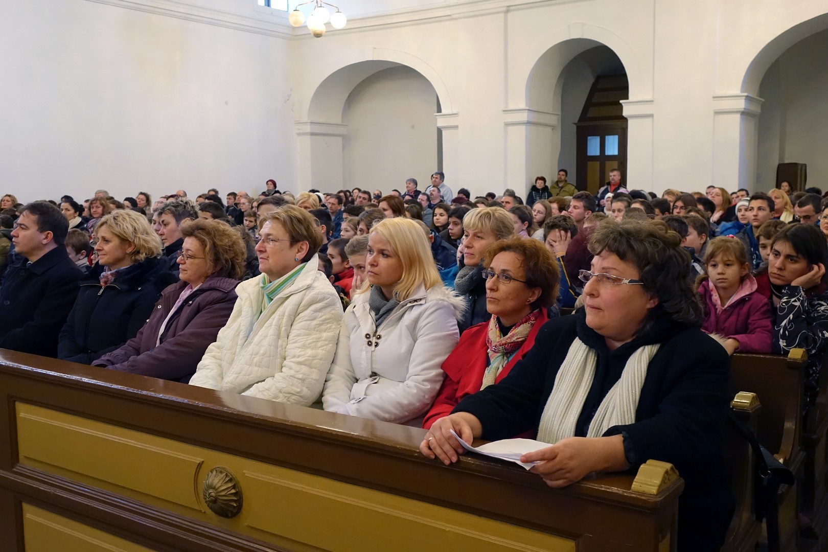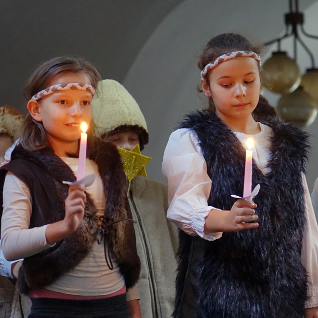 A trombitaszó után vándorló „pásztorokra” lehettünk figyelmesek, akik útjuk során meg-megállva egészen „Betlehemig” ballagtak. A bundákat és süvegeket viselő nebulók ünnepi énekekkel és versekkel kedveskedtek nekünk, melyeket – vékony hangjaikon – oly erőteljesen szavaltak, hogy valósággal zengett tőlük a templom.
