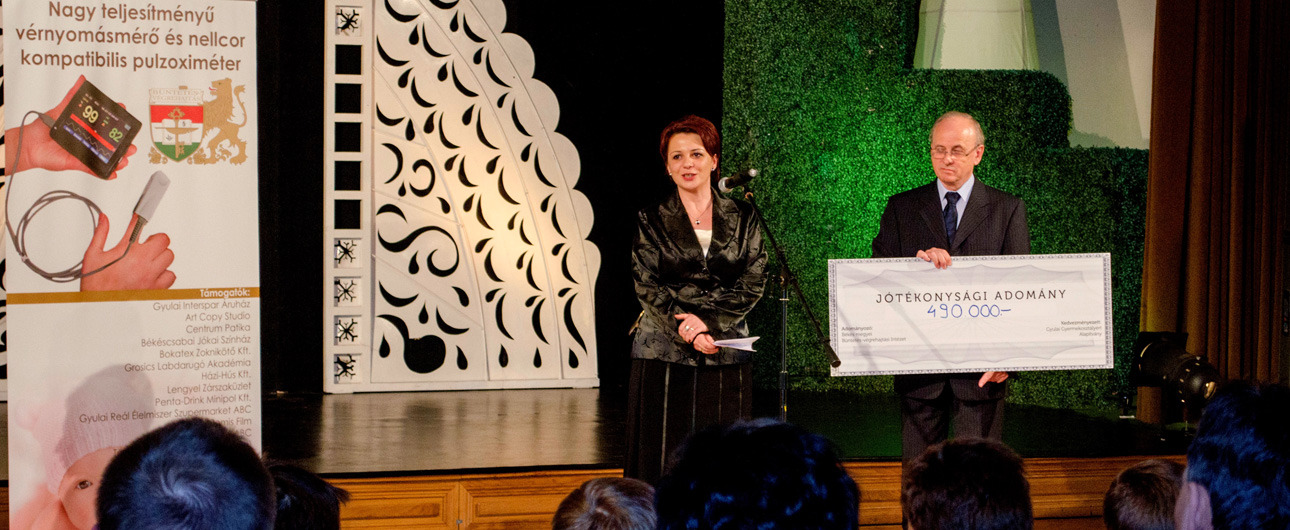Az est fénypontjaként átadták a pénzadományt, amely a fogvatartottak és a támogatók felajánlásából gyűlt össze. Ennek összege az átadás pillanatában 490 ezer Ft volt, de ez nem tekinthető véglegesnek, mert több támogató is jelezte további segítő szándékát. Az adományt egy fogvatartott adta át dr. Sipos Péter osztályvezető főorvosnak, aki megköszönte a büntetés-végrehajtási intézetnek a kezdeményezést, a támogatóknak pedig a segítséget. Majd elmondta, hogy az összegyűlt összegből egy nagyteljesítményű vérnyomásmérő és nellcor kompatibilis pulzoximétert szeretnének vásárolni, ami az újszülötteknek életmentő eszköz lehet.