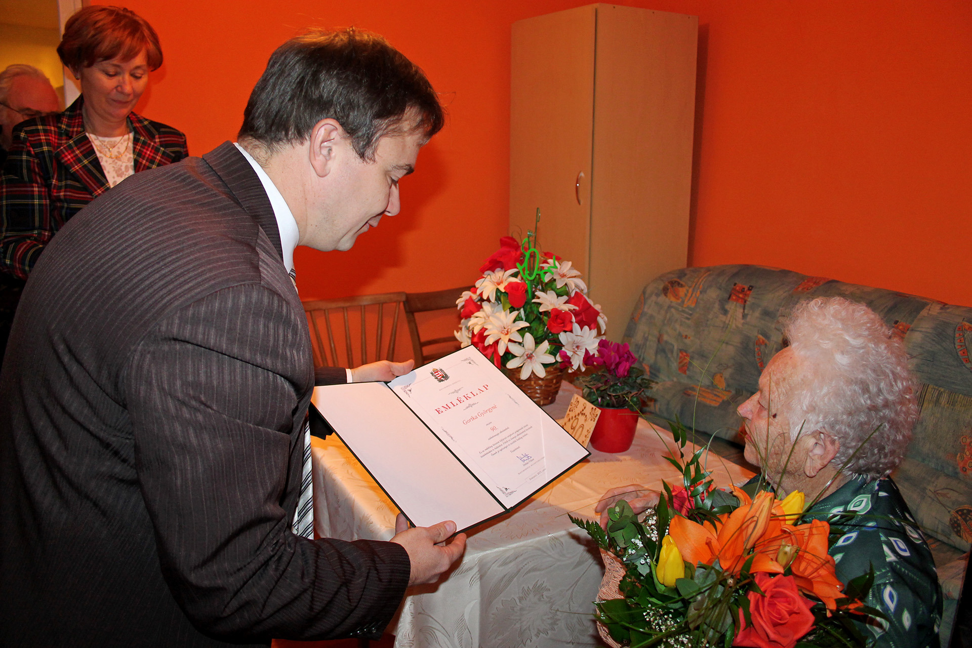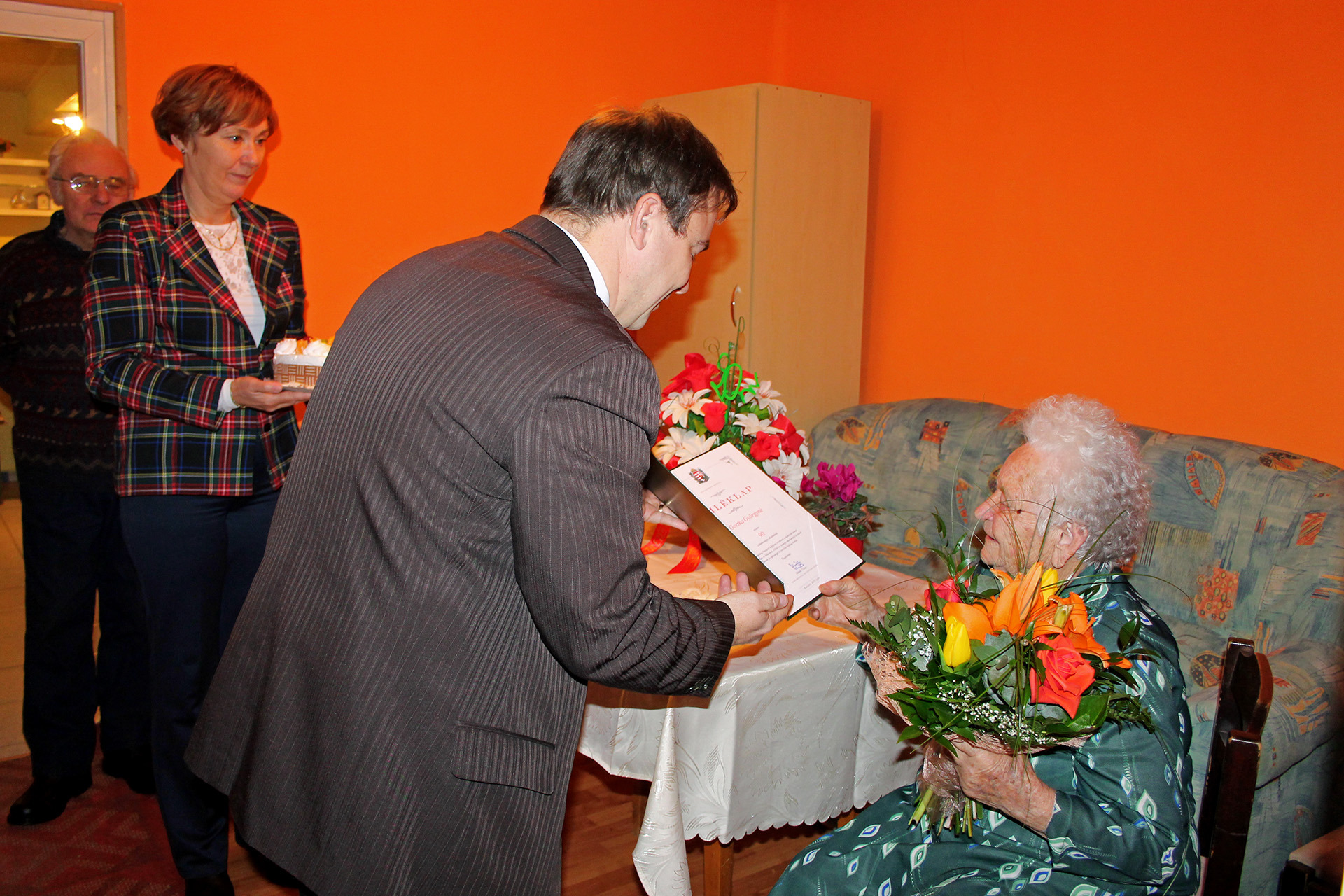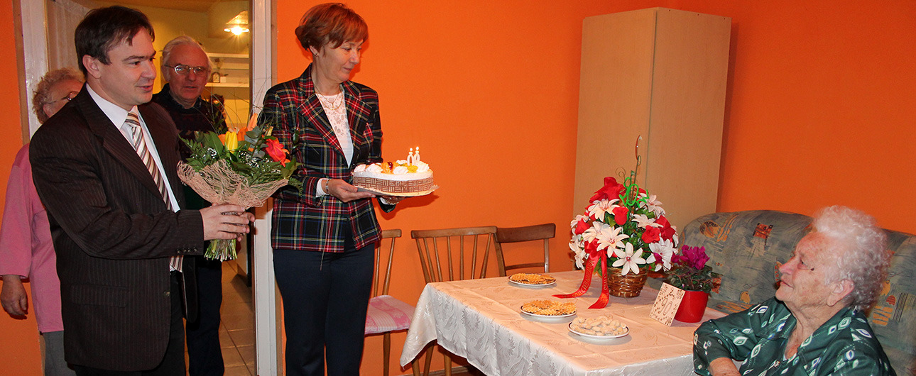90. születésnapja alkalmából Gortka Györgynét köszöntötte a gyulai városvezetés január 9-én. A jeles ünnep kapcsán Kónya István alpolgármester és dr. Varga Erzsébet aljegyző virágcsokorral, Magyarország miniszterelnöke által aláírt emléklappal és tortával ajándékozta meg a szépkorú hölgyet.
