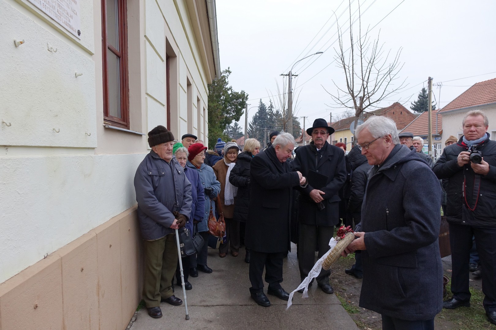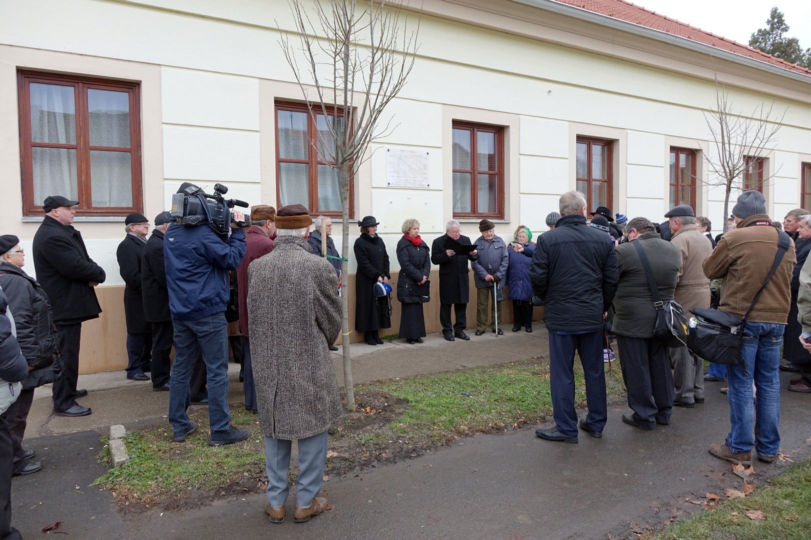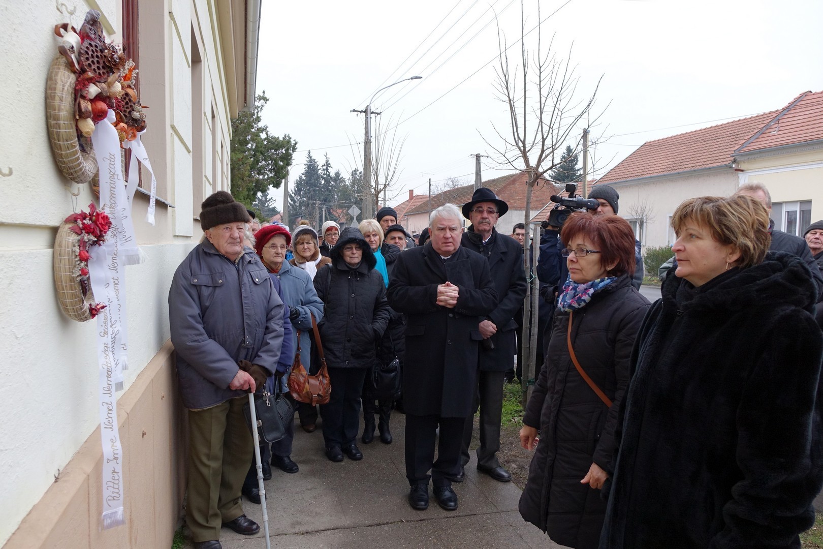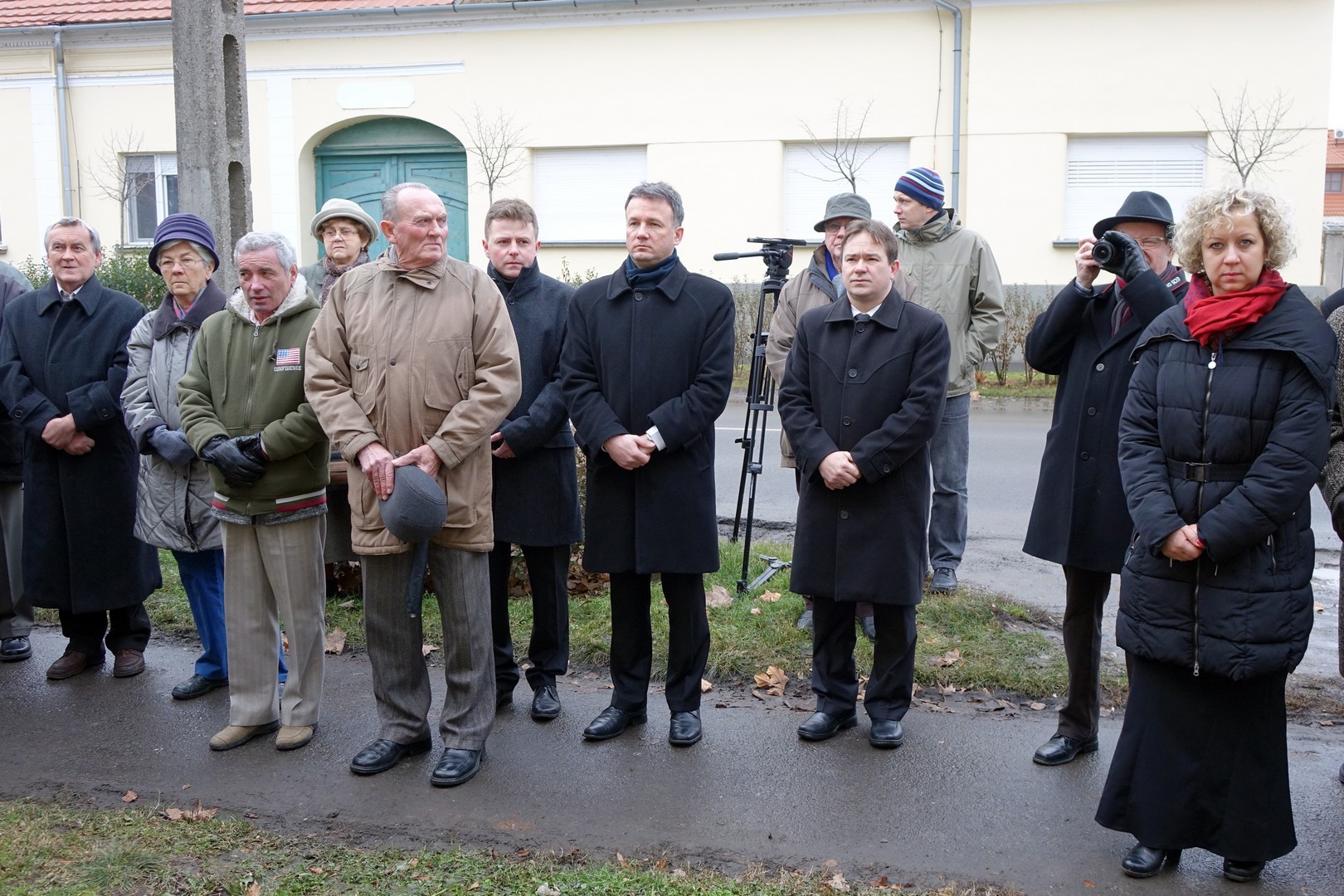 Az ünnepség a Szent István utcai volt huszárlaktanya előtt kezdődött, ahol Mittag Mónika önkormányzati képviselő, a Német Nemzetiségi Önkormányzat elnöke köszöntötte a megjelenteket, köztük a 70 évvel ezelőtti szörnyű esemény néhány túlélőjét. Ezt követően dr. Kovács József országgyűlési képviselő emlékezett vissza a második világháborút követő kegyetlenségekre.