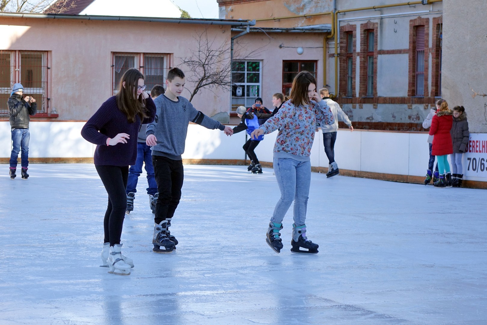 A korcsolyapályát hivatalosan az üzemeltető KÖVIÉP Kft. ügyvezetője, Mochnács Pál és dr. Görgényi Ernő adták át a siklás szerelmeseinek.
