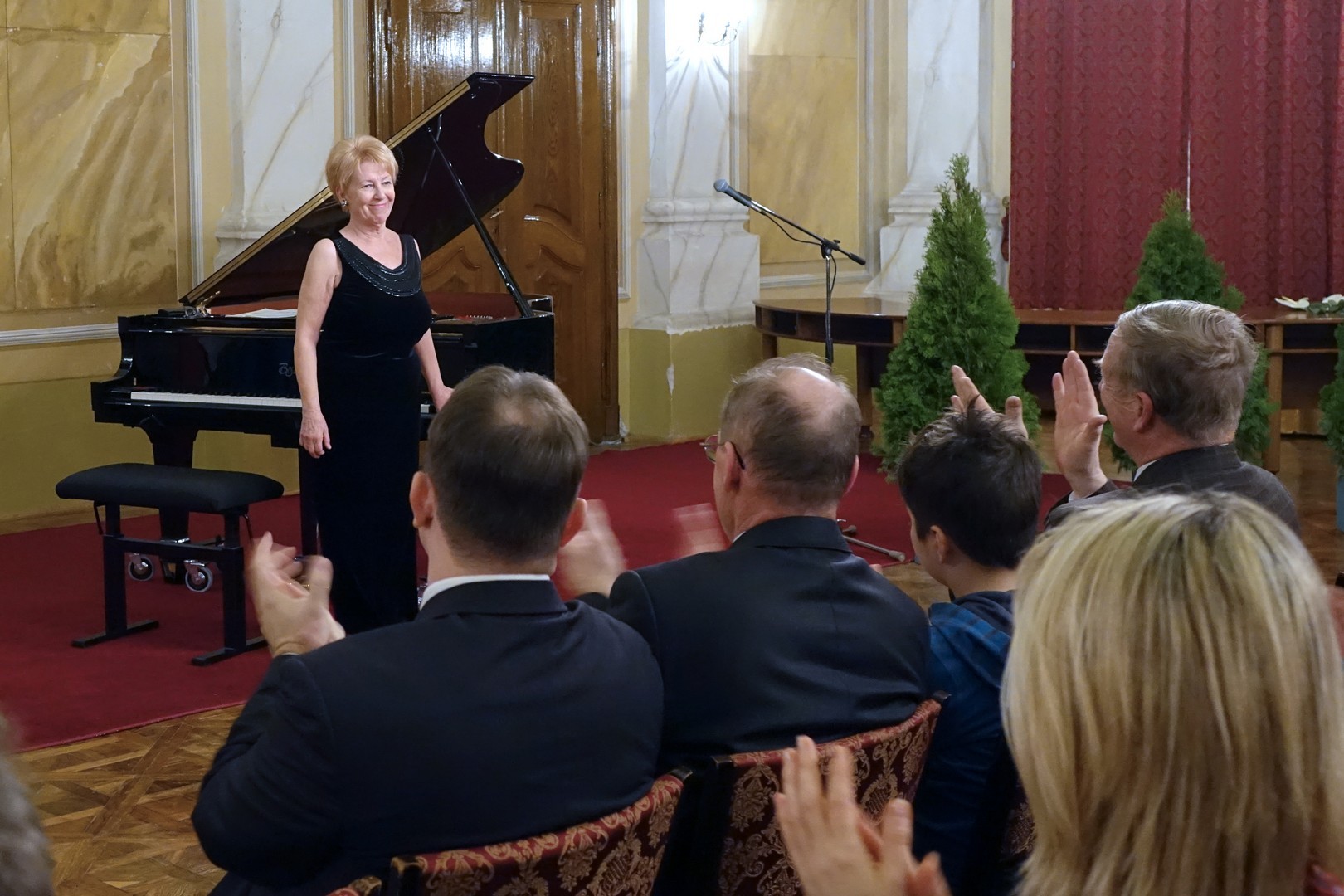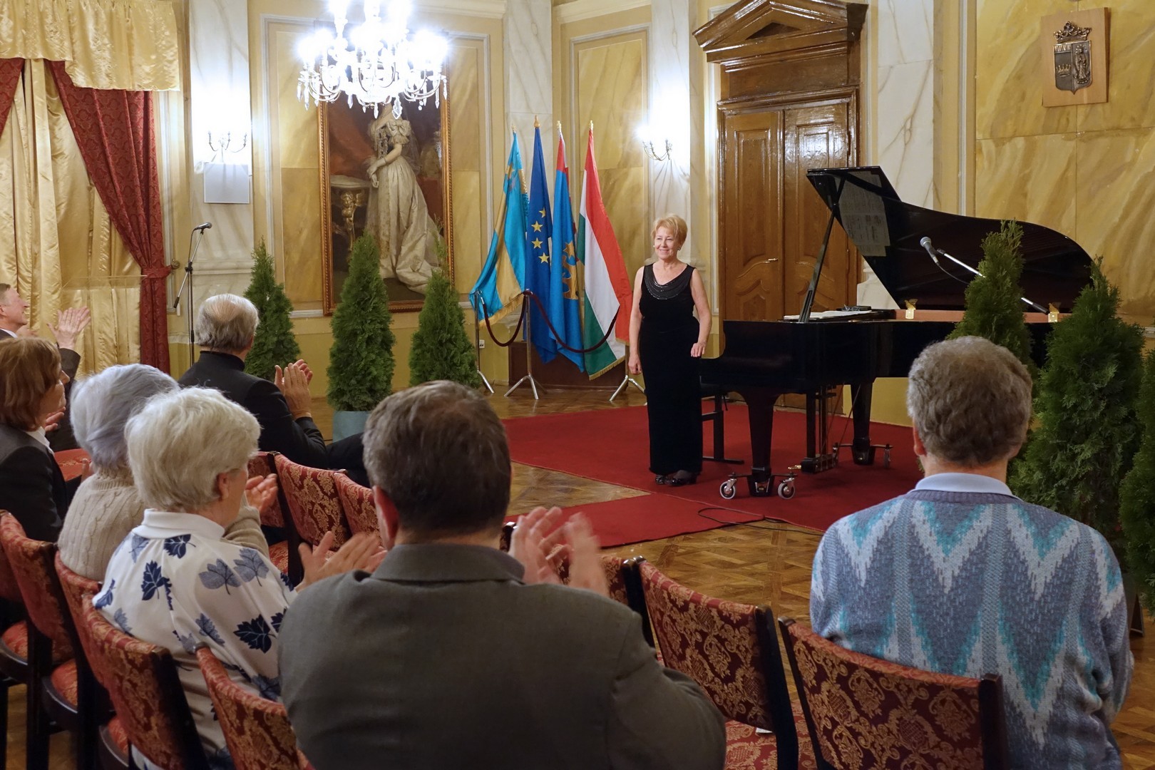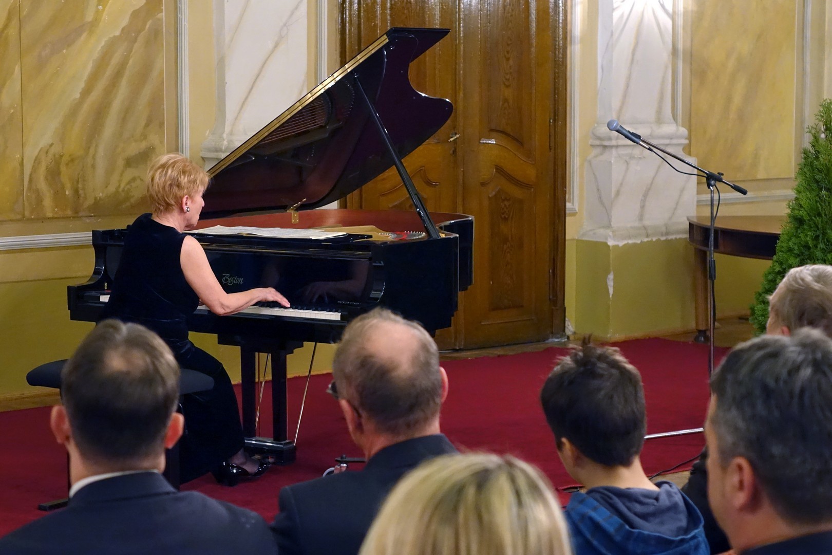 Az ünnepi gondolatokat követően Körmendi Klára, Liszt- és Bartók Béla–Pásztory Ditta-díjas zongorista hangversenyét hallhattuk, ám ezt megelőzően maga a művész is köszöntötte a megjelenteket, amelyből megtudtuk, hogy 4 évvel ezelőtt épp ő avatta fel a dísztermi zongorát.