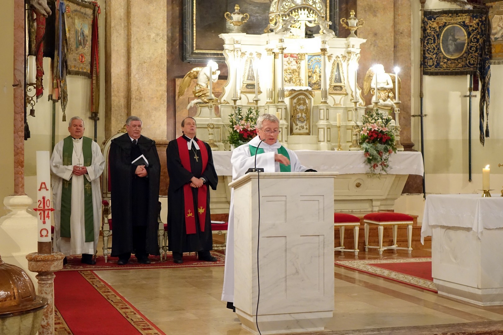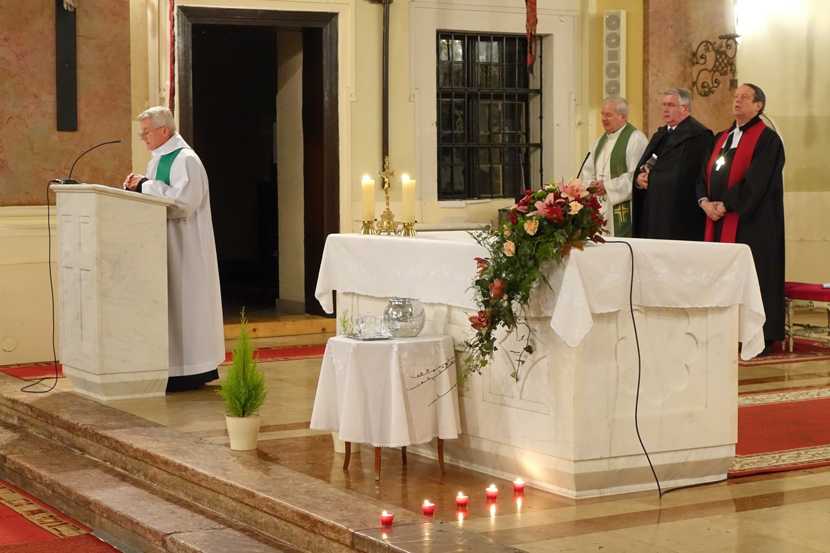 – Az imádság nem más, mint a lelki szomjúság feltörése és kifejeződése – hangsúlyozta Gáncs Péter. Az evangélikus püspök spirituális cuvée-nek nevezte az ökumenikus imahetet, utalva arra a szimbolikus cselekményre, amikor a szertartás elején a keresztény közösségek vezetői különböző formájú kancsókból öntik egy edénybe a vizet. – A különböző ízű, színű és zamatú borok kiegészítik egymást – mondta.