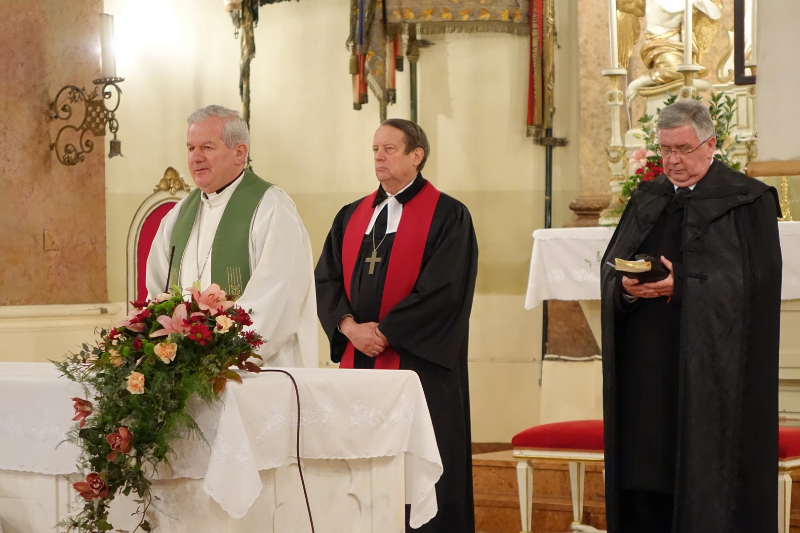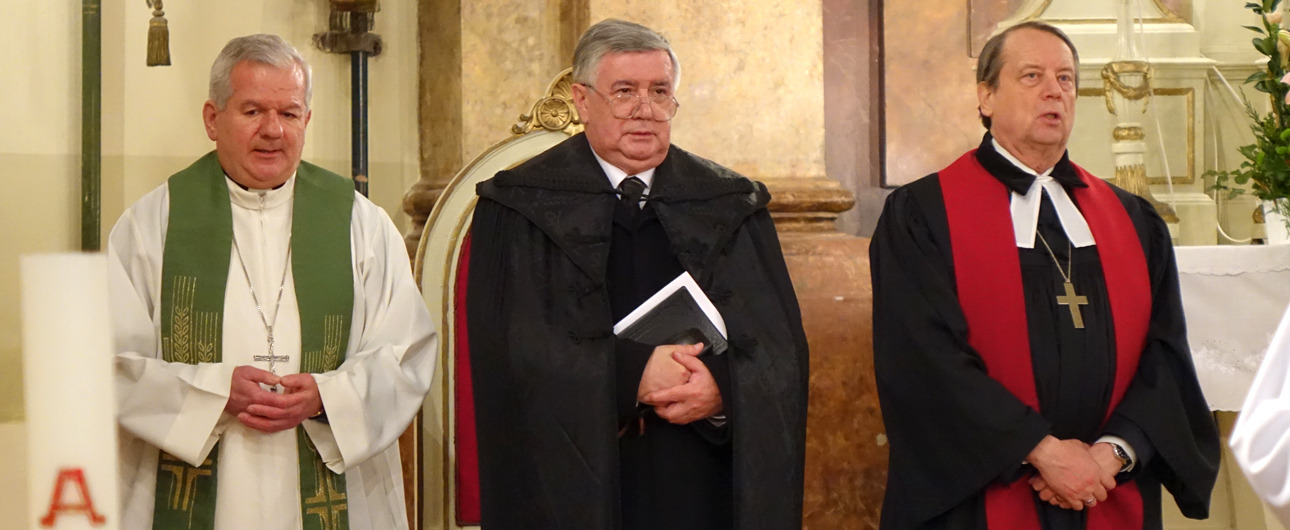 Mindannyian a kinyilatkoztatásra hagyatkozva kerülhetünk kapcsolatba a végtelenül irgalmas Istennel – mondta dr. Kiss-Rigó László római katolikus megyés püspök január 22-én a gyulai Nádi Boldogasszony-templomban, ahol az ökumenikus imahét alkalmából Gáncs Péter evangélikus püspökkel és Bölcskei Gusztáv református püspökkel közösen hirdetett igét. Az istentiszteleten Gajda Róbert megyei kormánymegbízott, dr. Görgényi Ernő polgármester és a helyi gyülekezetek vezetői is részt vettek.