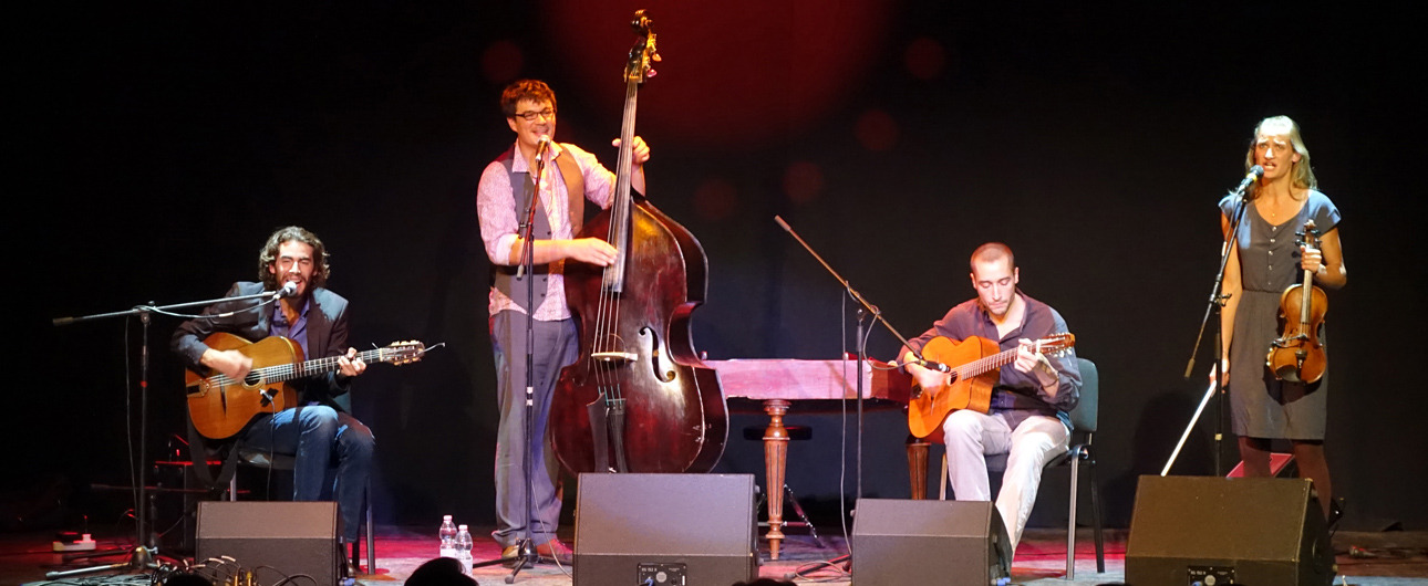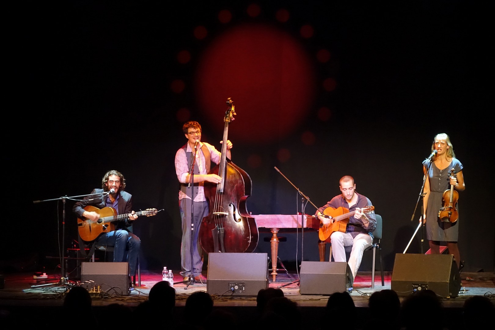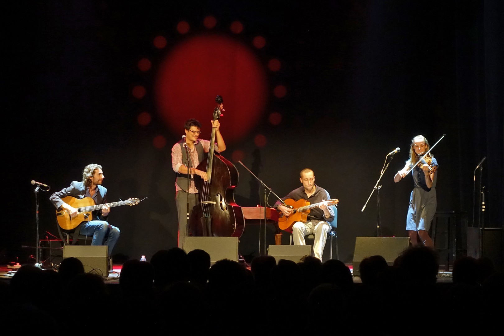 Damien Levasseur (gitár, vokál), Charles Fréchette (gitár, vokál), Coline Rigot (hegedű, vokál) és Jean Russel (nagybőgő, ének) vérében van a Django által megalkotott húros hangszerelésű, lendületes roma-swing világa, amelynek legmeghatározóbb jellegzetessége a hosszú menzúrás manouche gitár és a rajta pergő, csattogó, szólisztikus gitárjáték. Nem szűkölködött ebben a Tcha Badjo jazzt, swinget, francia sanzonokat és cigány dallamokat is megidéző, akusztikus muzsikája sem, ahogyan markáns, többszólamú énekekben, érdekes, disszonáns kiállásokban és tartalmas unisonókban sem. Érdekfeszítő előadásukban főleg saját szerzeményeket hallhattunk, valamint feldolgozásokat Django mestertől. Bravúros zenéjükből többek között kiemelkedett egy blues, amelyet hegedűsük pizzicato – pengetve adott elő. Coline Rigot cirkuszos családban született Párizsban, és hétévesen már a magyar cigányzenét húzta, úgyhogy az sem véletlen, hogy egyik szólójába Monty csárdást lopva kedveskedett a magyar közönségnek. Izgalmas egyórás koncertjük után megérdemelt vastapsot kaptak, amiért illett ráadást is adni.