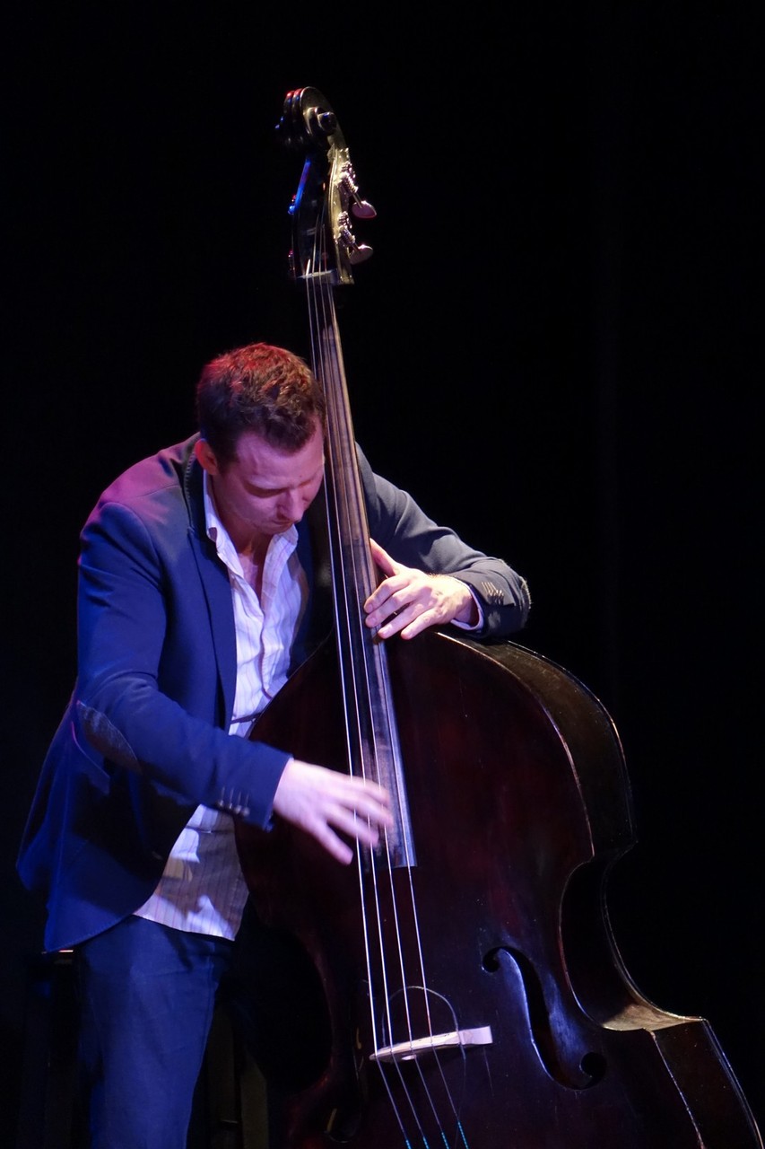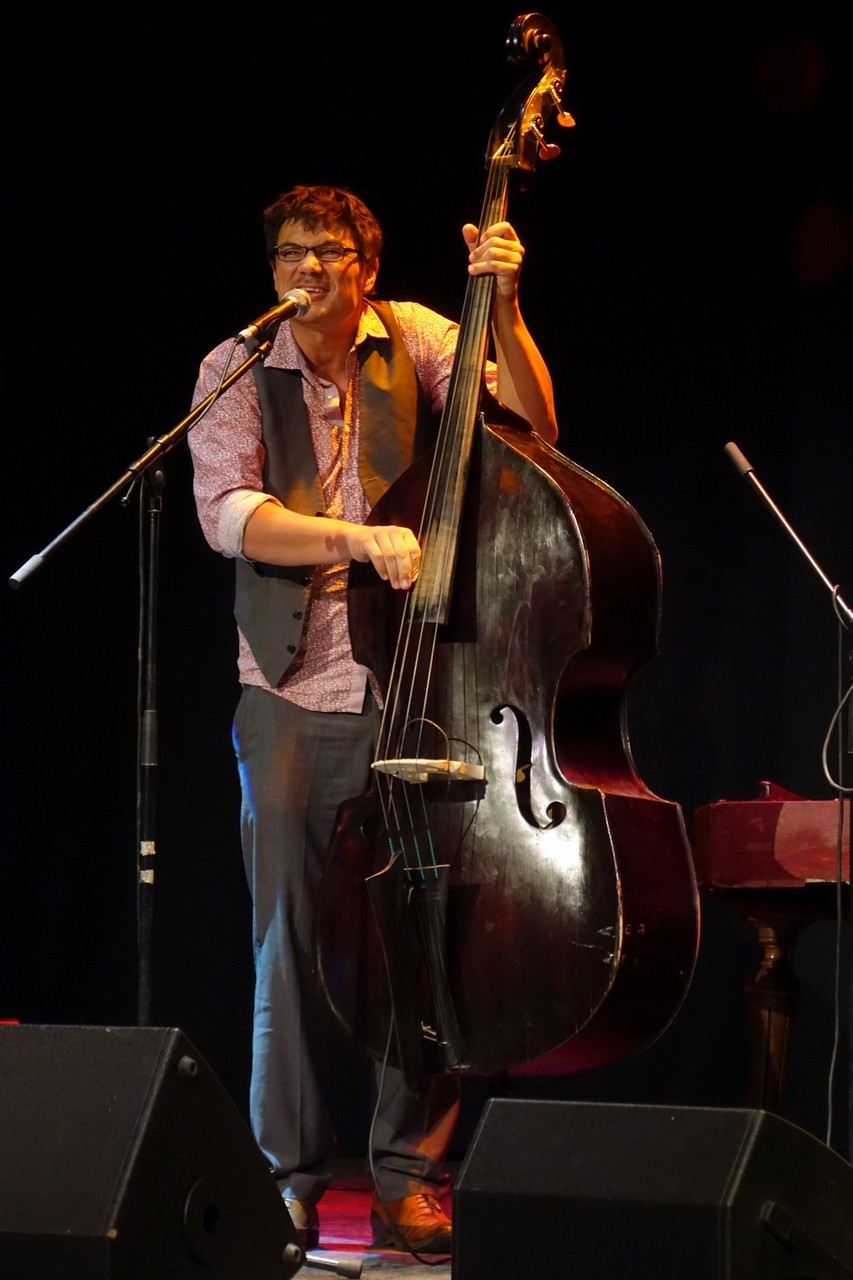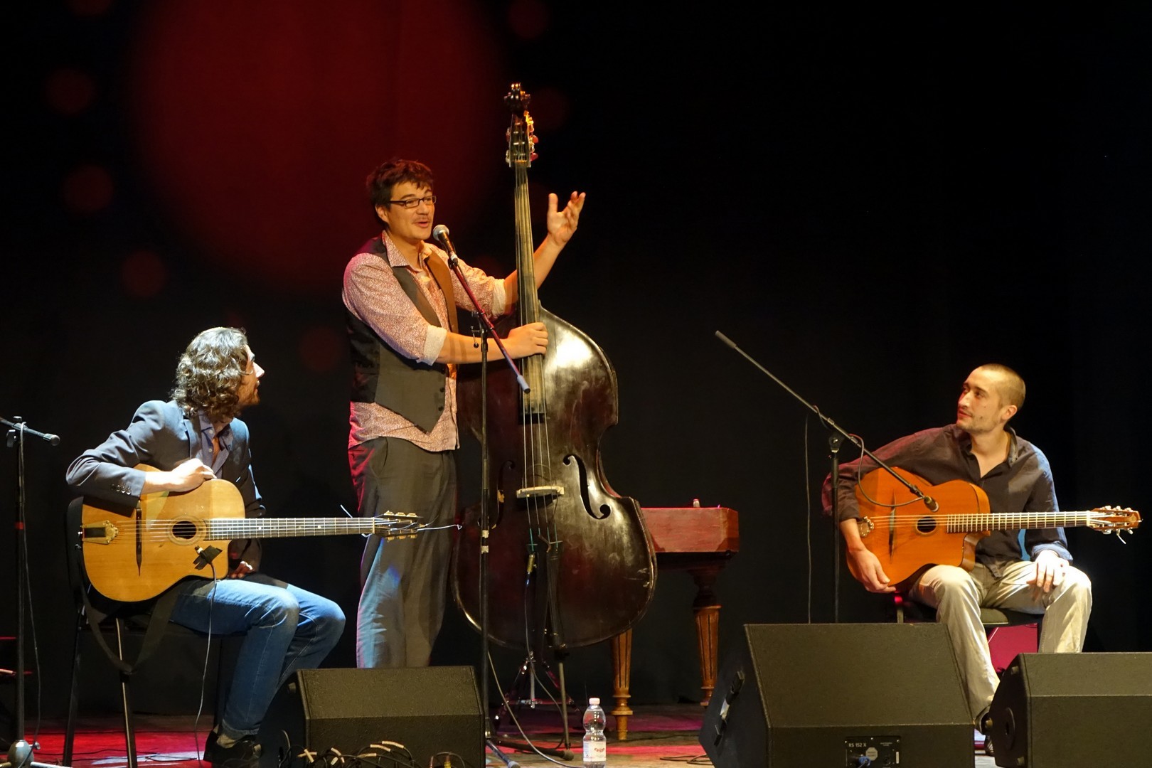 Damien Levasseur (gitár, vokál), Charles Fréchette (gitár, vokál), Coline Rigot (hegedű, vokál) és Jean Russel (nagybőgő, ének) vérében van a Django által megalkotott húros hangszerelésű, lendületes roma-swing világa, amelynek legmeghatározóbb jellegzetessége a hosszú menzúrás manouche gitár és a rajta pergő, csattogó, szólisztikus gitárjáték. Nem szűkölködött ebben a Tcha Badjo jazzt, swinget, francia sanzonokat és cigány dallamokat is megidéző, akusztikus muzsikája sem, ahogyan markáns, többszólamú énekekben, érdekes, disszonáns kiállásokban és tartalmas unisonókban sem. Érdekfeszítő előadásukban főleg saját szerzeményeket hallhattunk, valamint feldolgozásokat Django mestertől. Bravúros zenéjükből többek között kiemelkedett egy blues, amelyet hegedűsük pizzicato – pengetve adott elő. Coline Rigot cirkuszos családban született Párizsban, és hétévesen már a magyar cigányzenét húzta, úgyhogy az sem véletlen, hogy egyik szólójába Monty csárdást lopva kedveskedett a magyar közönségnek. Izgalmas egyórás koncertjük után megérdemelt vastapsot kaptak, amiért illett ráadást is adni.