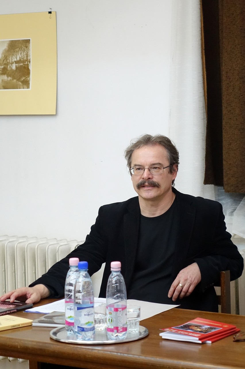 A politikai retorzió természetesen irodalmi pályájára is kihatott, a hatalom által elrendelt szilencium igencsak hosszúra nyújtotta a pályakezdés időszakát. Bár első versei a 60-as évek végén láttak napvilágot, önálló kötettel csak 1991-ben jelentkezett. Lírájának egyik legfőbb forrásává a népköltészet vált, verseiben a sűrített beszédmód és a szürrealista látásmód egyaránt fellelhető. Az esten balladagyűjtő szenvedélyéről is szó esett. Az első népdalgyűjtőútra elsőéves egyetemistaként, kötelező feladatot teljesítve indult el, a következő évben azonban már saját kedvére járta a falvakat, hogy felkutassa a kárpátaljai magyarság népballadáit. Talán nem véletlen, hogy a szerencse népmesékbe illően talált rá egy sikertelen gyűjtőútról hazajövet: a jogdíjat borban mérő kőműves segéd, Árpi hat balladát énekelt fel neki a sebtében beszerzett orsós magnetofonra. A költőnek és társainak a kultúrmisszót teljesítő Forrás Stúdió berkein belül, Stumpf Benedek András vezetésével, 75 balladatípus 120 változatát sikerült összegyűjteniük 1970 és 71 nyarán.