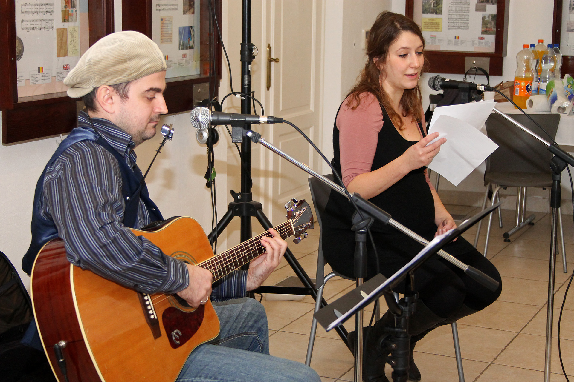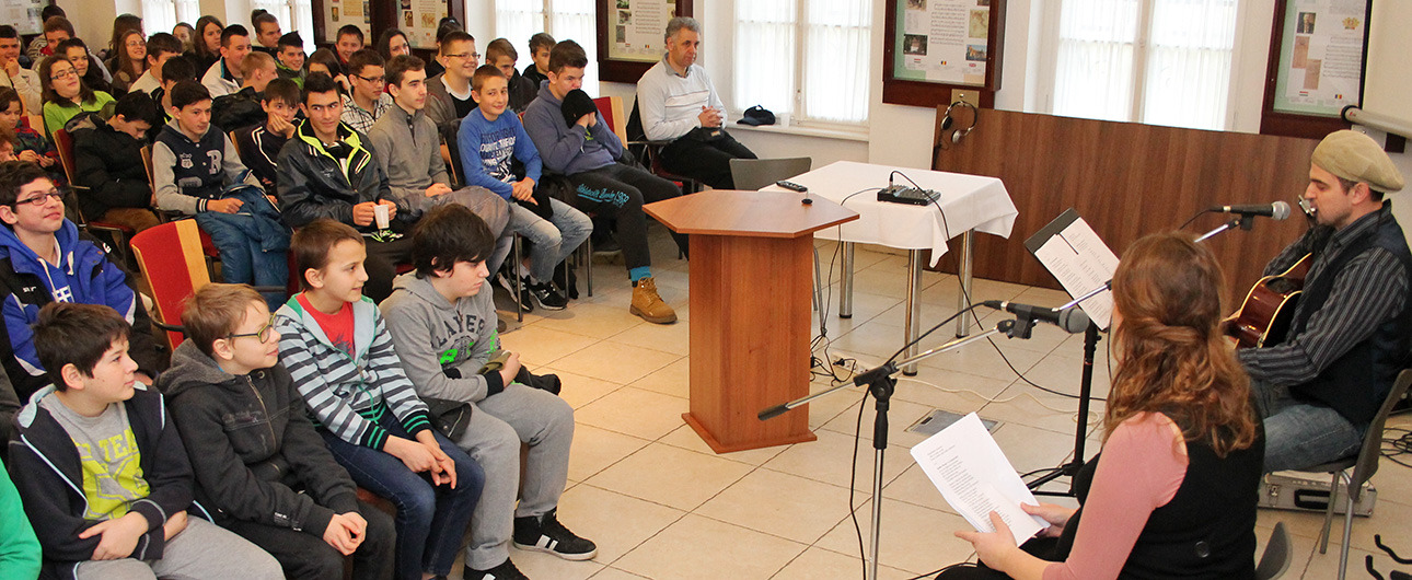 A videót követően a diáksereg egy Alternatív irodalom című, fölöttébb szórakoztató, zenés-verses műsort hallhatott, amely Lovas-Tóth Kata és Baracsi István jóvoltából kerülhetett tető alá. Az előadás során Lovas-Tóth Kata egy remekül összeválogatott, különböző korokat, alkotókat és hangulatokat idéző költészeti kavalkáddal kedveskedett közönségének, miközben Baracsi István szájharmonikán és gitáron kísérte őt, valamint hasonlóan magvas mondanivalójú nótákkal mulattatta népes hallgatóságát, de persze ezúttal sem felejtette otthon a tőle megszokott bolondosságot.