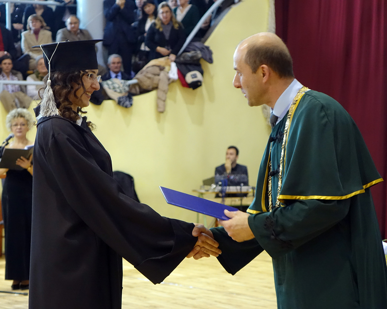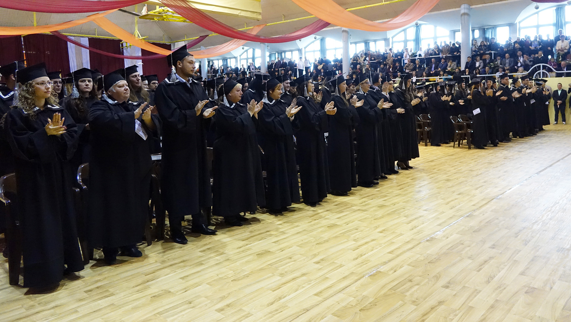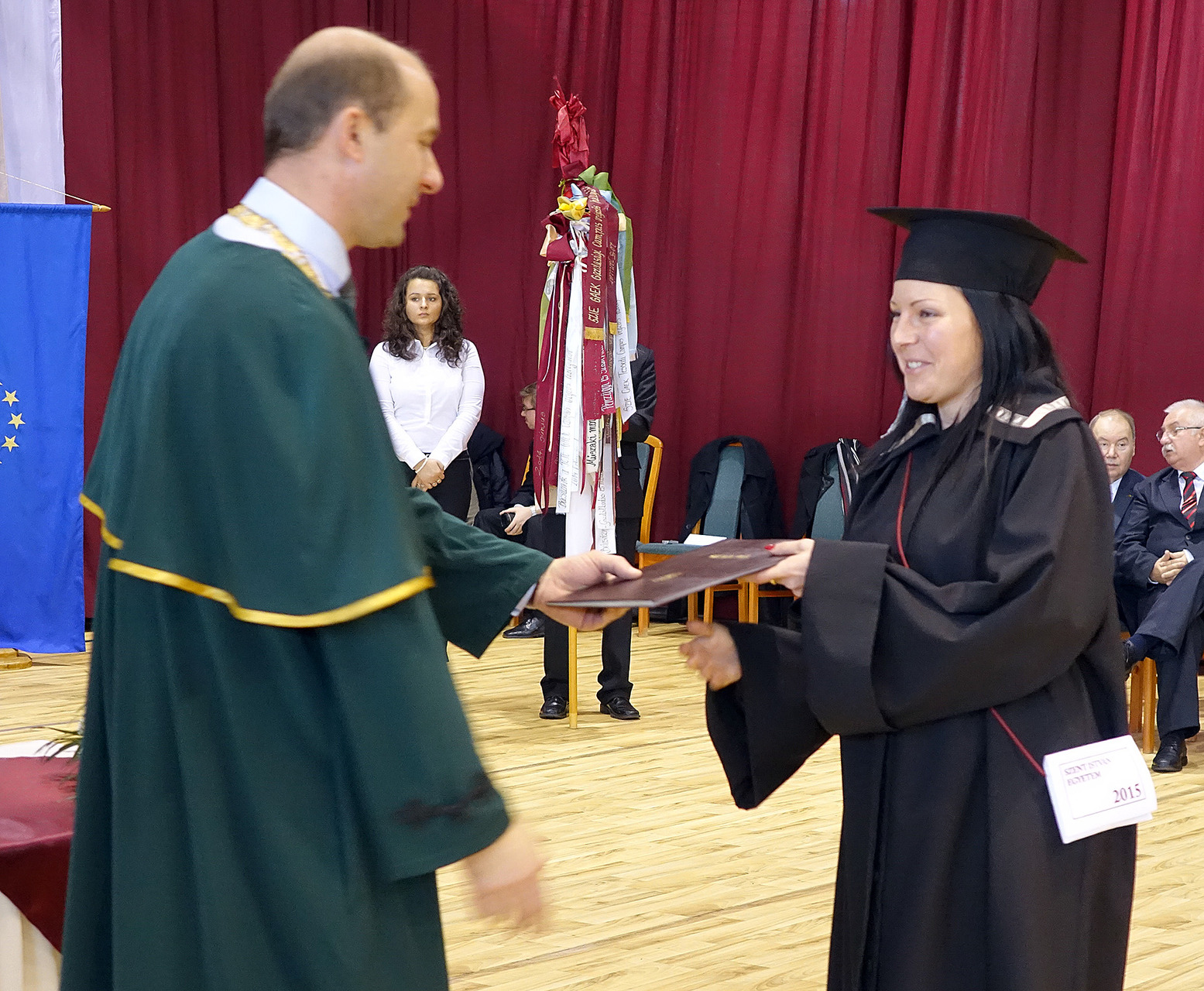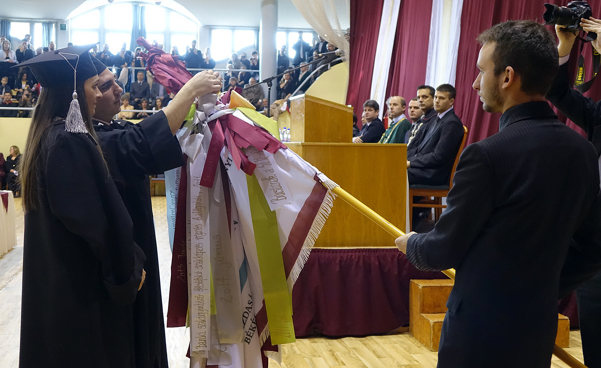 A dékáni záróbeszéd után felcsendült az Európai Unió himnusza, és az elnökség kivonulása után az immáron diplomás hallgatók levegőbe röpíthették sapkájukat, mintegy jelképezve a hallgatói évek lezárását, egyben egy új életút kezdetét is.