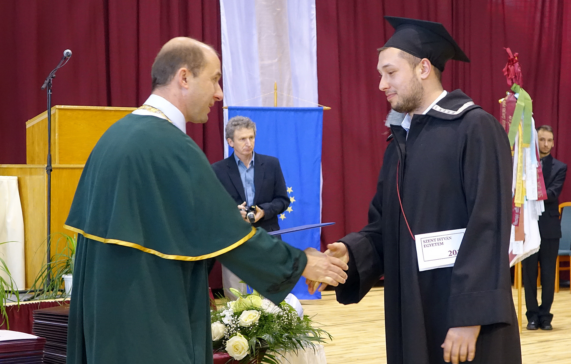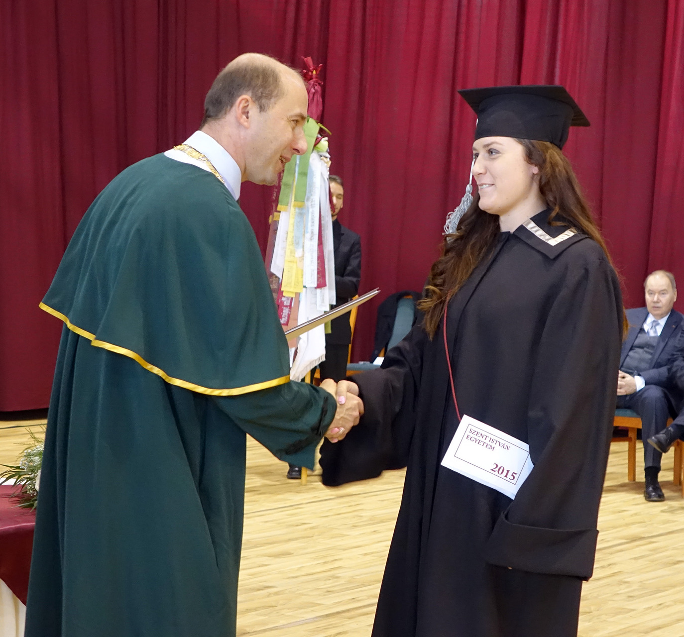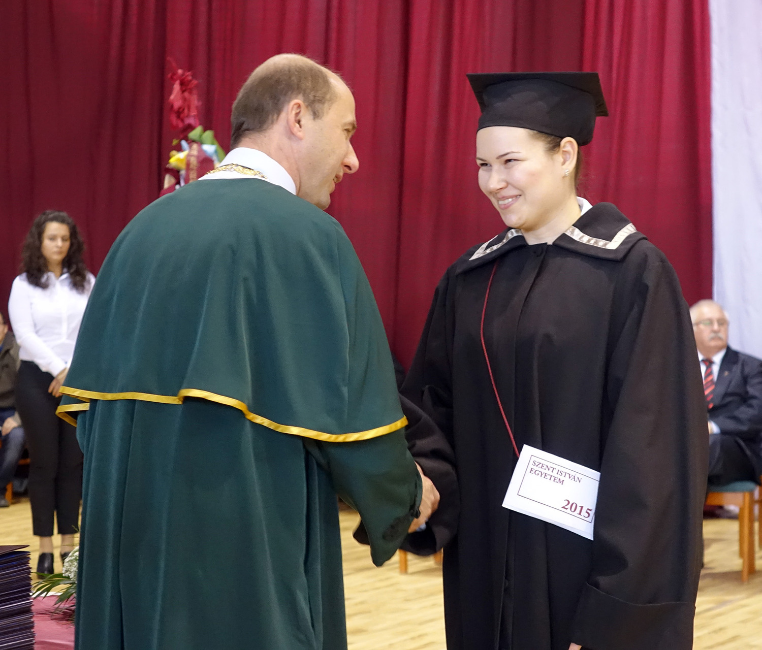 – Olyan korban élünk, a XXI. század elején, amely ha akarjuk, ha nem, a tudásra épül. Önök néhány évvel ezelőtt elhatározták, hogy ezen a karon, valamely szakon elkezdik tanulmányaikat, és örömmel érkeztek erre az alkalomra, ahol befejezhetik ezt a cselekményt, és átvehetik diplomájukat. Felhívnánk a figyelmüket arra, hogy a tudásukat érdemes időnként megújítani, és azt is hangsúlyoznám, hogy a tudásról kell jogosítvány. Ez az Önök papírja. Biztosak vagyunk abban, hogy az adott szakterületen minden olyan információt megkaptak, hogy szakmájukat elkezdhessék, és sikeresek legyenek – szólt elsőként a végzősökhöz dr. Tőzsér János, a Szent István Egyetem rektora.
