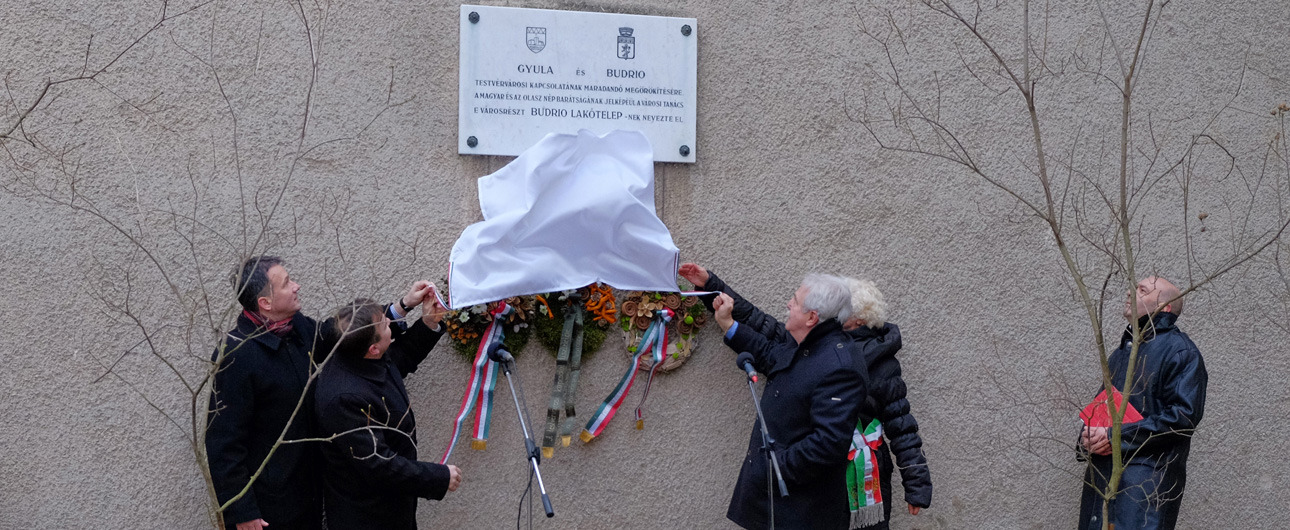 Ünnepélyes keretek között avatták újra a Gyula és Budrio testvérvárosi kapcsolatának tiszteletére állított emléktáblát február 8-án a Budrio lakótelepen. A rendezvényt Kónya István alpolgármester köszöntője nyitotta meg, majd Luisa Cigognetti budriói alpolgármester és Giorgio Cesari volt alpolgármester ünnepi gondolatait hallhatták a jelenlévők. Az ünnepségen dr. Görgényi Ernő polgármester és Becsyné dr. Szabó Márta címzetes főjegyző is részt vett, ezzel is jelezve, hogy Gyula város számára mennyire fontos a testvéri kapcsolat.