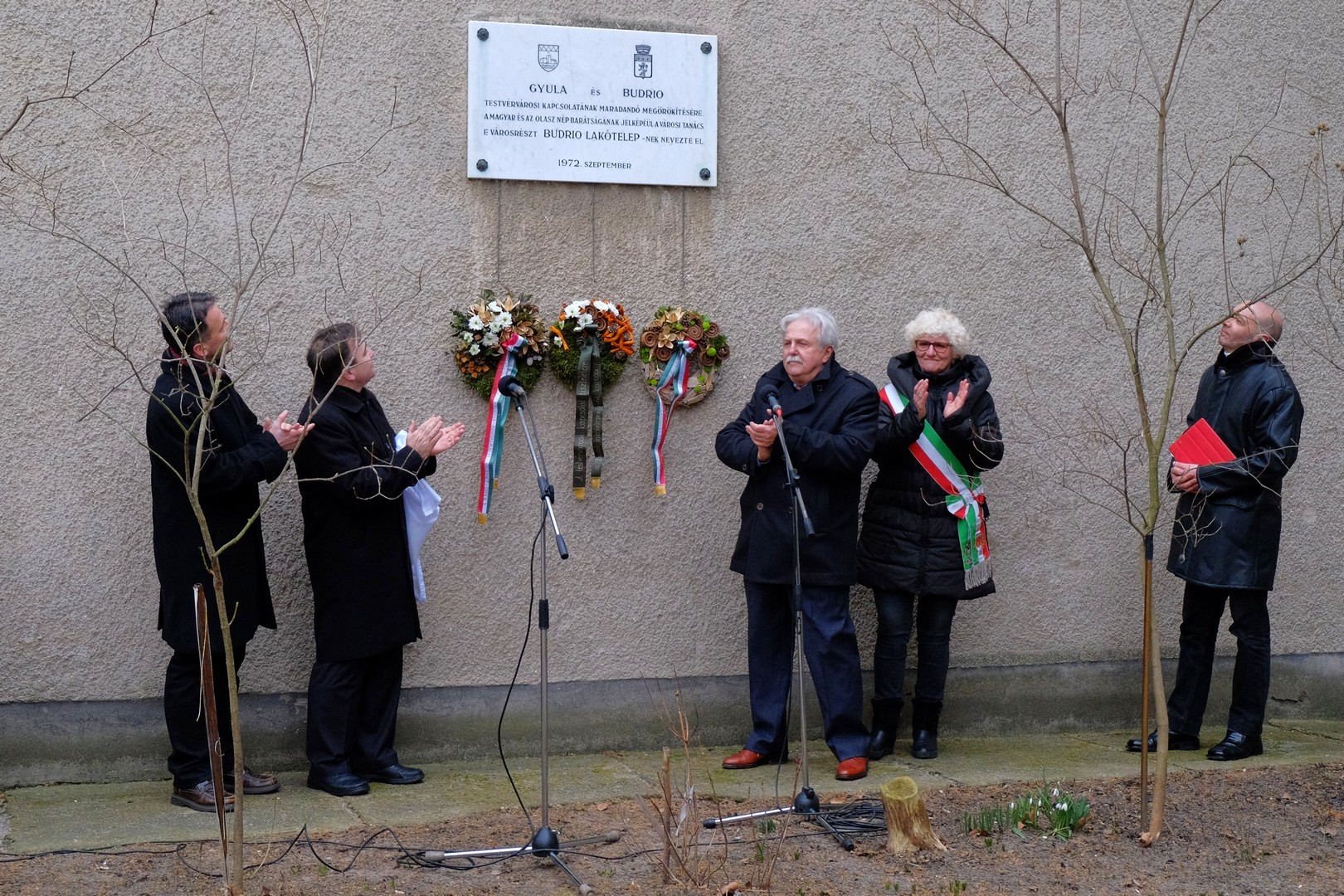 Budrio város alpolgármestere elmondta, amikor először járt a gyulai lakótelepen, rendkívül meghatotta, hogy több ezer kilométer távolságból láthatta városa nevét a falakra írva. Luisa Cigognetti úgy fogalmazott, ezek a jelek mind fontosak, hiszen ezek örökítik meg mindazoknak a munkáját, akik előttük jártak, és akiknek törekvéseit tovább kell vinniük. Luisa Cigognetti végül hozzátette, reméli, hogy 50 év múlva az olaszországi, valamint a magyarországi Budrio lakosai ugyanitt egy új emléktáblát avathatnak, amely újfent megújítja majd a barátságot.