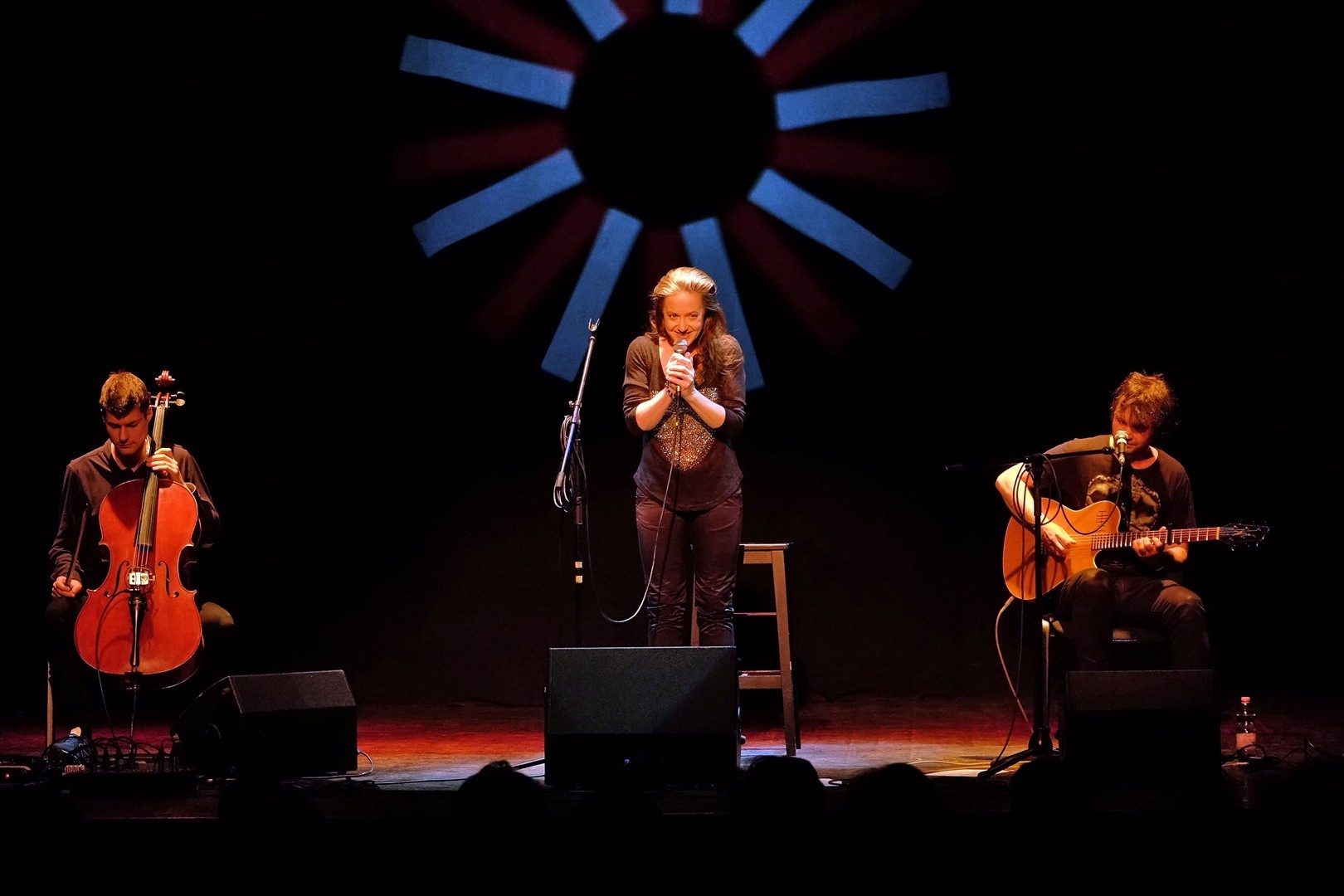 A koncerten a szintén elismert Hrutka Róbert (gitár/vokál) is közreműködött, aki egyben a dalok zenéjét jegyzi. Az ő játéka, valamint az általa írt dallamok „Hrutka Robis” egyedisége és lendületessége olyannyira erőteljessé tette a nótákat, hogy azok magával sodorták a hallgatóságot. A formáció harmadik tagjaként a Liszt Ferenc Zeneművészeti Egyetemen diplomázott Kalmus Felicián lépett színpadra, akinek csellójátéka igazán feldobta a szerzeményeket. A tehetséges zenész szó szerint bűvölte hangszerét, mellyel egyedi pikantériát adott a muzsikának.