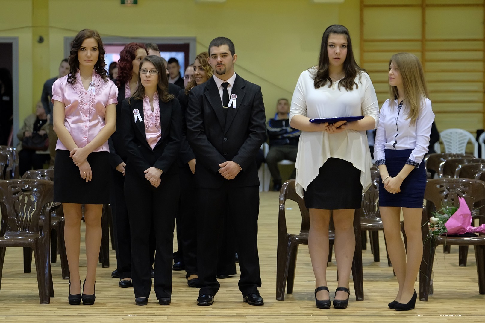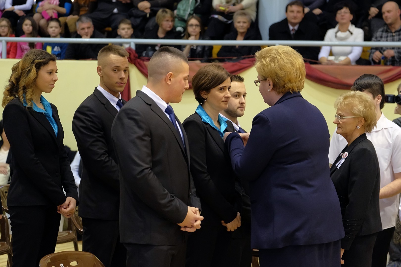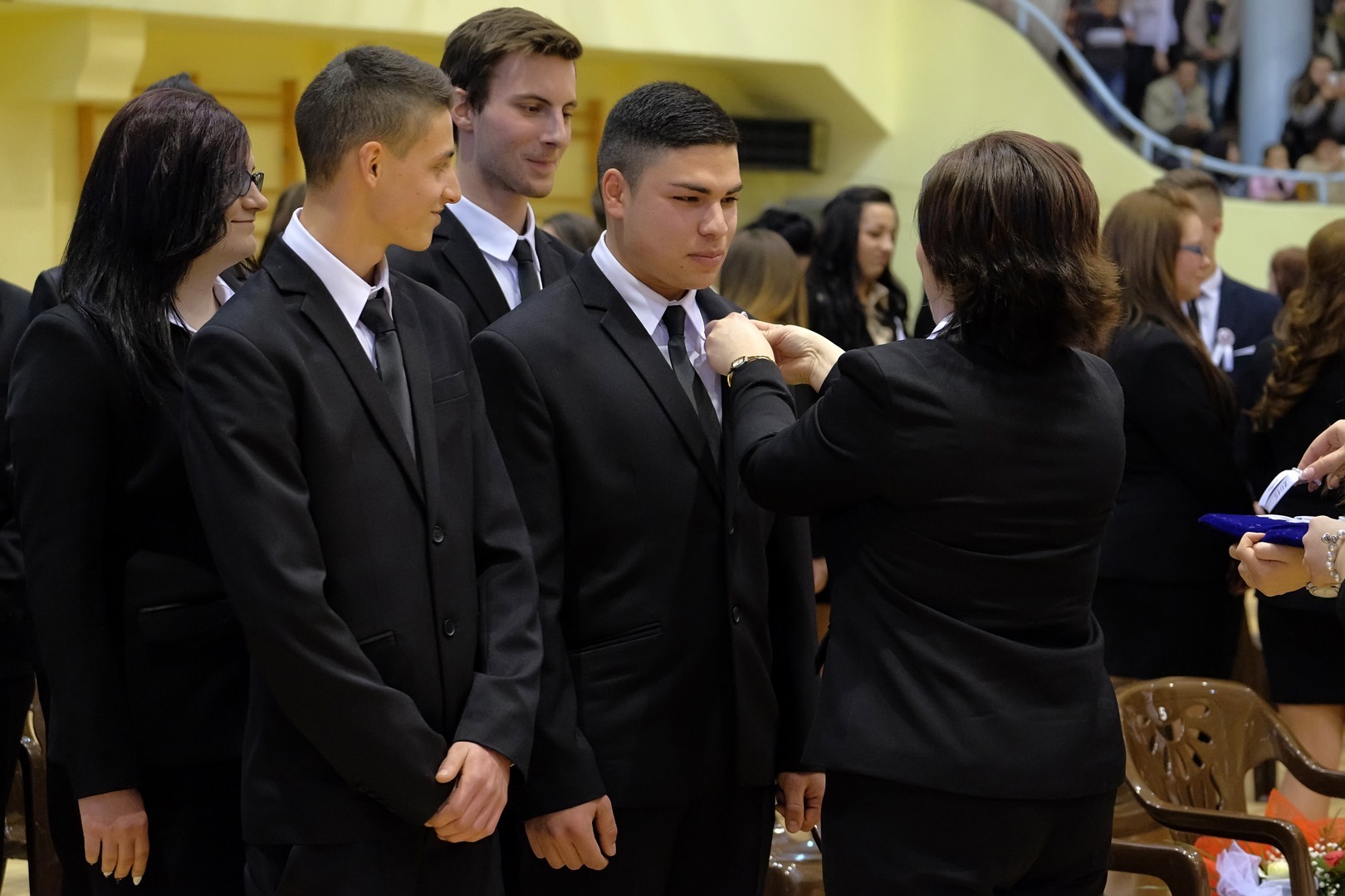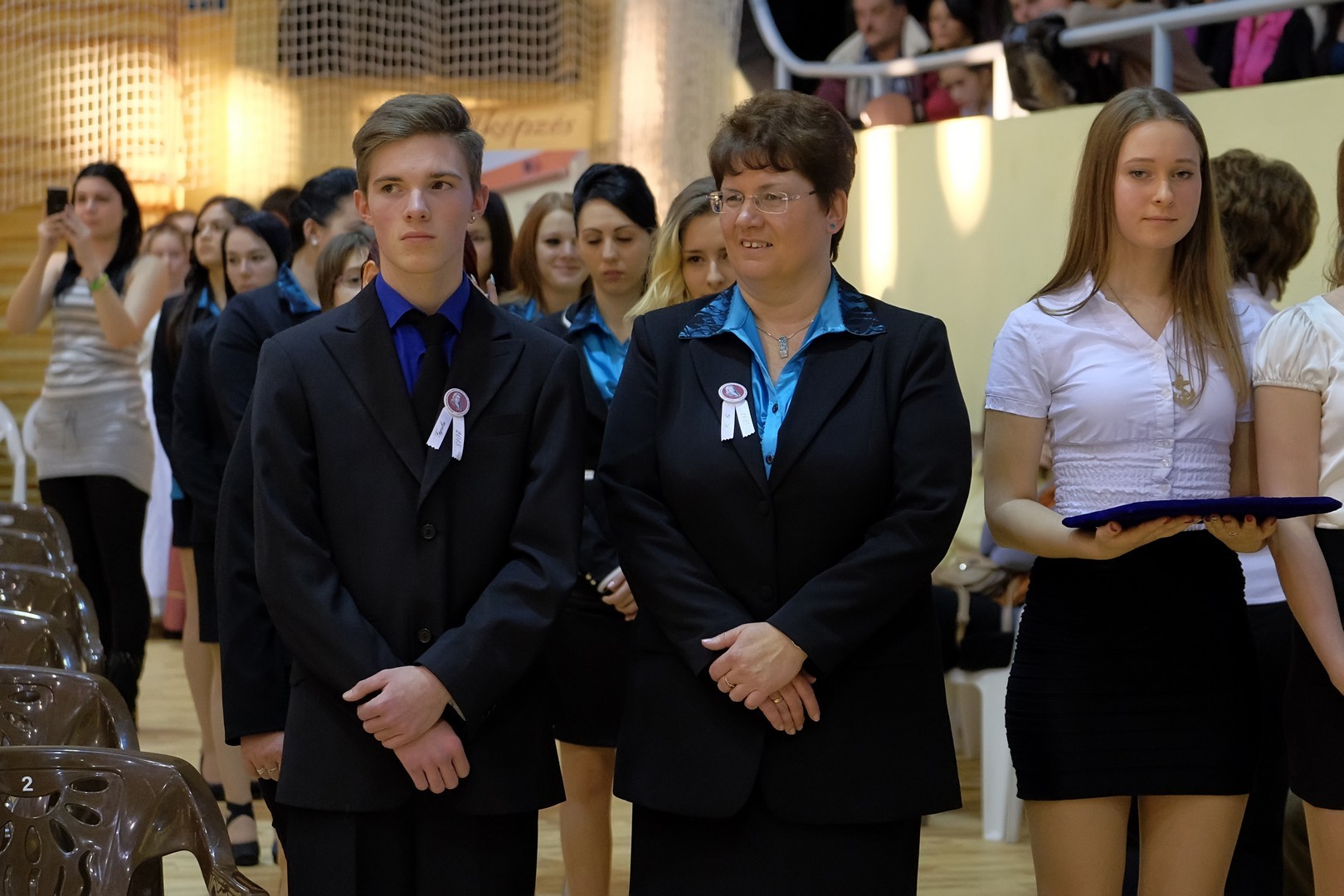 A köszöntőt követően elérkezett a várva várt pillanat: a szalagtűzés. A ceremónián 10 osztály 156 végzős diákjának mellkasára került fel a középiskolai évek végét szimbolizáló szalag.