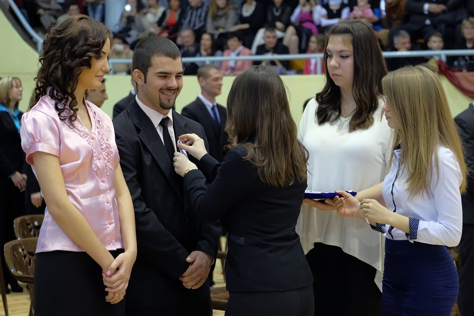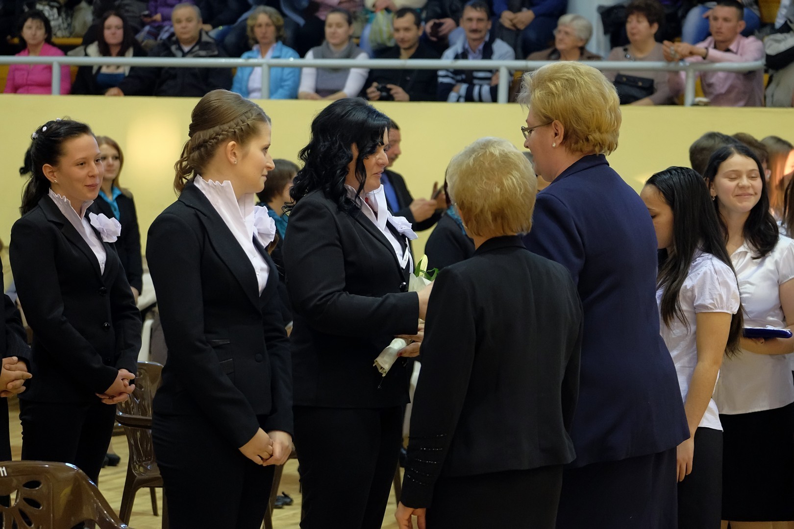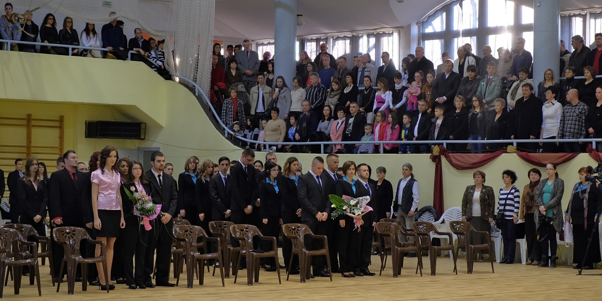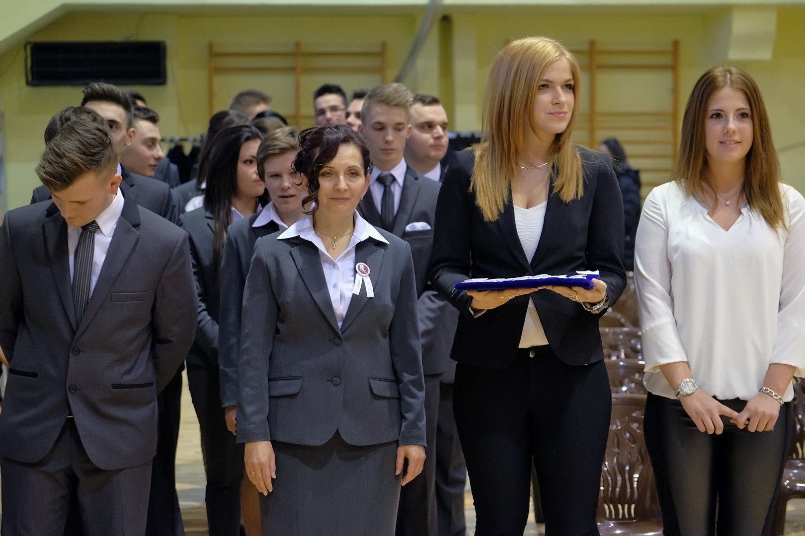 A köszöntőt követően elérkezett a várva várt pillanat: a szalagtűzés. A ceremónián 10 osztály 156 végzős diákjának mellkasára került fel a középiskolai évek végét szimbolizáló szalag.