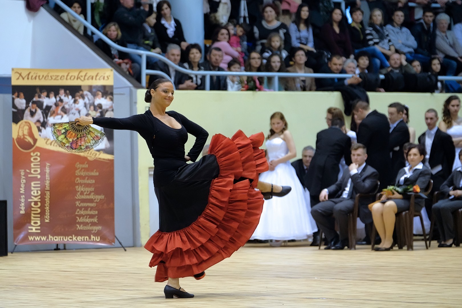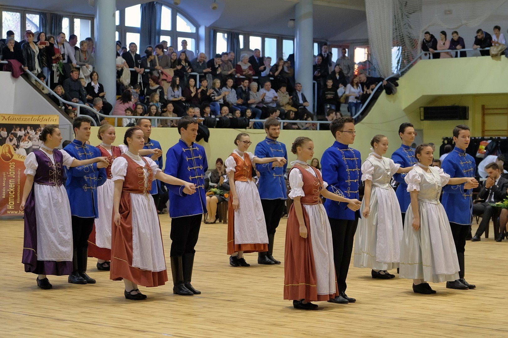A szalagtűzés után zenés-táncos műsorszámokat láthattak a jelenlévők. A Békés Megyei Harruckern János Középiskola Alapfokú Művészetoktatási Iskolájának diákjai palotást táncoltak, melynek koreográfiáját Horváth Péter táncpedagógus tanította be. Ezt követően Kökény Hajnalka 11. A osztályos tanuló verssel köszöntötte a végzősöket, majd a Színitanház egyik növendékének, Zsombok Rékának énekprodukciója színesítette a programot. A műsor ezután a békéscsabai Színitanház művésztanárainak, táncpedagógusainak bemutatójával folytatódott, mely során Bonczos Andrea balettművész és Darida Ildikó táncművész a Hattyúk tava ismert Spanyol táncát adta elő. A végzős évfolyam Máté Péter 20 év múlva című szerzeményének eléneklésével kedveskedett a vendégeknek.