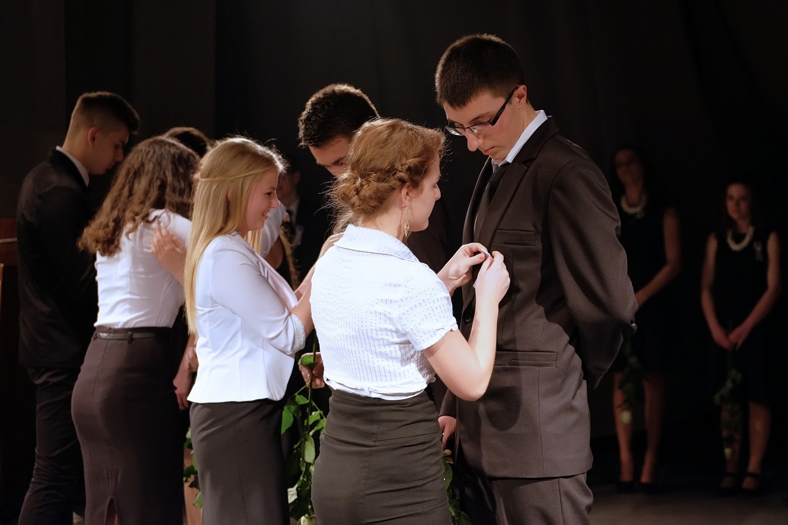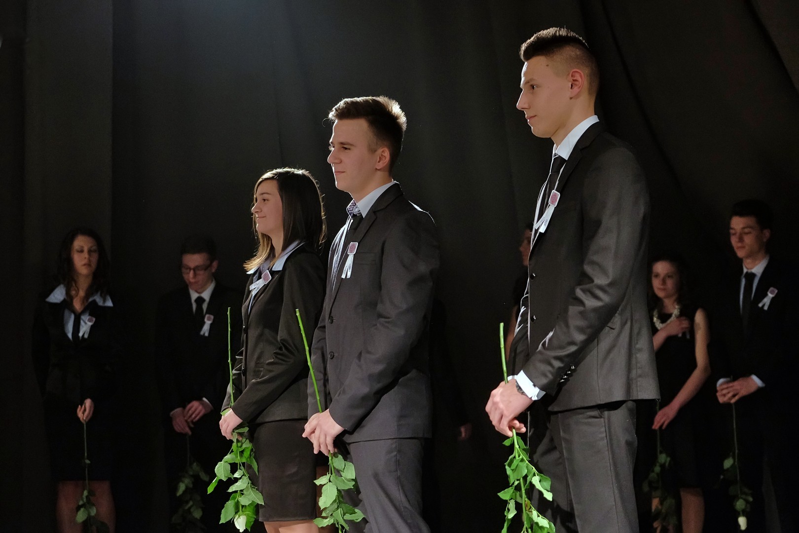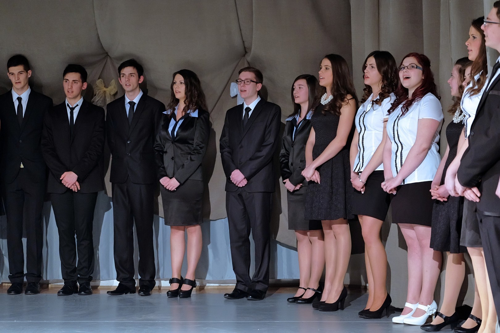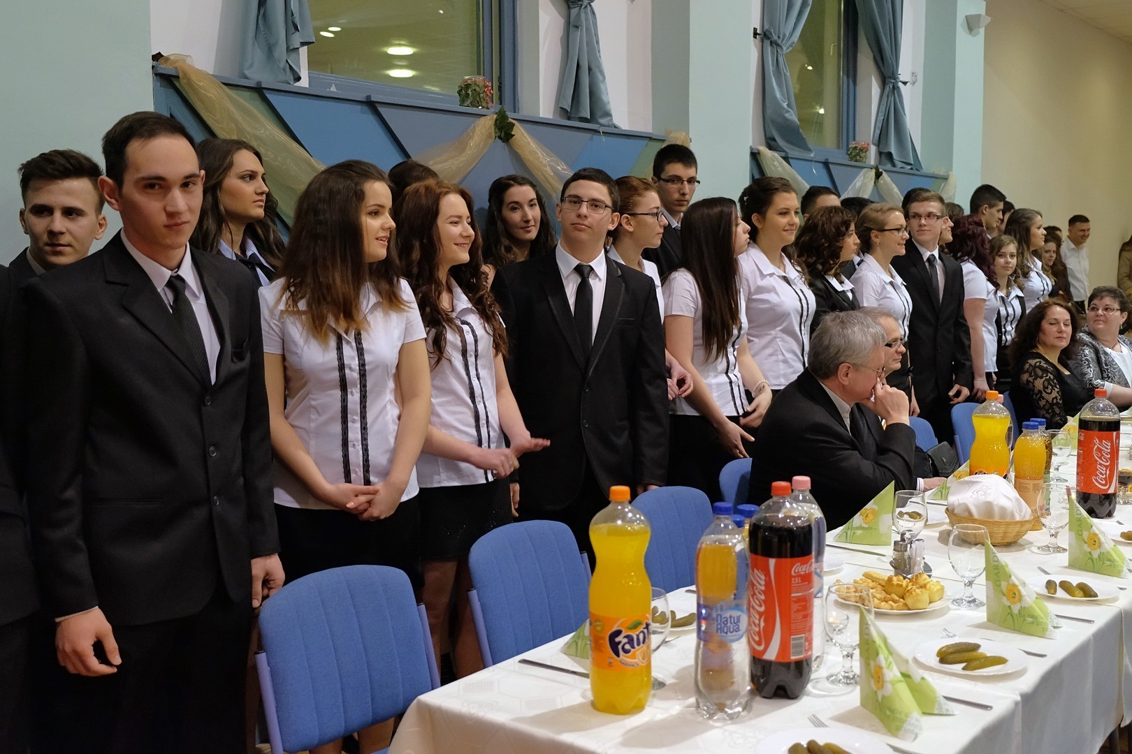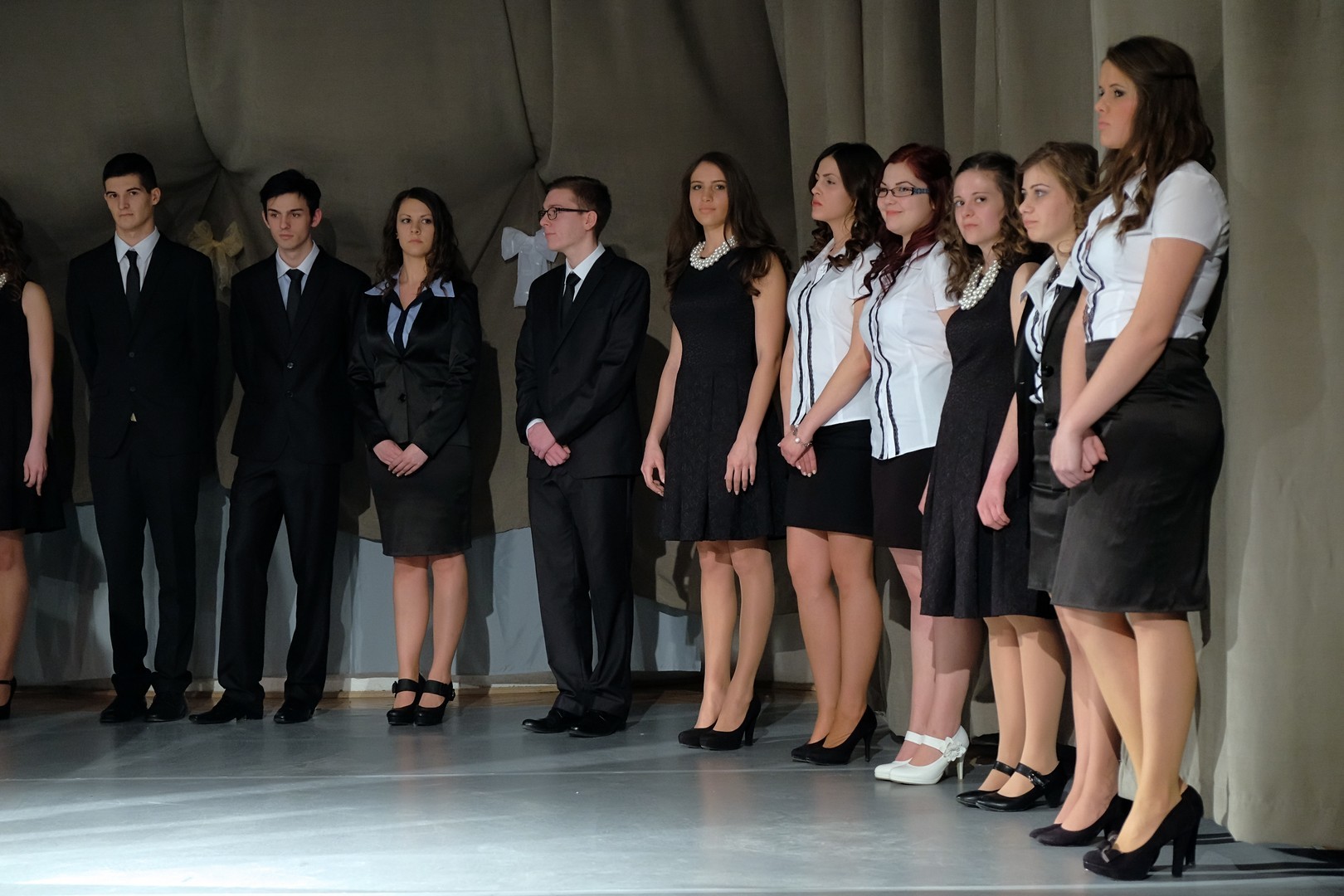 A köszöntők után a ballagó évfolyam versekkel, idézetekkel és dalokkal kedveskedett a vendégeknek, majd a harmadikosok műsora következett. A produkciók után az est legfontosabb momentuma is elérkezett: a szalagok feltűzése. Idén a Szentlélekiné Moldován Éva és Szelezsán Róbert pedagógusok által terelgetett két végzős osztály 42 tanulójának gallérjára került fel a szalag.