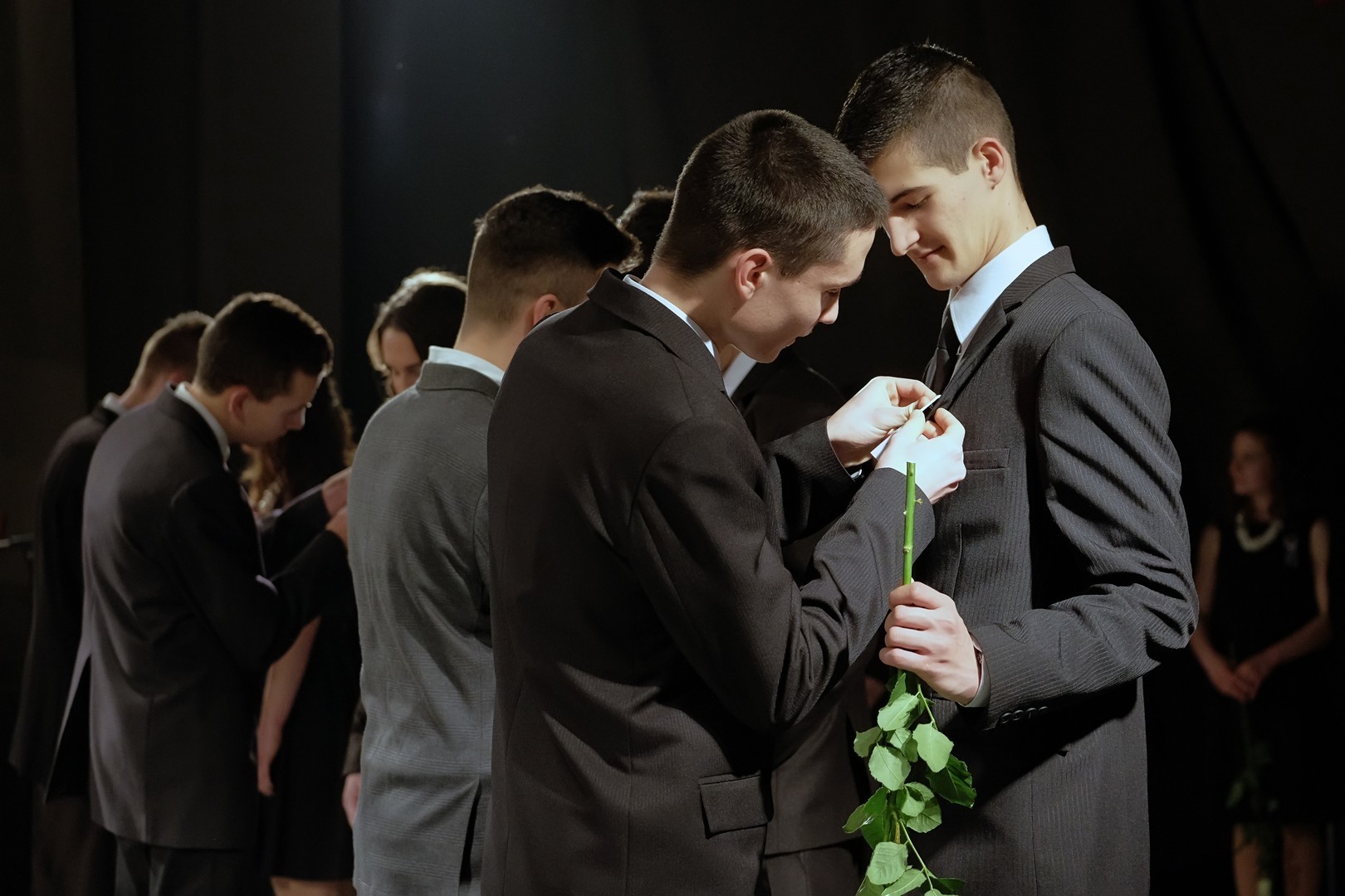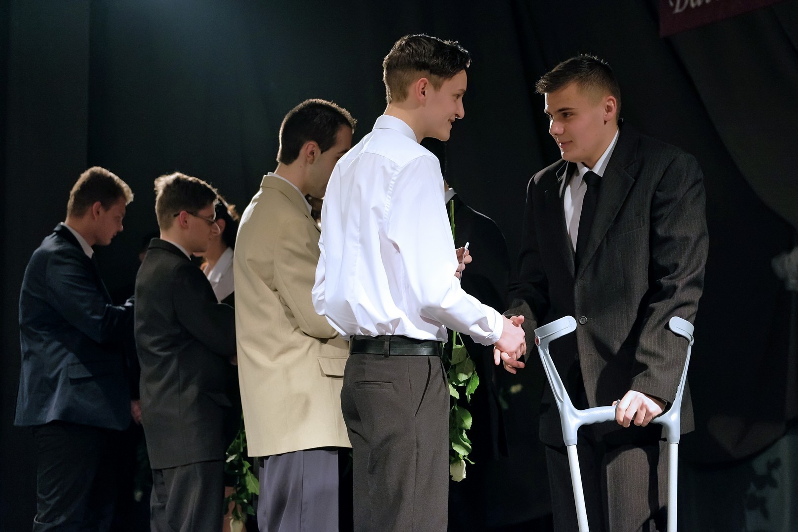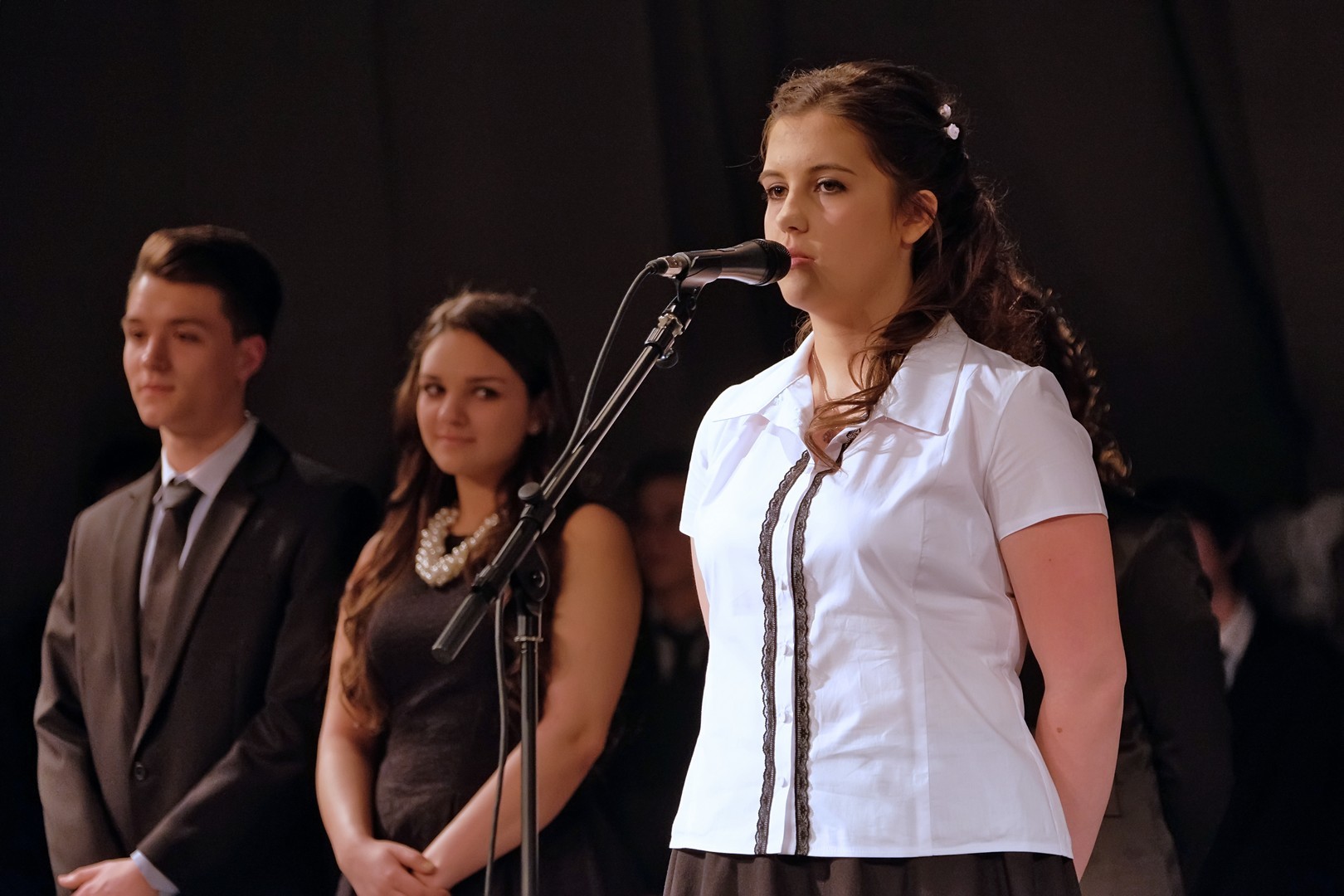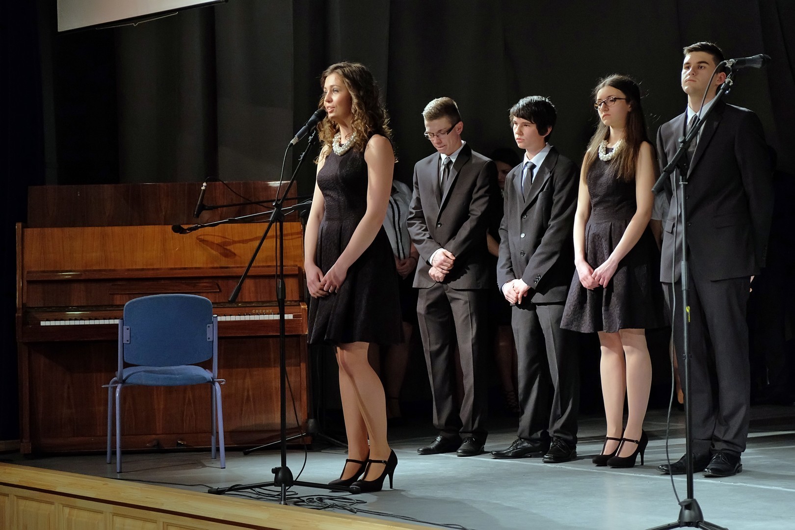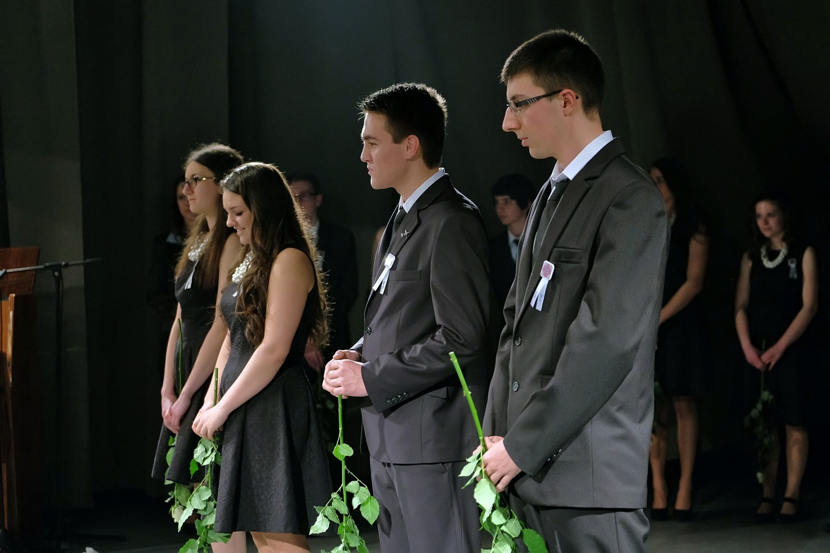 A köszöntők után a ballagó évfolyam versekkel, idézetekkel és dalokkal kedveskedett a vendégeknek, majd a harmadikosok műsora következett. A produkciók után az est legfontosabb momentuma is elérkezett: a szalagok feltűzése. Idén a Szentlélekiné Moldován Éva és Szelezsán Róbert pedagógusok által terelgetett két végzős osztály 42 tanulójának gallérjára került fel a szalag.