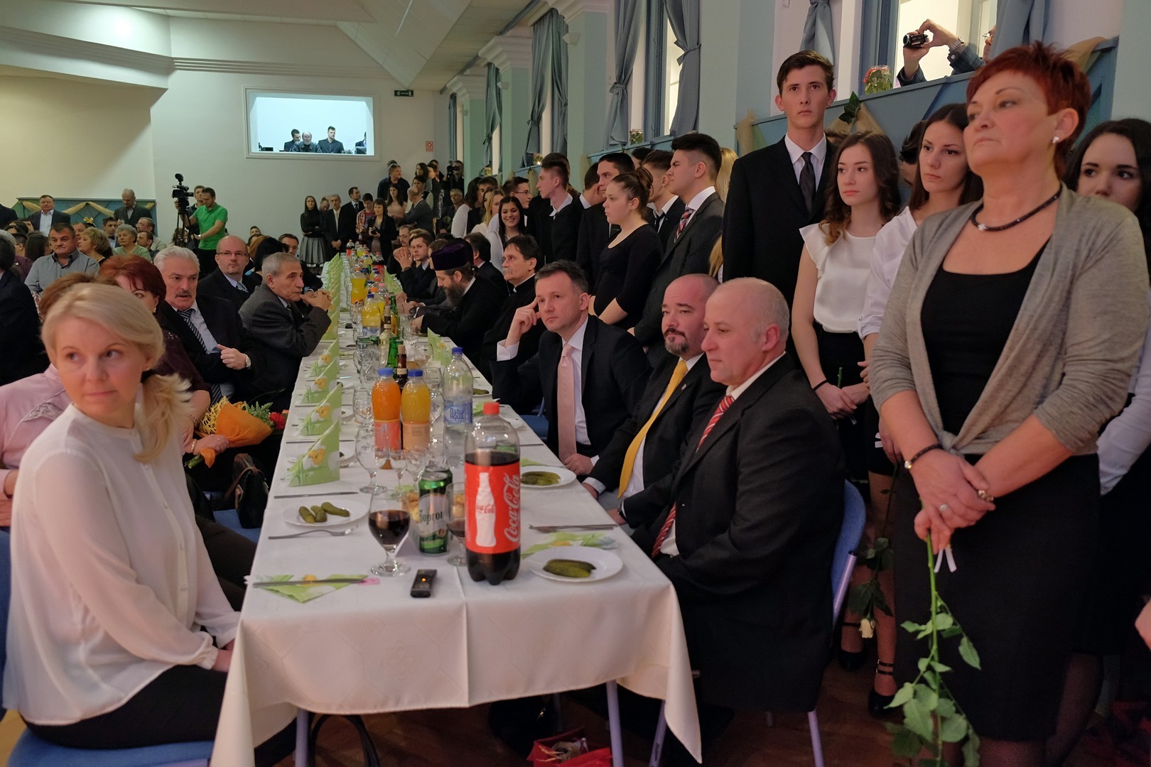 - Minden átmeneti rítushoz tartozik valamilyen ünnepség, illetőleg sokszor valamilyen jelöléssel is ellátják azokat, akik túlesnek egy-egy ilyen jellegű avatáson. Fontos dolog ez, hiszen ritkán gondolunk arra menet közben, mennyi szakaszon át vezet az utunk. A szalag, kedves diákok, amivel ma megjelölnek benneteket, ennek ellenére nem több, mint egy szép emlék, egy tárgy, egy jelkép. És csak ideig-óráig köt össze benneteket, mert a szeretet, a barátság, a hűség és a tisztelet az igazi összekötő kapocs, és a közös pont az iskola, ahol mindezek megszülethetnek – kezdte a városvezető.