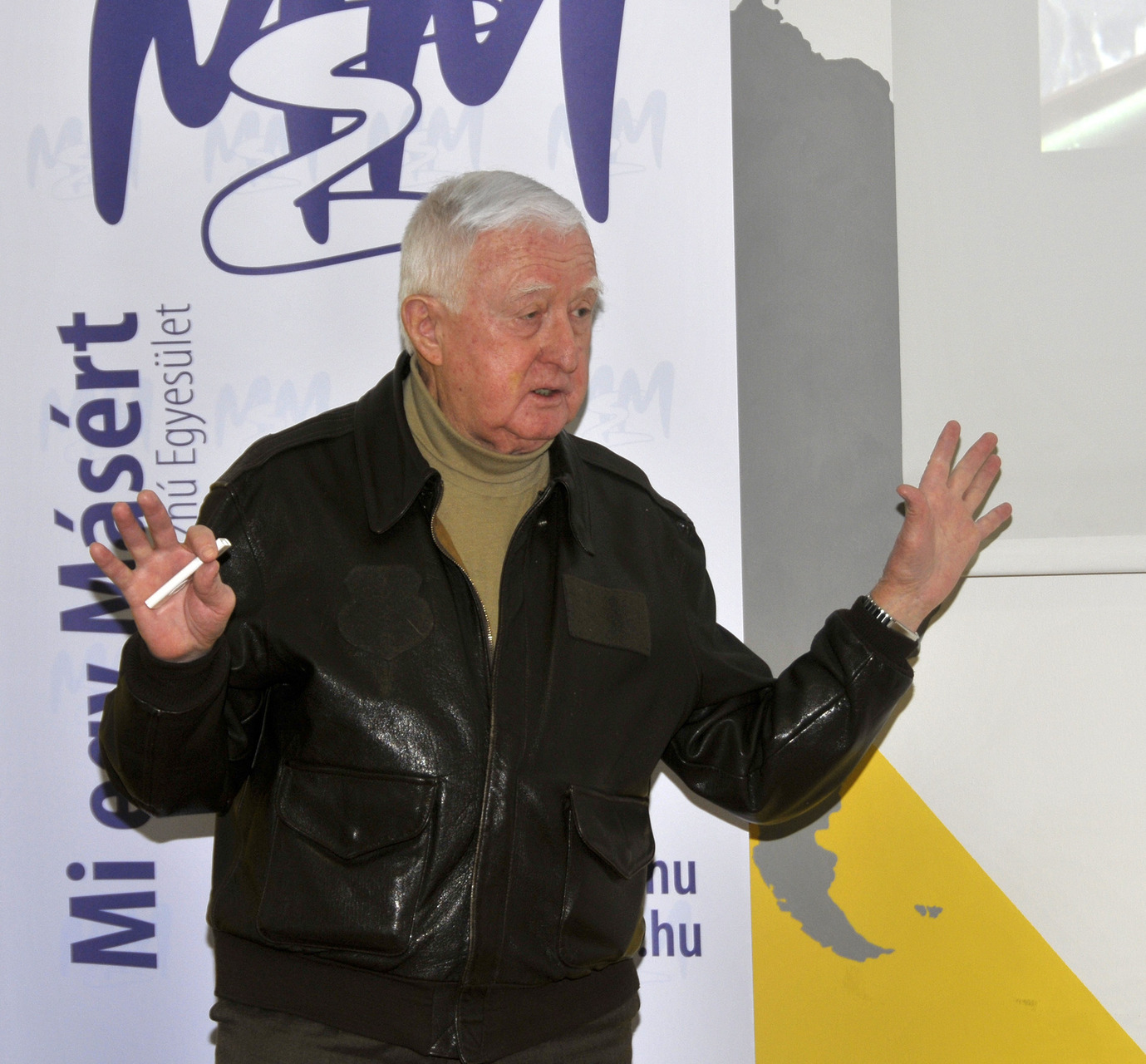 Kositzky Attila elmondta, nem lenne szükség vadászpilótára, ha az ember nem mozdulna ki otthonról, és háborúzás helyett versekbe foglalná gondolatait. De nem így van. Egy érdekes statisztika szerint, amióta írott történelme van az emberiségnek, azóta annyit költött fegyverkezésre, háborúra, hogy abból egy 150 km széles és 10 méter vastag aranygyűrűt lehetne húzni Föld köré. A legrosszabb az egészben – tette hozzá a nyugalmazott altábornagy –, ez a képzeletbeli gyűrű állandóan növekszik.