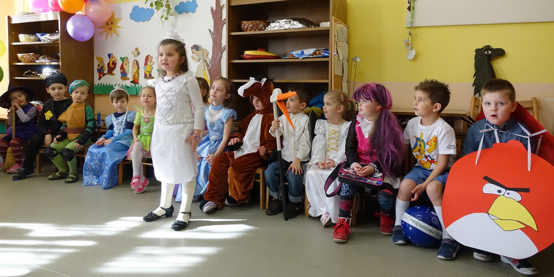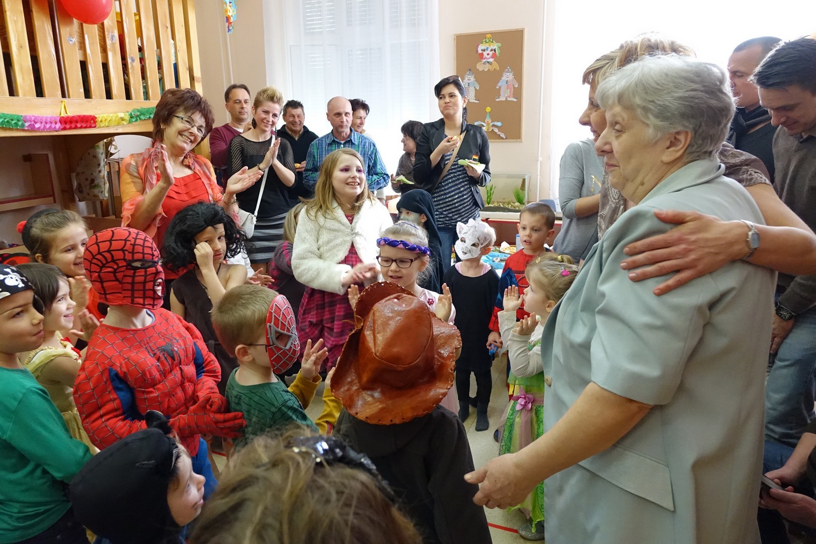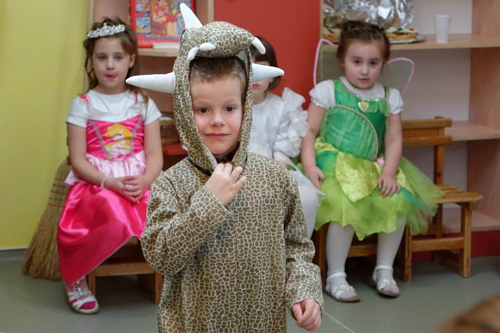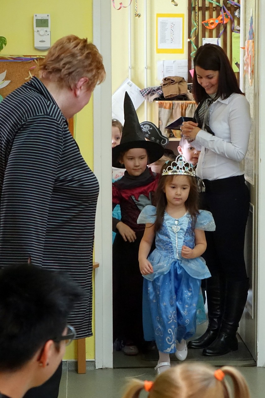A játék okozta derült pillanatokat hamarosan újabbak követték, amikor is a csemeték különféle bájos és ötletes maskarákat öltöttek magukra. A szebbnél szebb jelmezeket, illetve pöttöm viselőik bátorságát tapssal jutalmazta a közönség. Láthattunk tündért, autószerelőt, spanyol táncost, mesehősöket és kalózokat is, de még egy „angry bird” is sétált a folyosókon. A maszkos felvonulás után vidám hangulatú zenés mulatozás vette kezdetét.