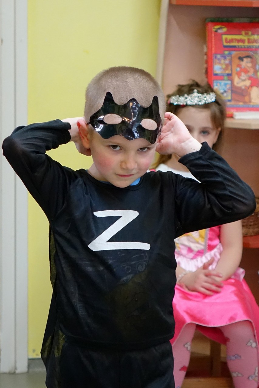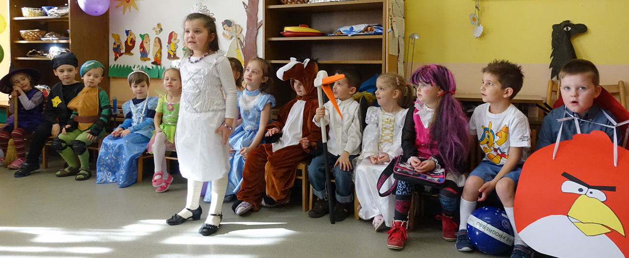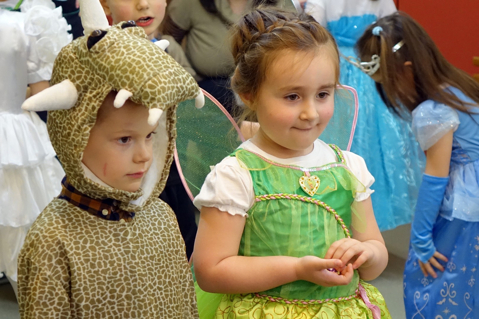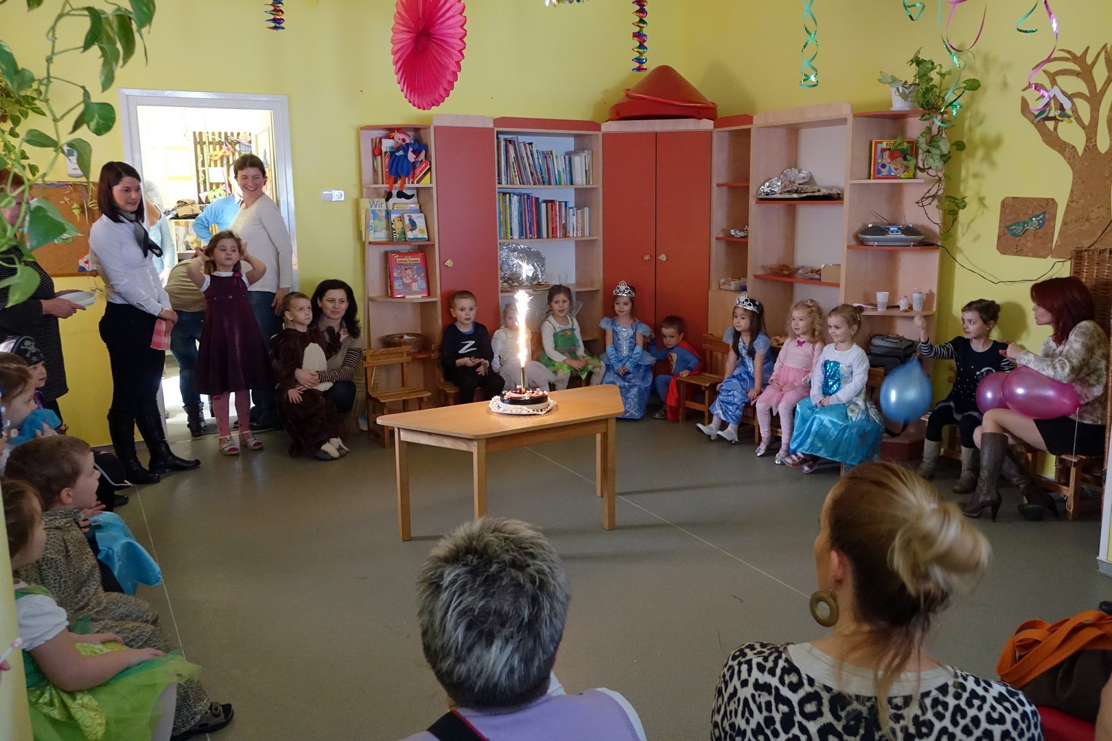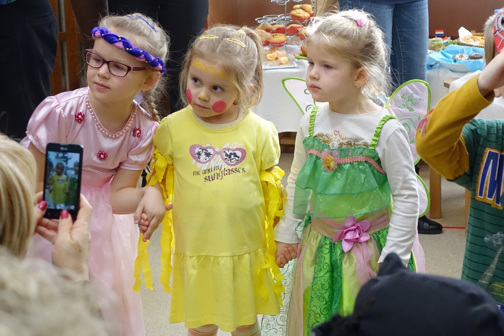 A játék okozta derült pillanatokat hamarosan újabbak követték, amikor is a csemeték különféle bájos és ötletes maskarákat öltöttek magukra. A szebbnél szebb jelmezeket, illetve pöttöm viselőik bátorságát tapssal jutalmazta a közönség. Láthattunk tündért, autószerelőt, spanyol táncost, mesehősöket és kalózokat is, de még egy „angry bird” is sétált a folyosókon. A maszkos felvonulás után vidám hangulatú zenés mulatozás vette kezdetét.