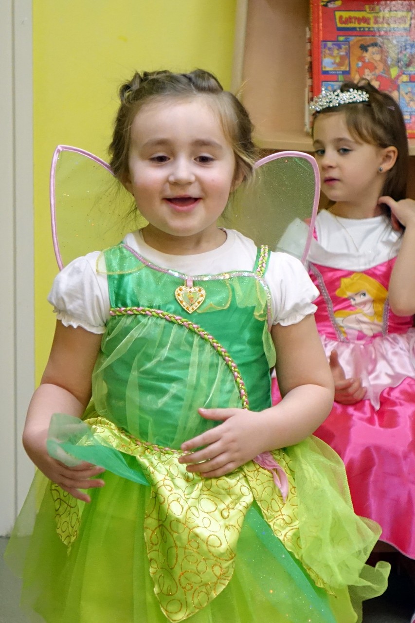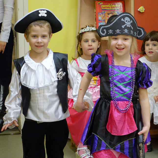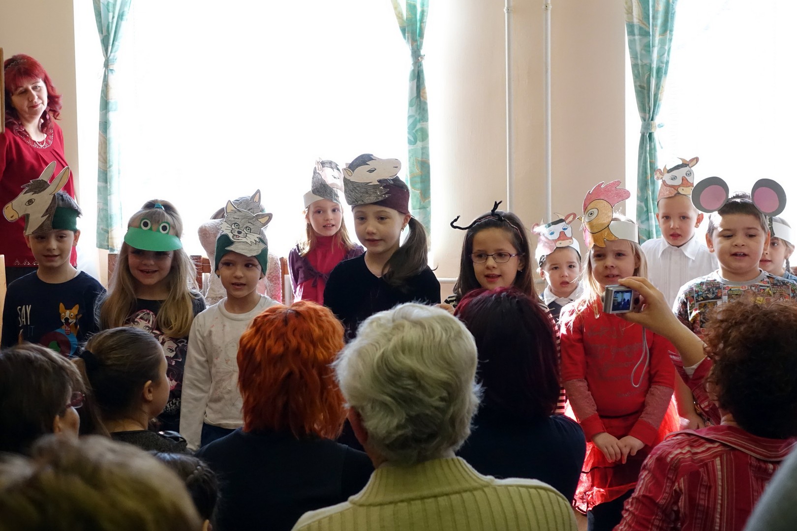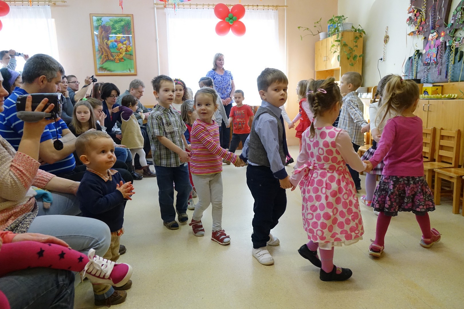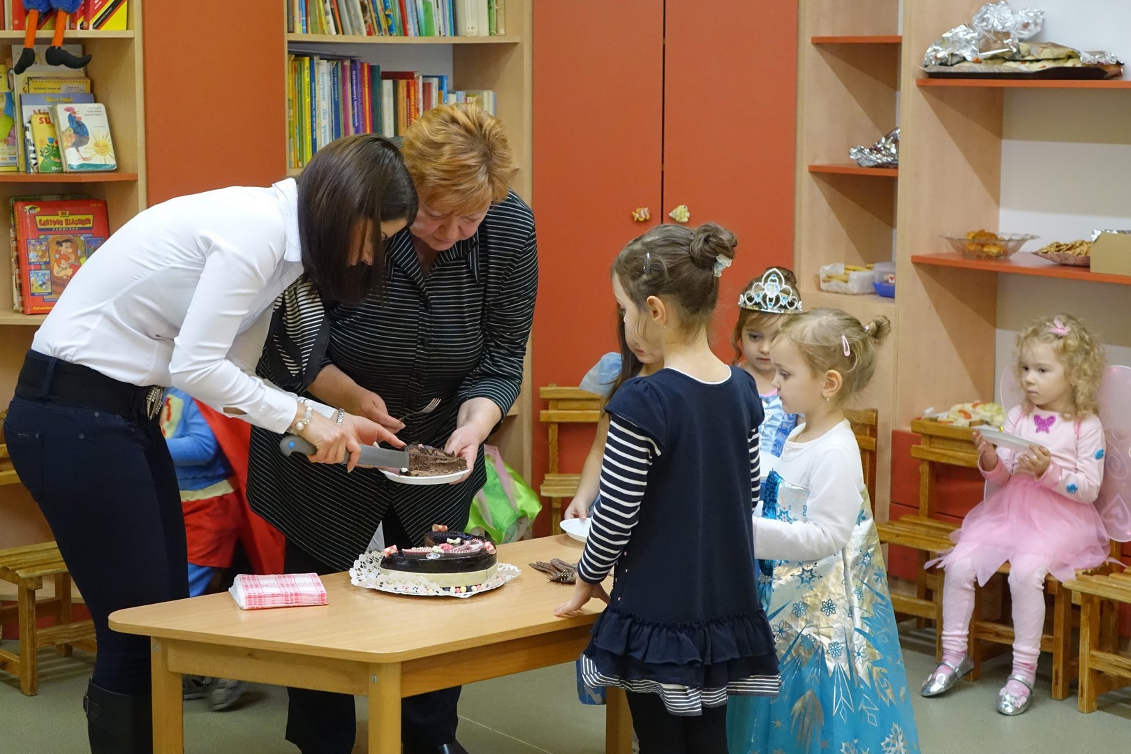 A játék okozta derült pillanatokat hamarosan újabbak követték, amikor is a csemeték különféle bájos és ötletes maskarákat öltöttek magukra. A szebbnél szebb jelmezeket, illetve pöttöm viselőik bátorságát tapssal jutalmazta a közönség. Láthattunk tündért, autószerelőt, spanyol táncost, mesehősöket és kalózokat is, de még egy „angry bird” is sétált a folyosókon. A maszkos felvonulás után vidám hangulatú zenés mulatozás vette kezdetét.