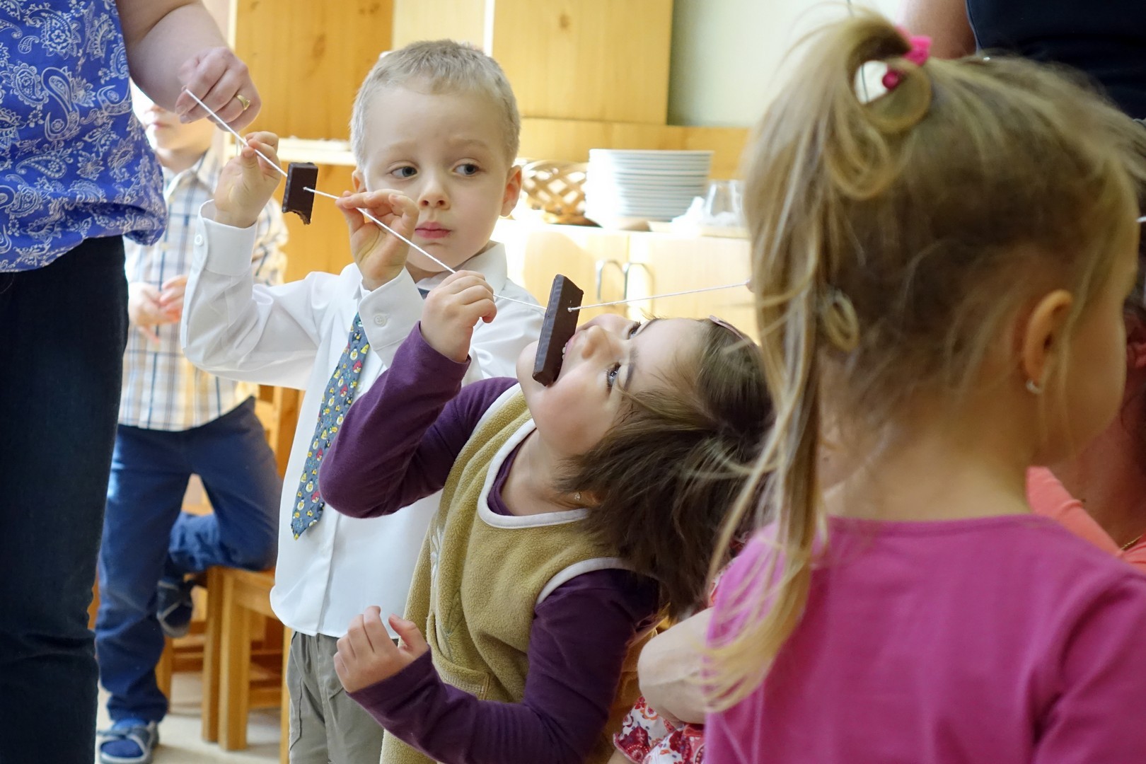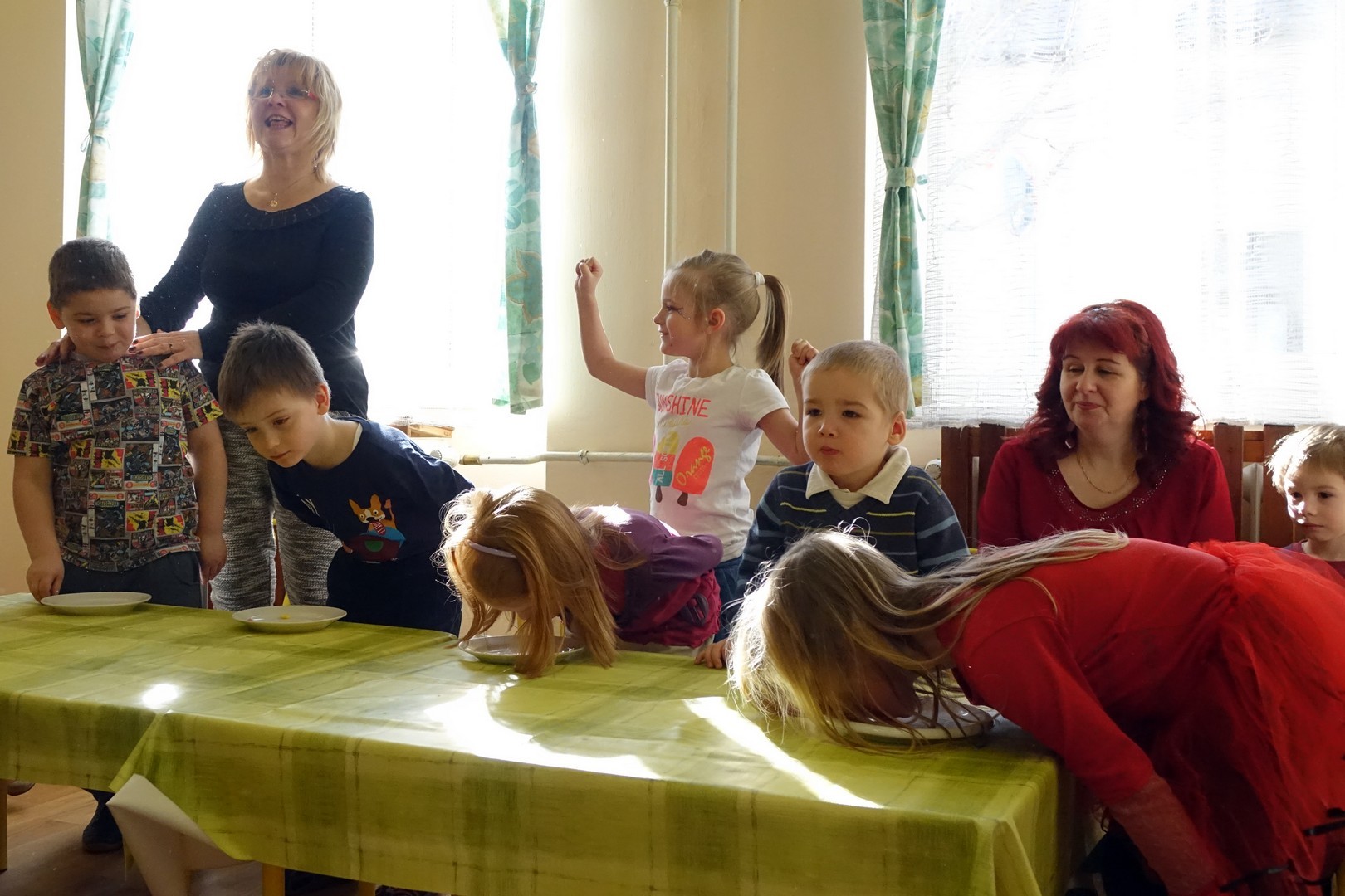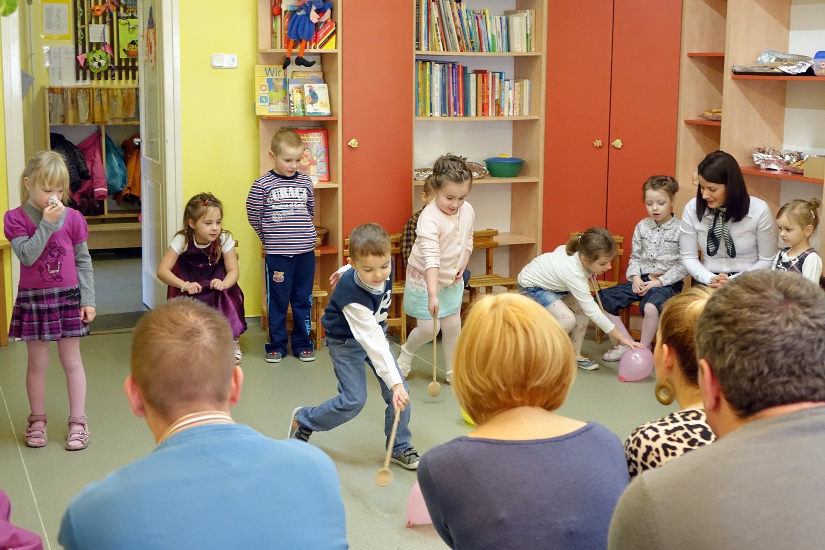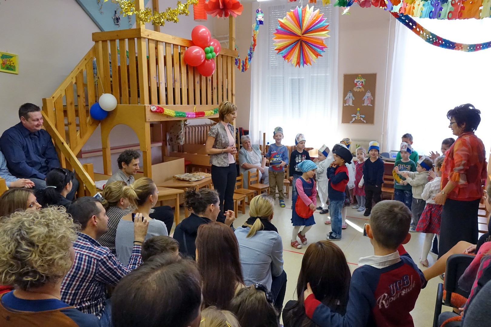 A farsangot minden ovis csoport külön ünnepelte. A kicsik valahány teremben elsőként magyar és német nyelvű műsorokat adtak elő vendégeiknek, majd különféle versenyjátékokban mérhették össze tudásukat, mely során szüleiket is bevonhatták a vetélkedésbe. Többek között seprűtáncos, csoki evős, tejszínhab nyalós, ping-pong labdát evőkanálon egyensúlyozós, vagy apu lábán állva pingvinjárós versenyszámokban vehettek részt kicsik és nagyok.