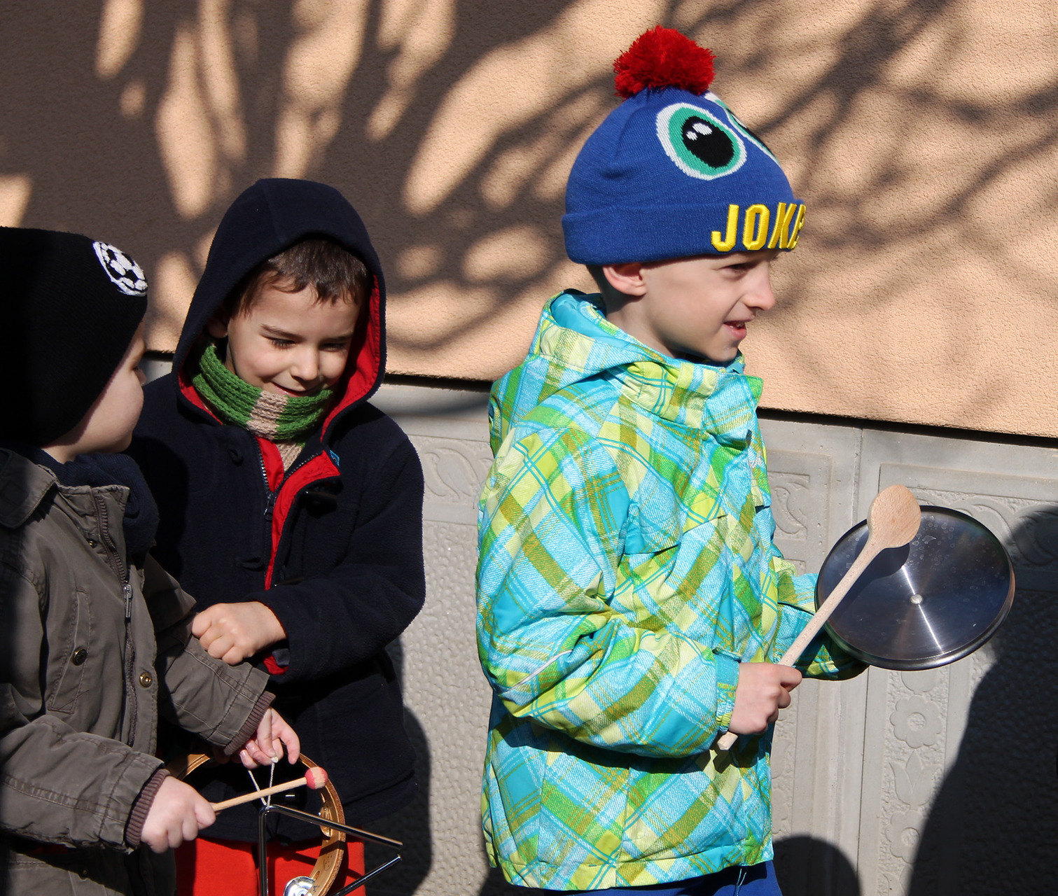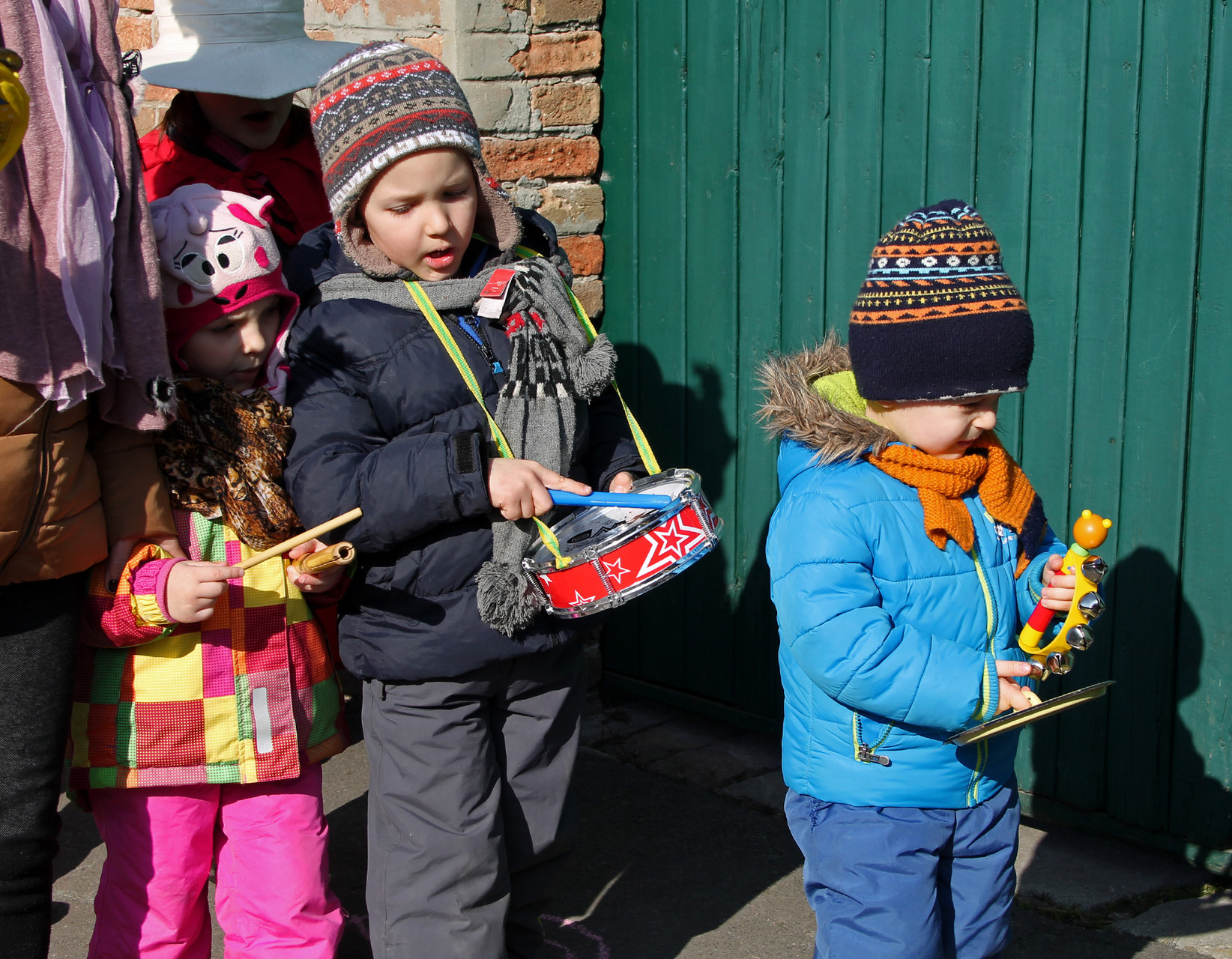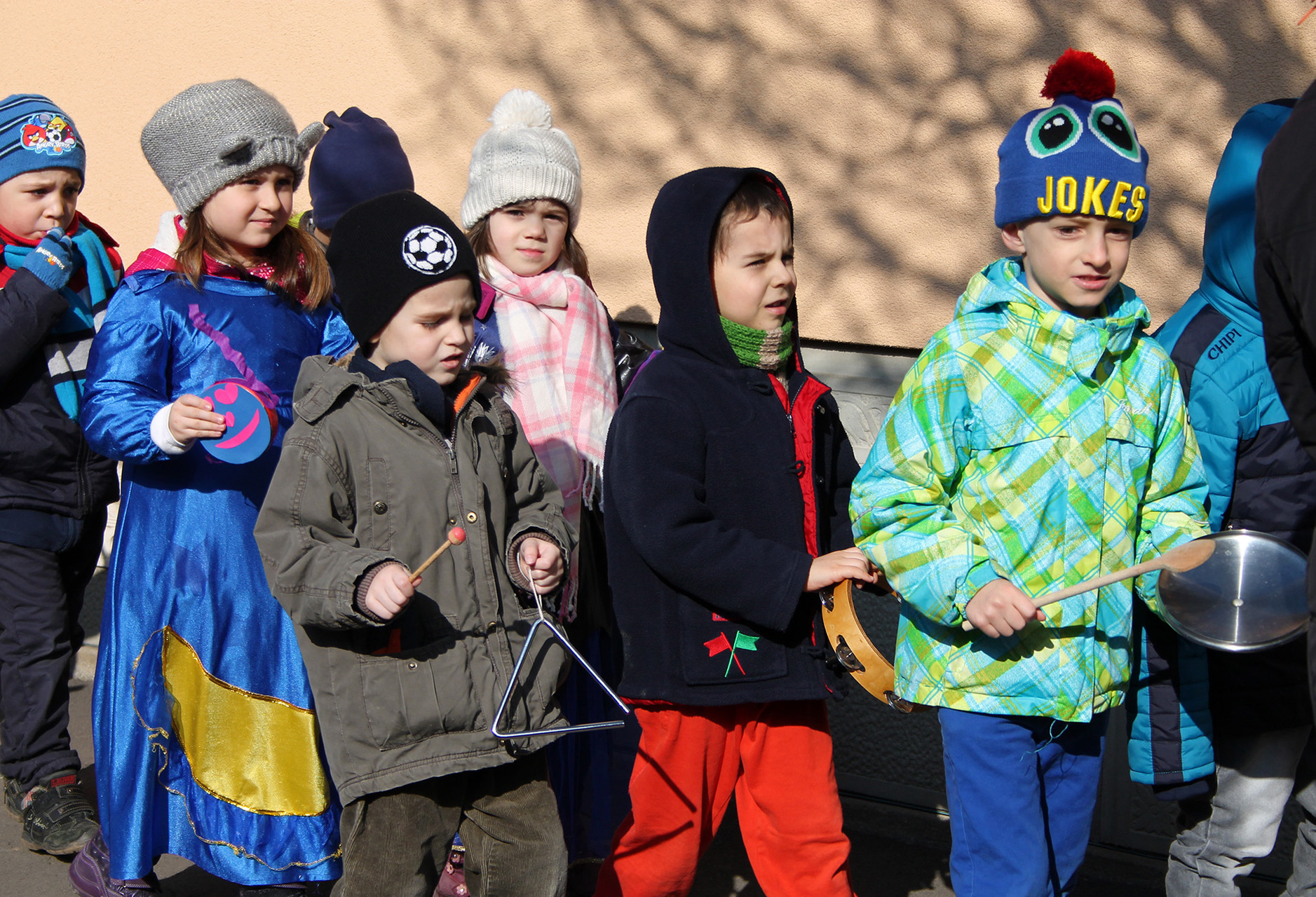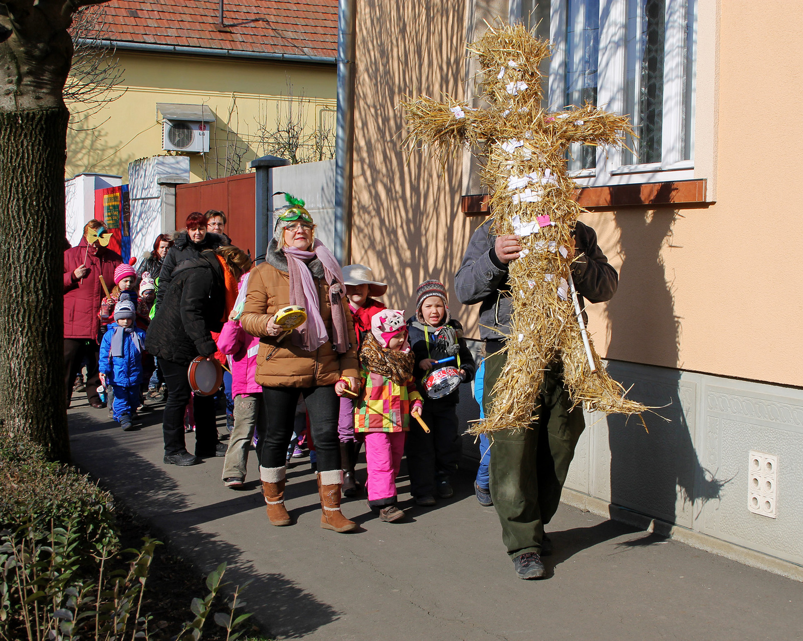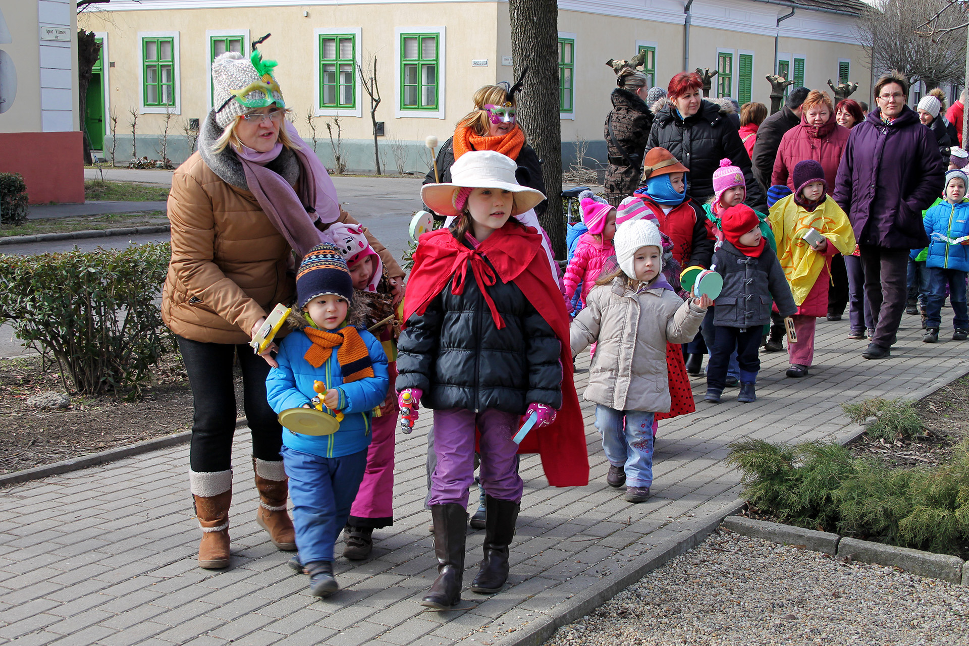 Az ovisok a korábban elkészített kiszebáb mögött felsorakozva vonultak az Apor térre, hogy iskolás pajtásaikkal közösen űzzék el a telet. Menet közben a gyermekek magyar és német nyelvű mondókákat és énekeket harsogtak, miközben fedőkkel, kaviccsal megtöltött tárgyakkal, kereplőkkel, sípokkal és dobokkal csörömpöltek - épp csak a nádi hegedű hiányzott a lármás eszközök sorából.