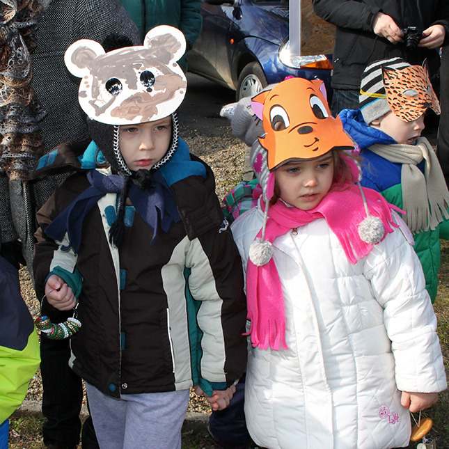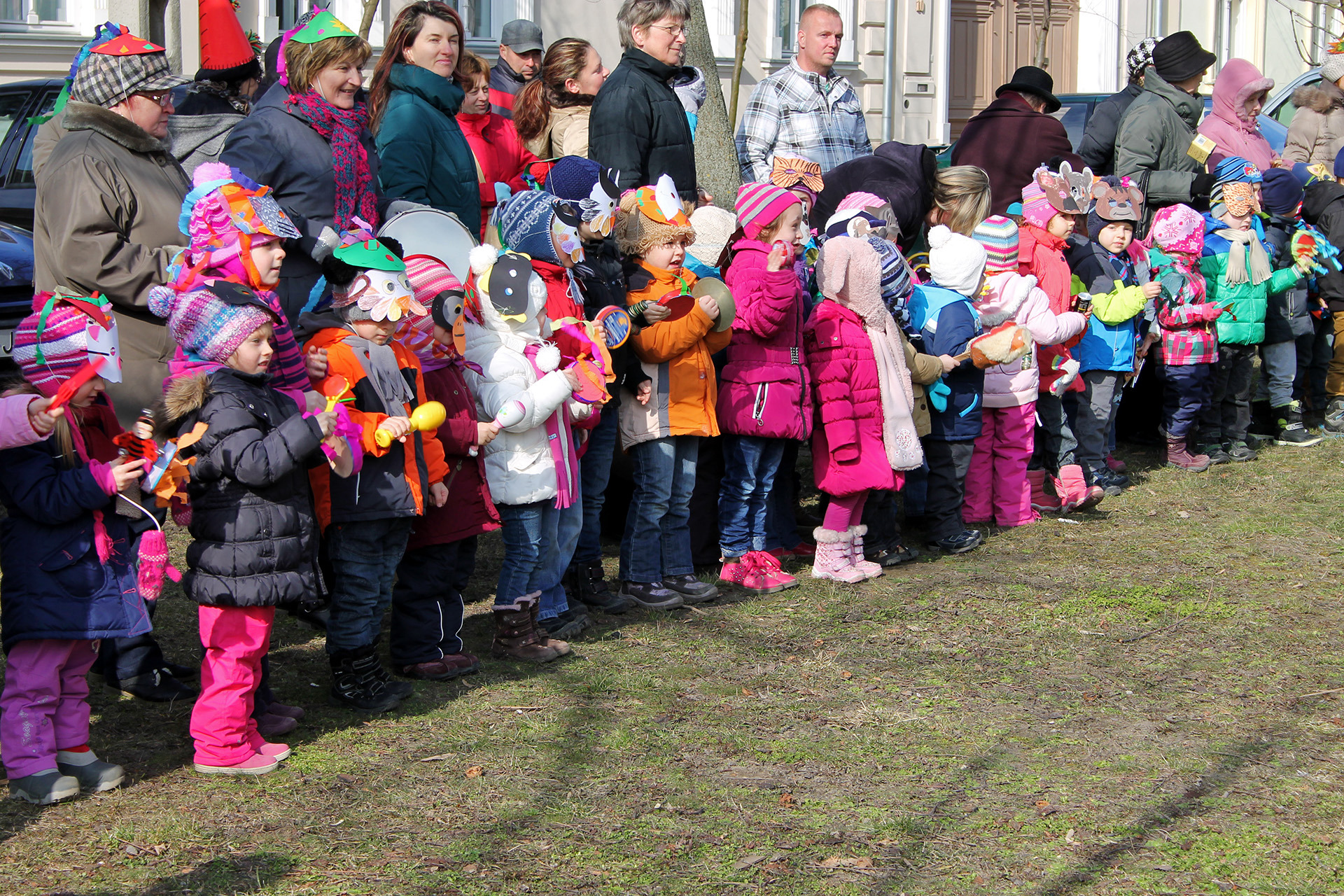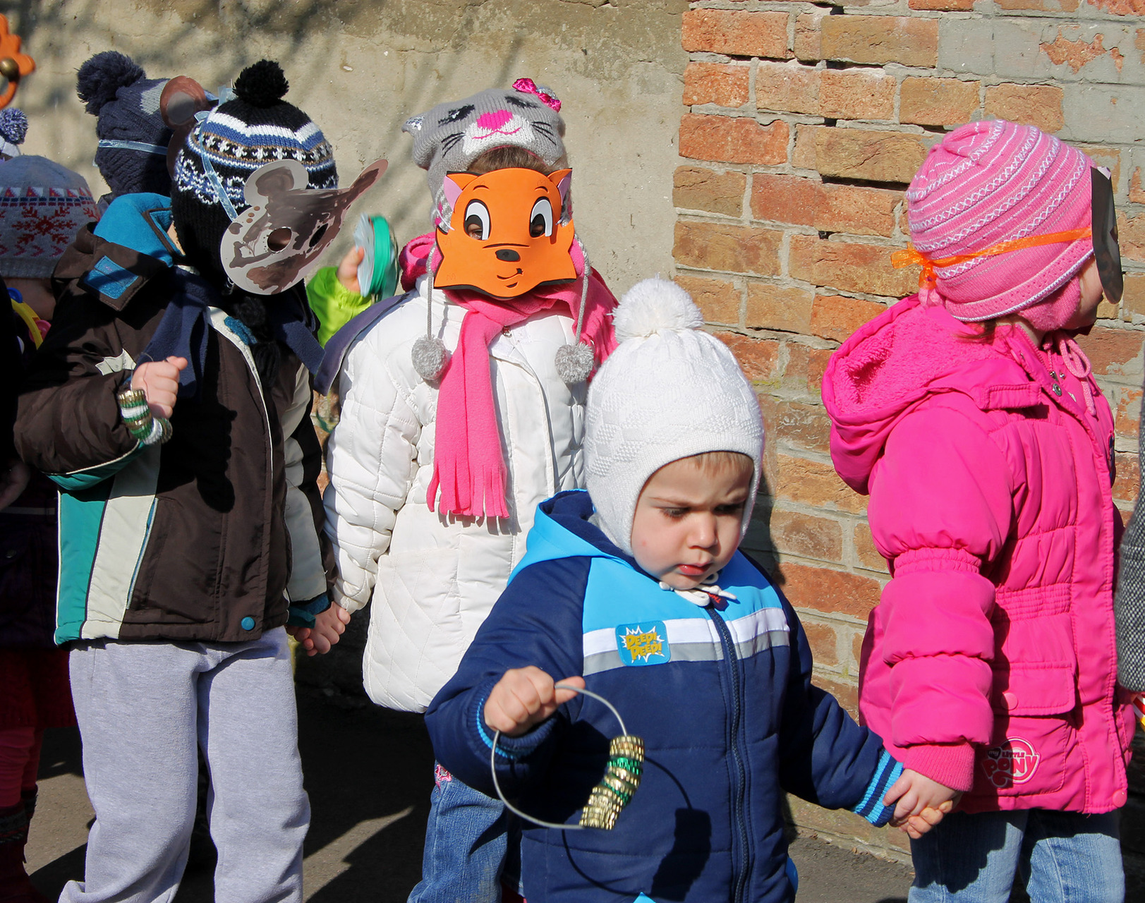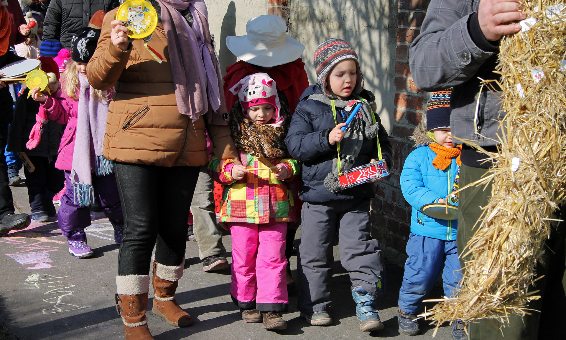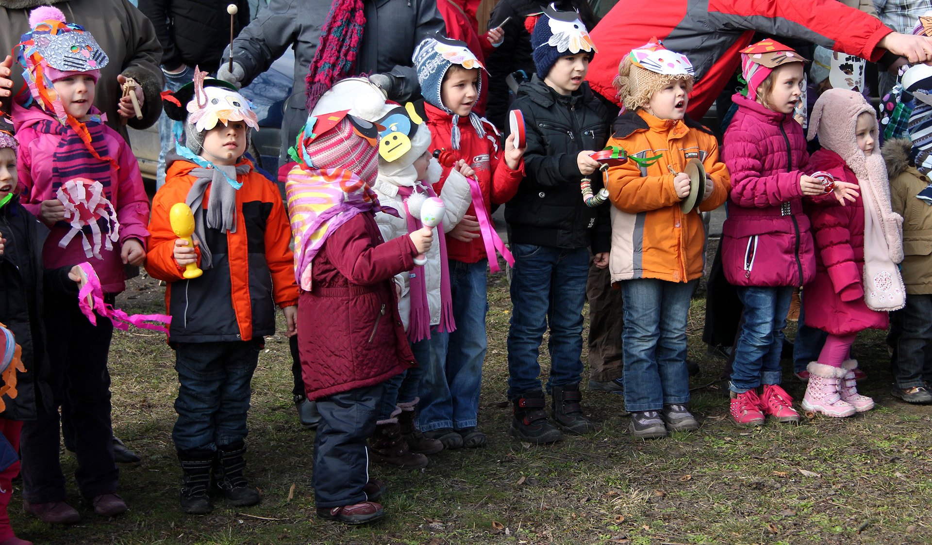 Az ovisok a korábban elkészített kiszebáb mögött felsorakozva vonultak az Apor térre, hogy iskolás pajtásaikkal közösen űzzék el a telet. Menet közben a gyermekek magyar és német nyelvű mondókákat és énekeket harsogtak, miközben fedőkkel, kaviccsal megtöltött tárgyakkal, kereplőkkel, sípokkal és dobokkal csörömpöltek - épp csak a nádi hegedű hiányzott a lármás eszközök sorából.