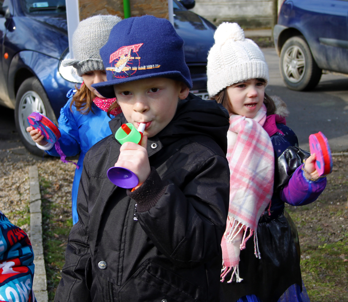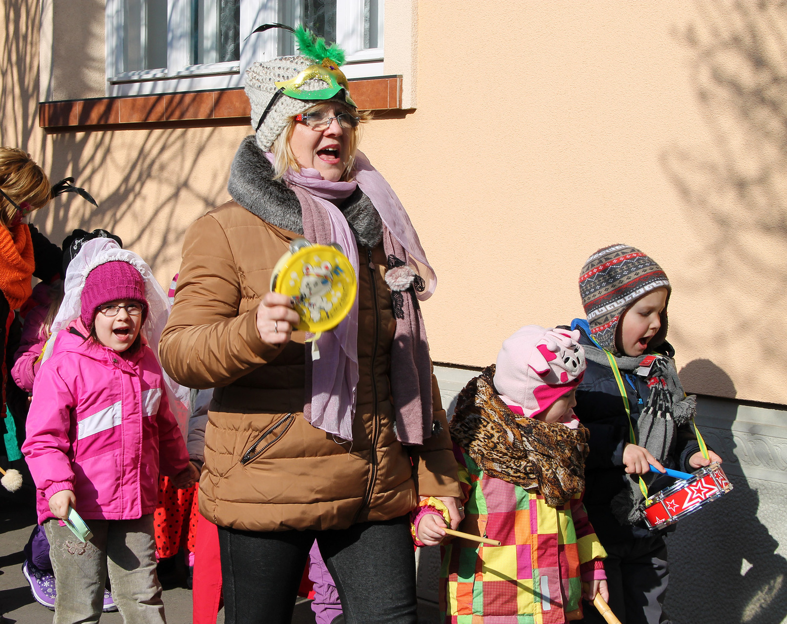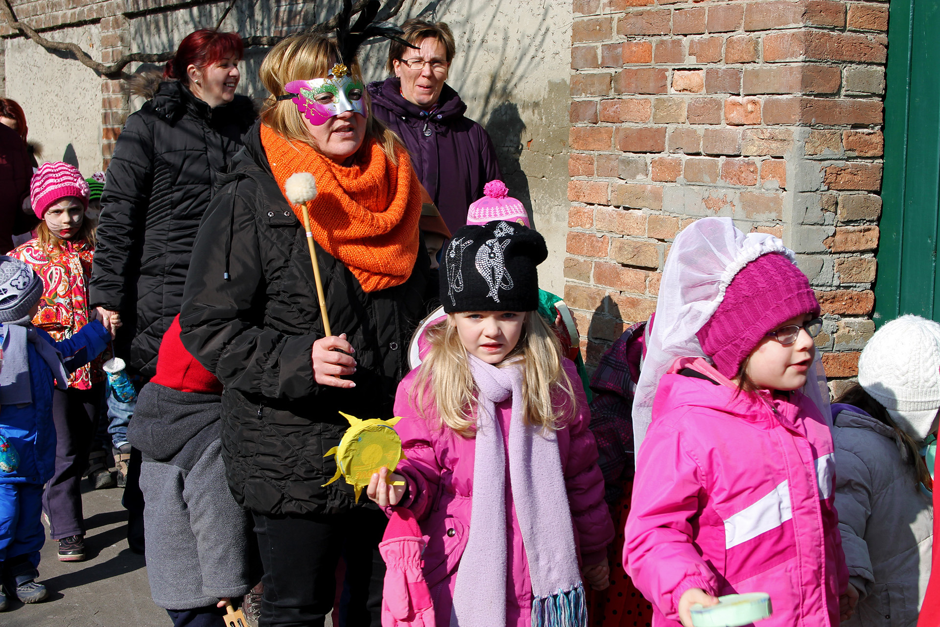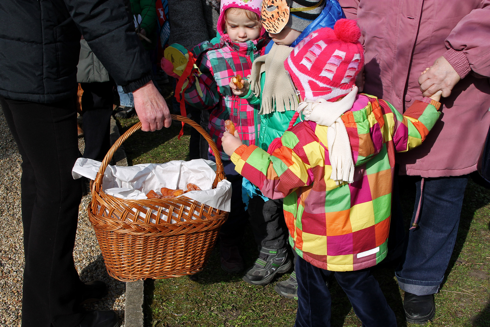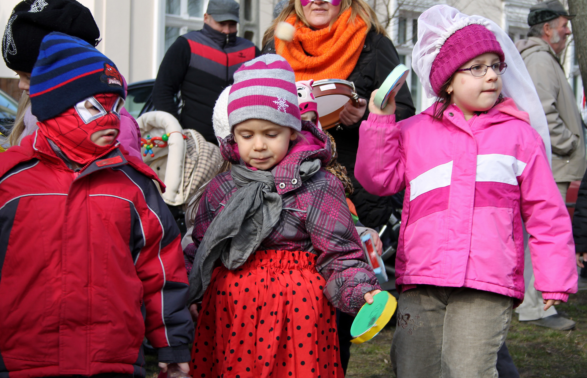 Az ovisok a korábban elkészített kiszebáb mögött felsorakozva vonultak az Apor térre, hogy iskolás pajtásaikkal közösen űzzék el a telet. Menet közben a gyermekek magyar és német nyelvű mondókákat és énekeket harsogtak, miközben fedőkkel, kaviccsal megtöltött tárgyakkal, kereplőkkel, sípokkal és dobokkal csörömpöltek - épp csak a nádi hegedű hiányzott a lármás eszközök sorából.