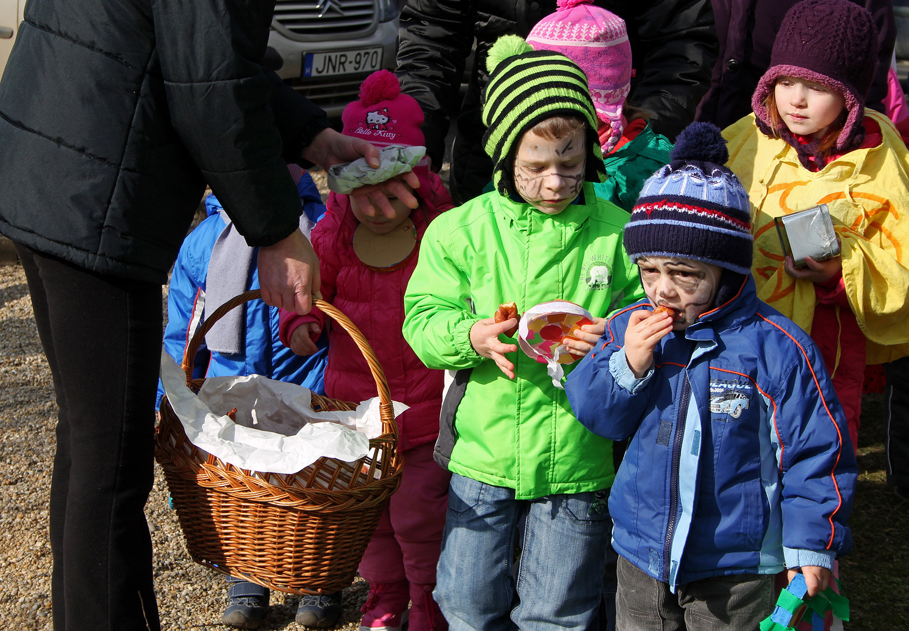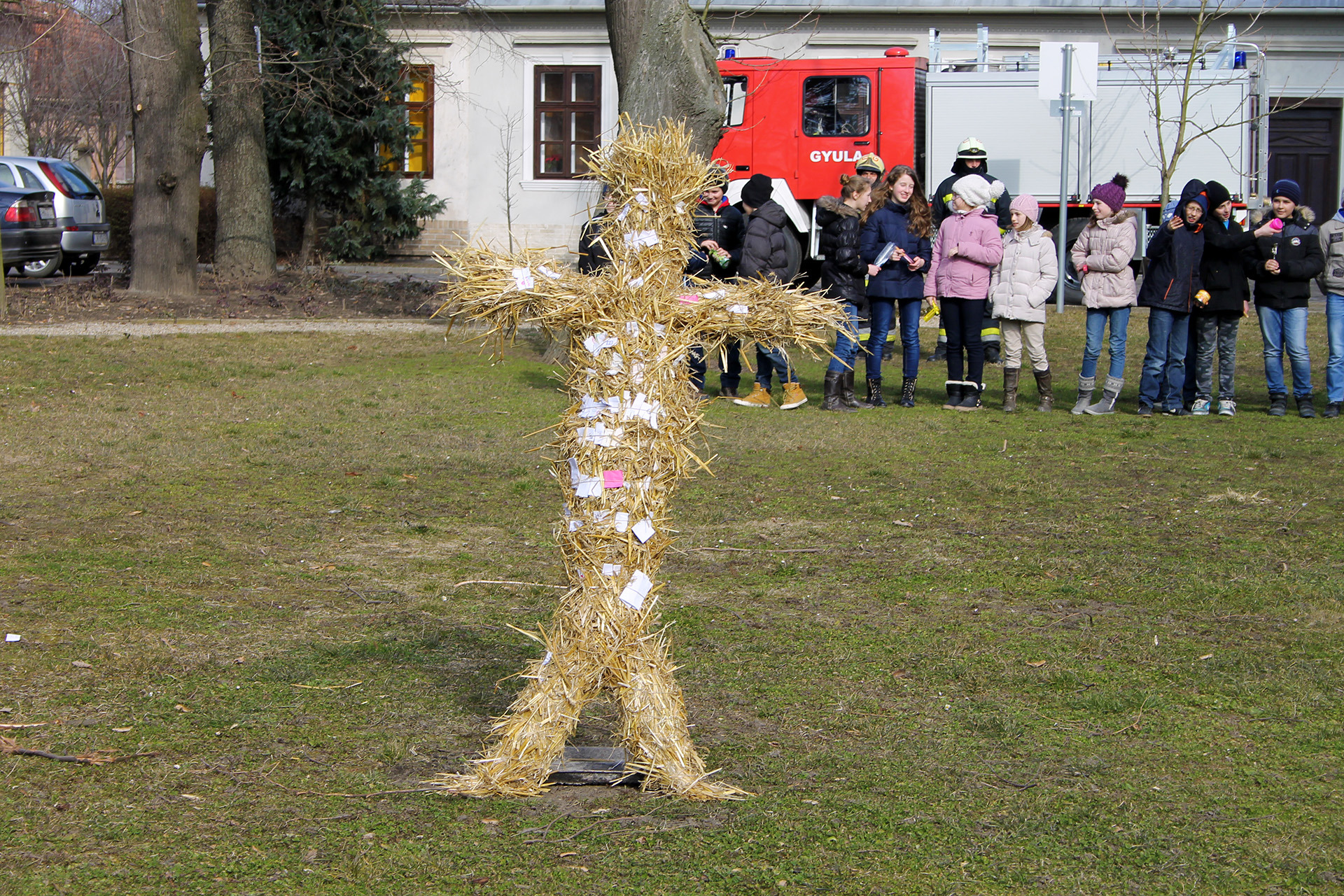 Zajkeltő eszközök ricsajától és gyermeki hangok zsibongásától zengett február 17-én a gyulai Apor tér és környéke. Mint oly sok népszokást, a téltemetés különleges hagyományát is évről évre megünneplik a Németvárosi Óvoda lurkói és az Implom József Általános Iskola német tagozatos diákjai. Ezen a napon kicsik és nagyok hangoskodással, mondókákkal és énekekkel igyekeztek elhessegetni a télidőt, valamint a szokásokhoz hűen idén is elégették a hideg évszakot jelképező szalmabábot.