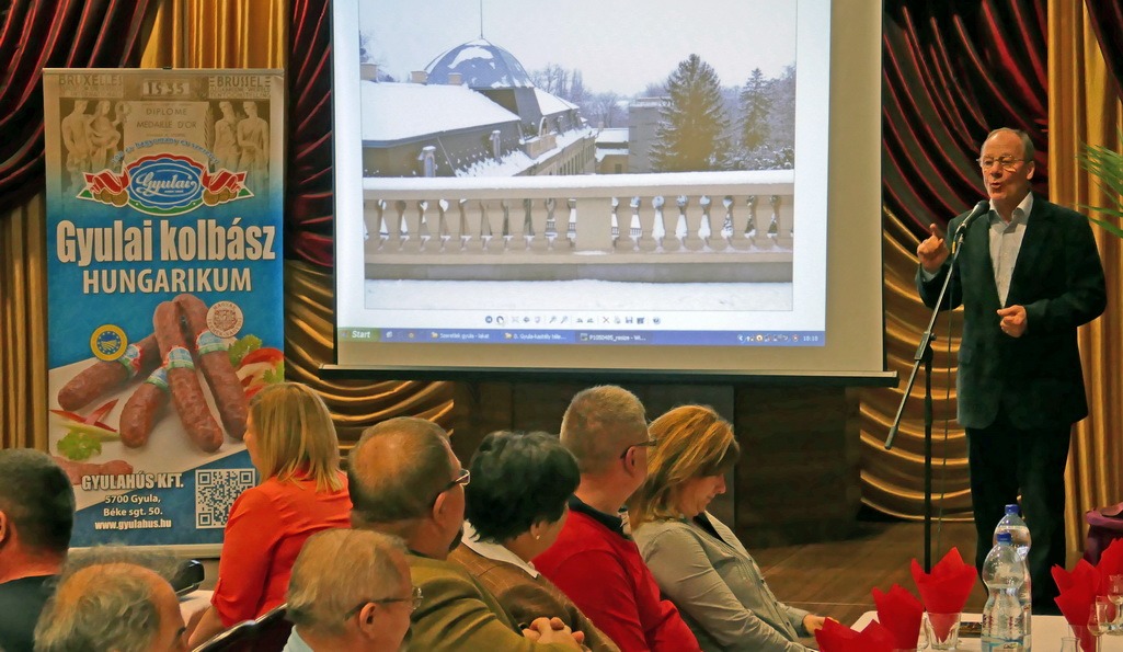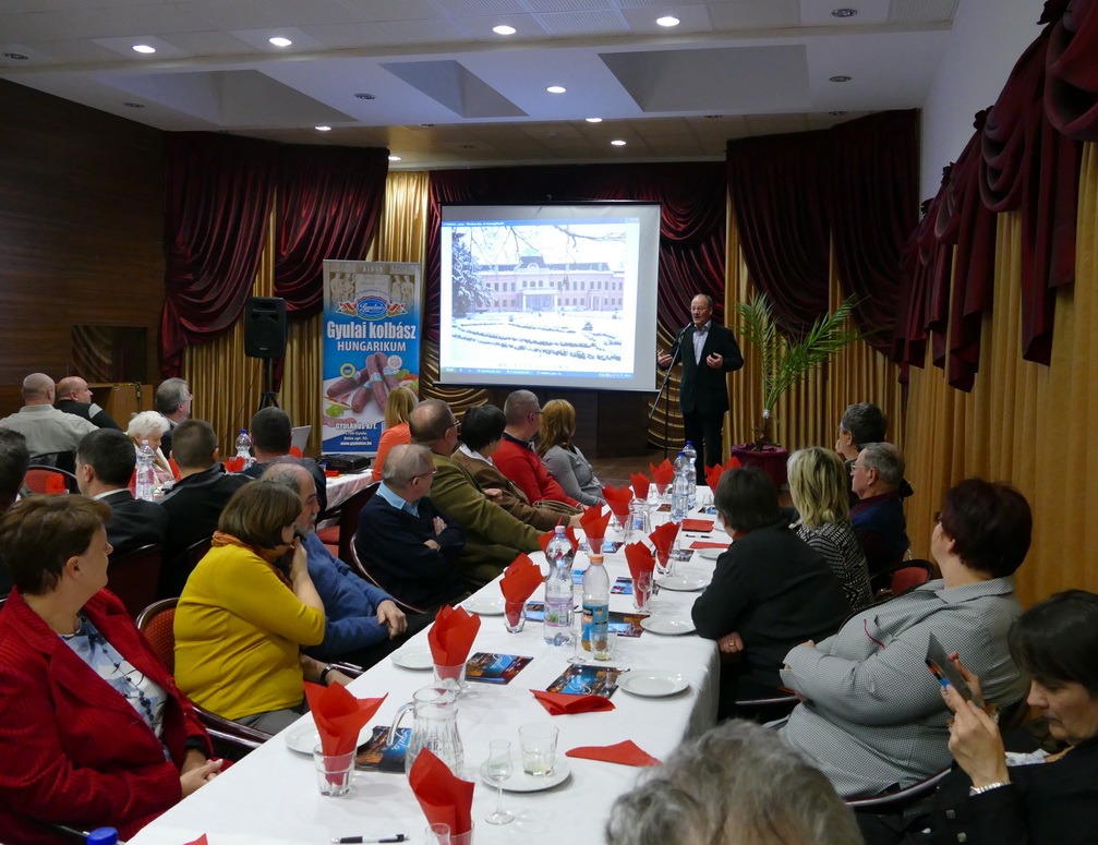 Gyula város a múlt héten meghívást kapott a Sajószentpéteri Kulturális Központ Hungaricum Klubjának rendezvényére. A Borsod-Abaúj-Zemplén megyei településre Bagyinszki Zoltán, a Gyulai Értéktár Bizottság titkára, valamint Őzse Andrea, a Gyulai Pálinka Manufaktúra Kft. rendezvényigazgatója és főzőmestere látogatott el, hogy bemutassa Gyula város értékeit. A rendezvényen mintegy 120-an vettek részt, a sajószentpéterieken és a gyulaiakon kívül Miskolcról, és Kazincbarcikáról is érkeztek vendégek.