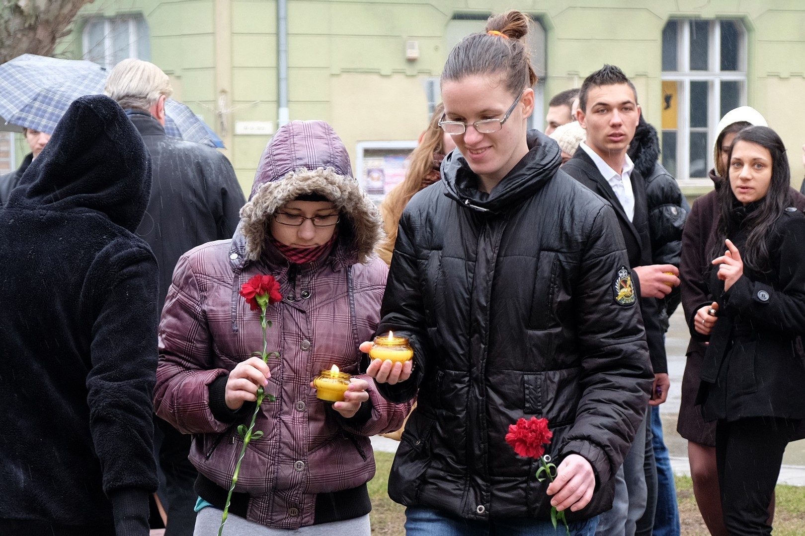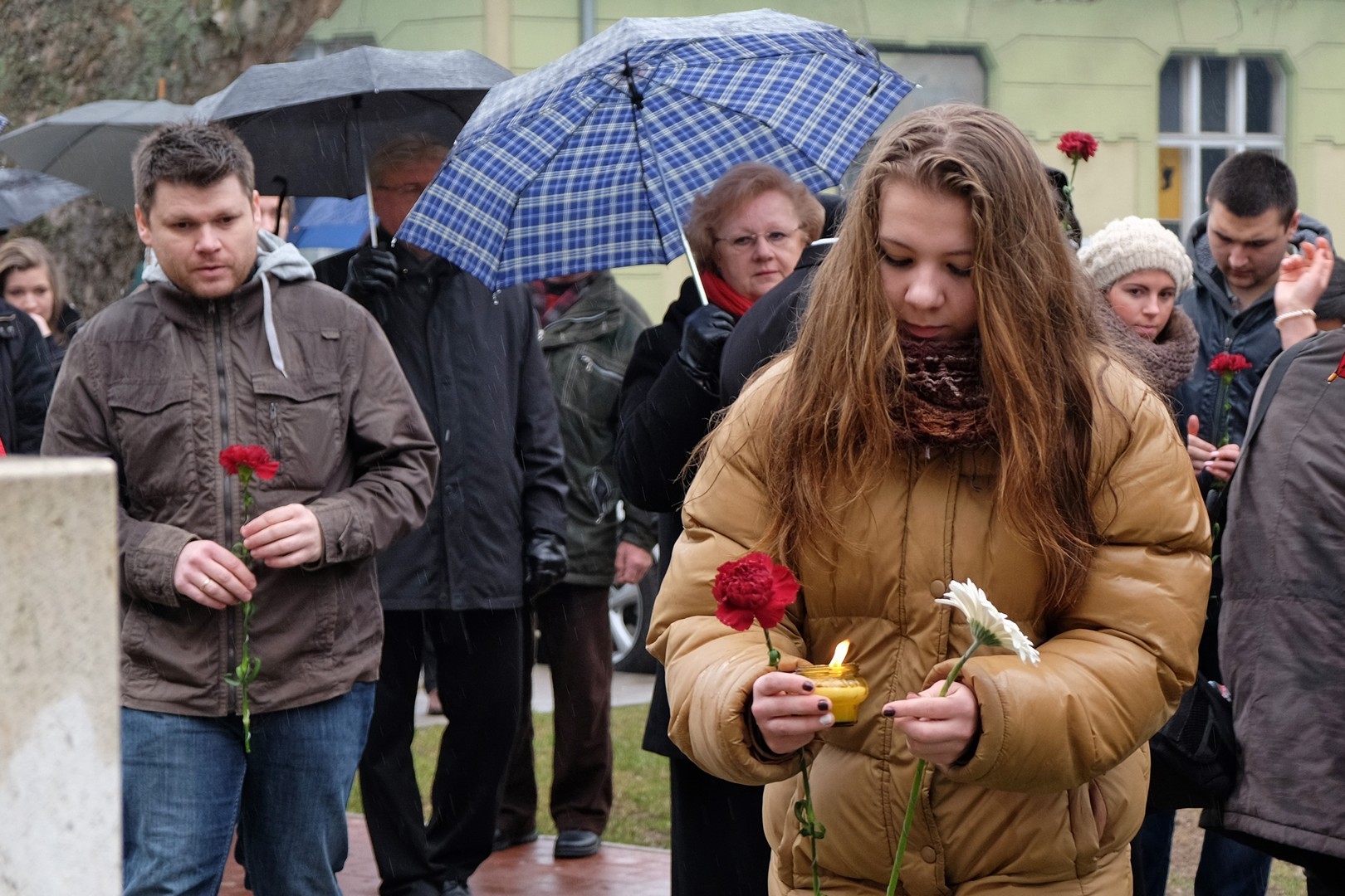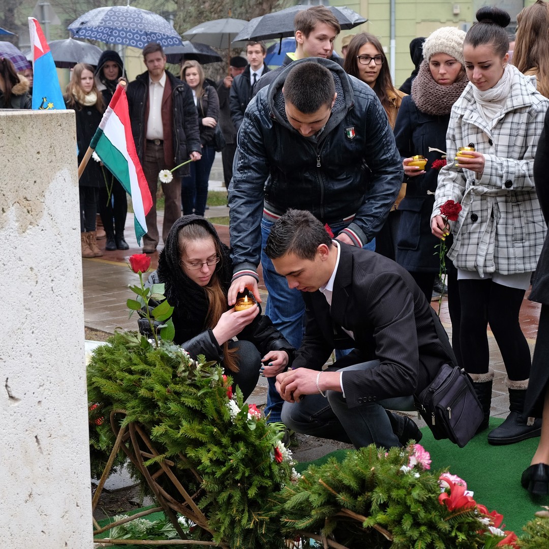 A Szózat után a jelenlévők gyertyagyújtással és virágfüzérekkel rótták le tiszteletüket a kommunizmus áldozatai előtt.