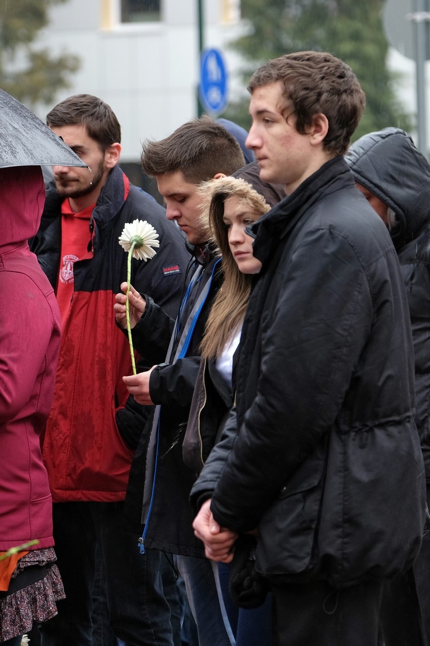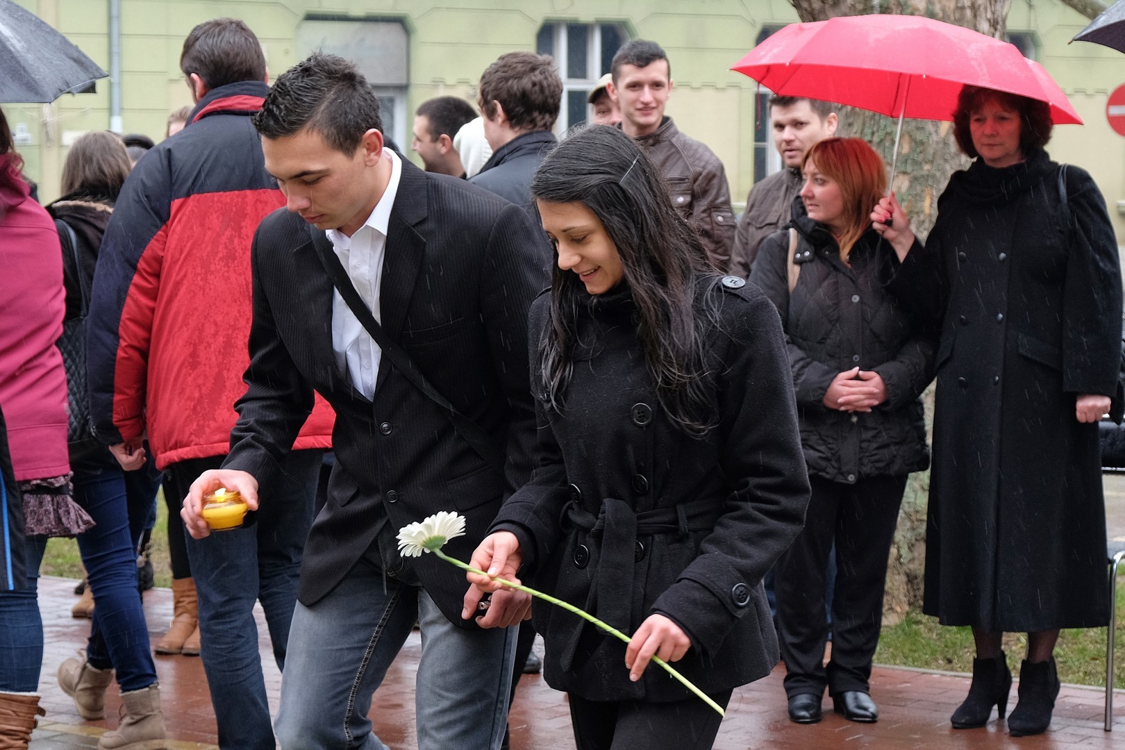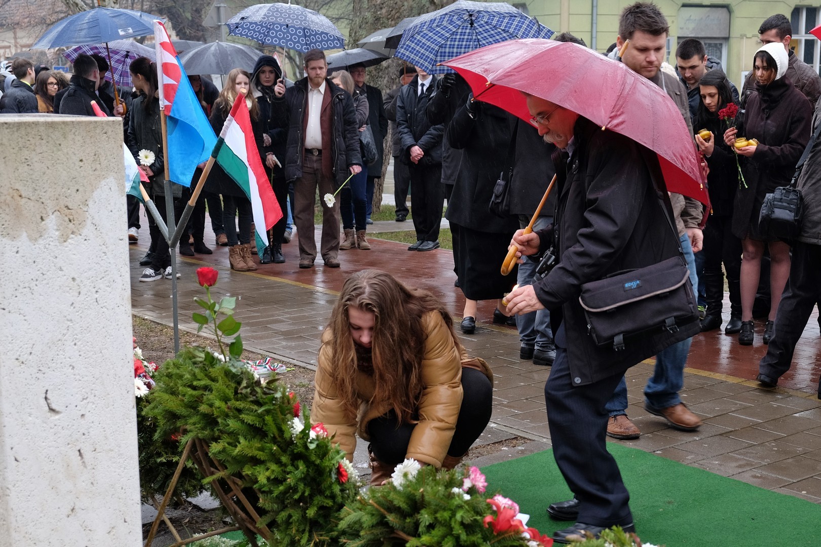 A Szózat után a jelenlévők gyertyagyújtással és virágfüzérekkel rótták le tiszteletüket a kommunizmus áldozatai előtt.