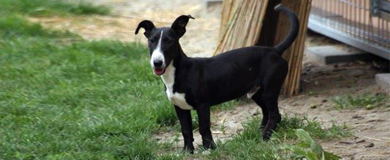 Fickó 5 hetesen a belvárosban kószált egyedül decemberben. Valószínűleg nem ajándékot indult vásárolni a családjának. Egy hölgy hazavitte, megetette, de megtartani nem tudta. A gyönyörű bullterrier keverék nagy mozgásigénnyel bír. Kedves, barátságos kutya. Szerződéssel, elő- és utókontrollal fogadható örökbe.