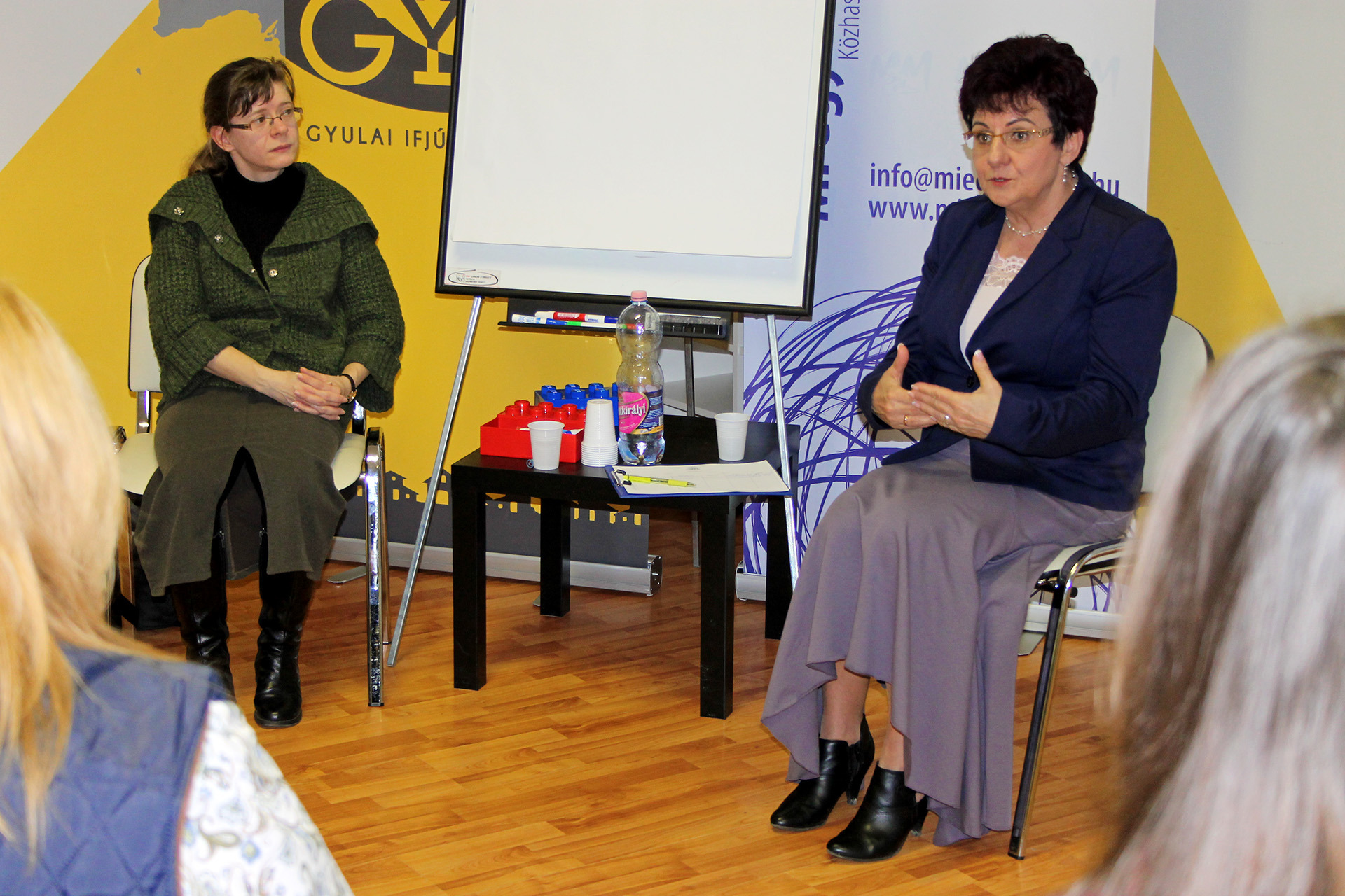 Izgalmas eszmecserének lehettünk fültanúi Szabó Andrea pedagógiai szakpszichológus és Szicsek Margit tanácsadó szakpszichológus közös pedagógus csoportfoglalkozásán a Gyulai Ifjúsági Központban. A GYIK és a Mi egy Másért Gyulai Gyermekekért és Ifjúságért Közhasznú Egyesület által szervezett programsorozat első alkalmán a szülővel való helyes és hatékony kommunikációról, valamint az ezzel kapcsolatos nehéz helyzetek kezeléséről társaloghattunk a szakemberekkel.