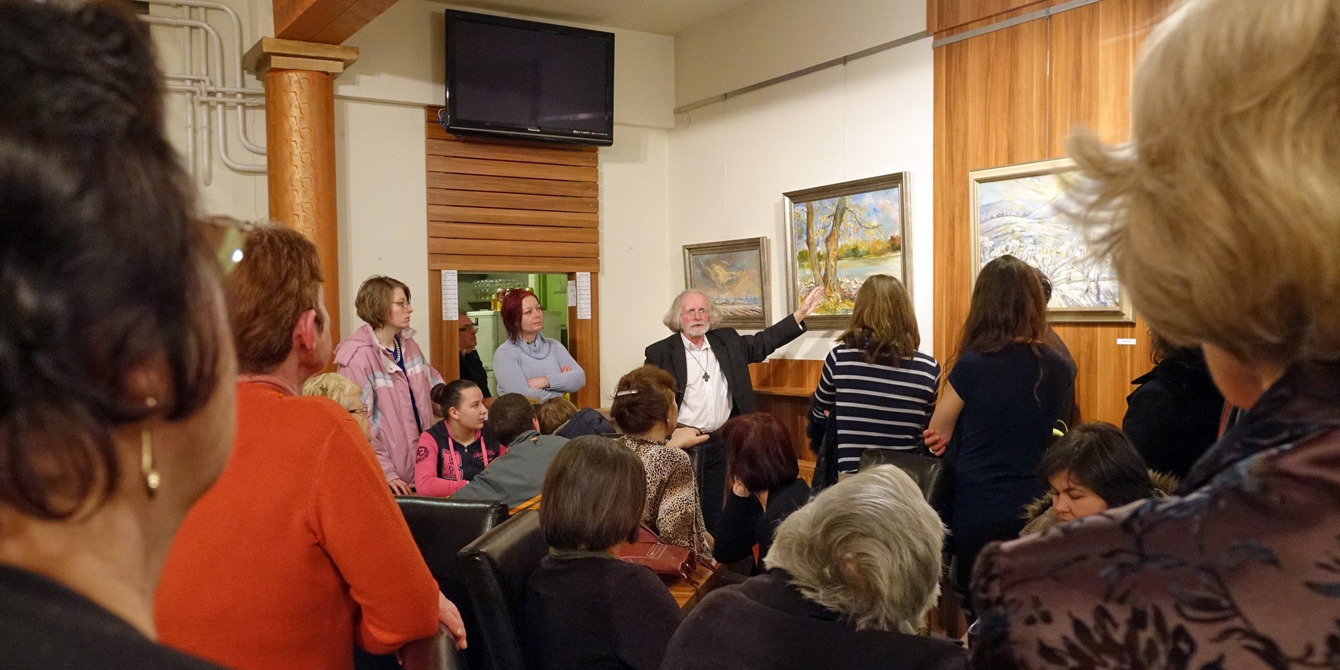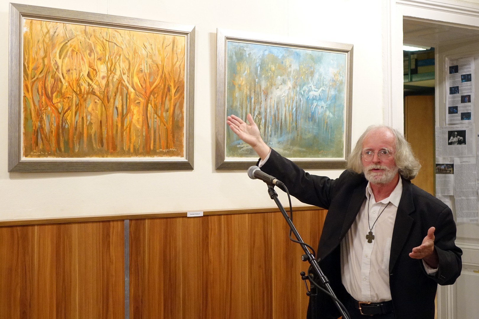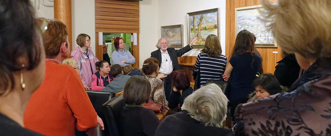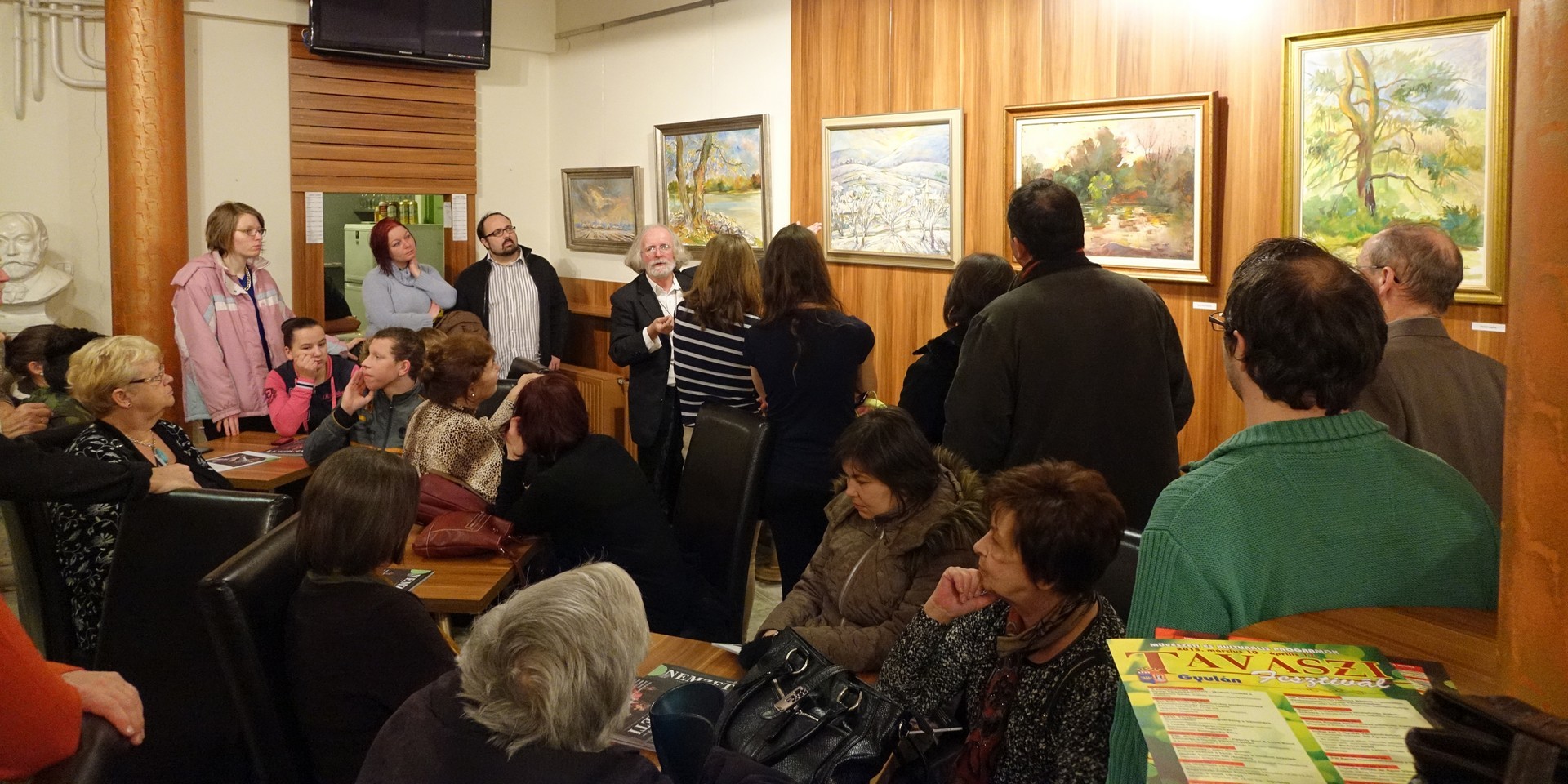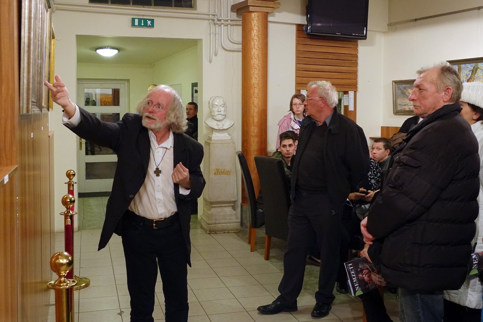 A köszöntőket követően egy nem mindennapi tárlatvezetésen vehettünk részt, mely során dr. Turai Kamil segített minket a képek rejtett mondanivalójának megértésében.
