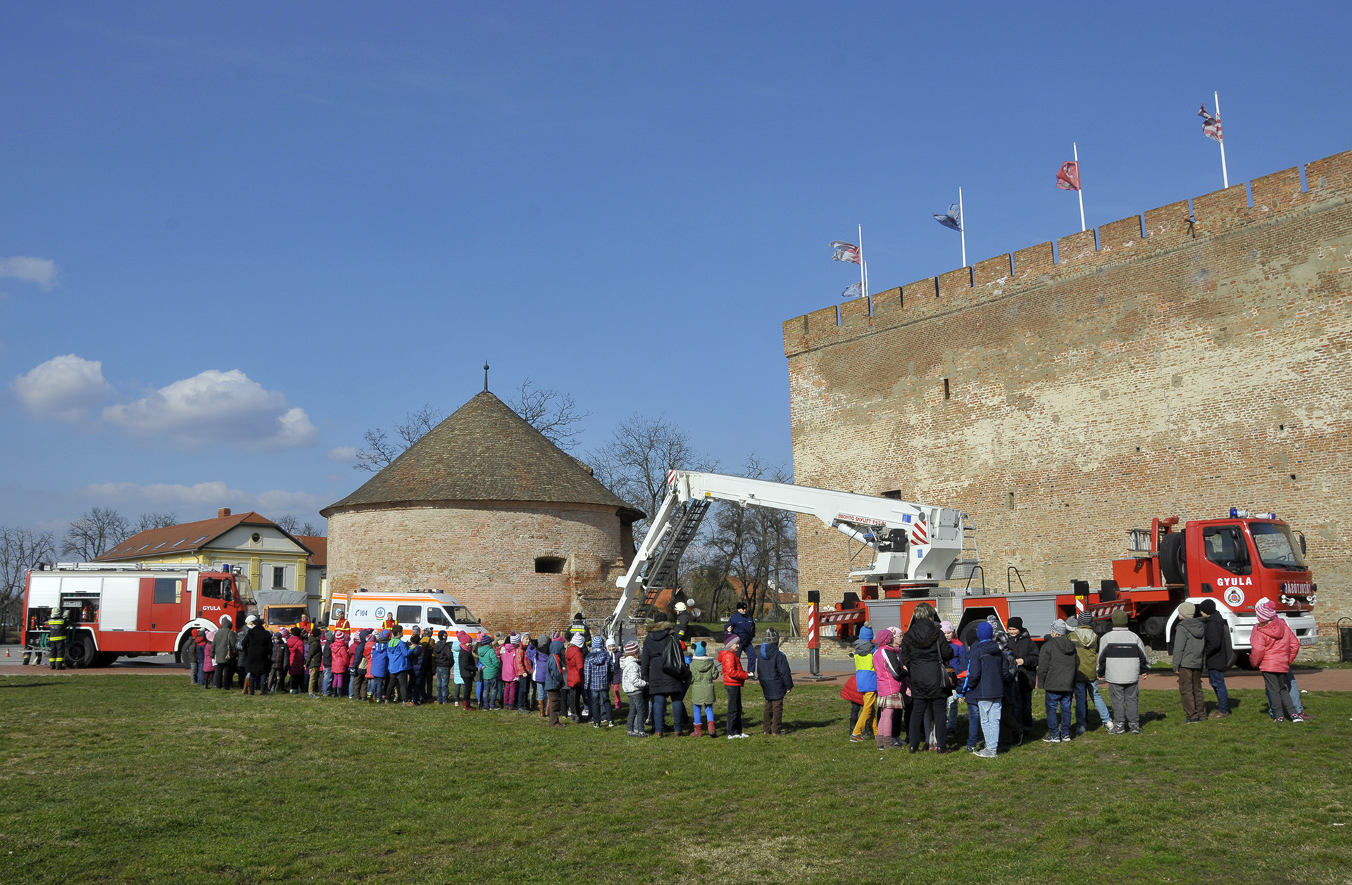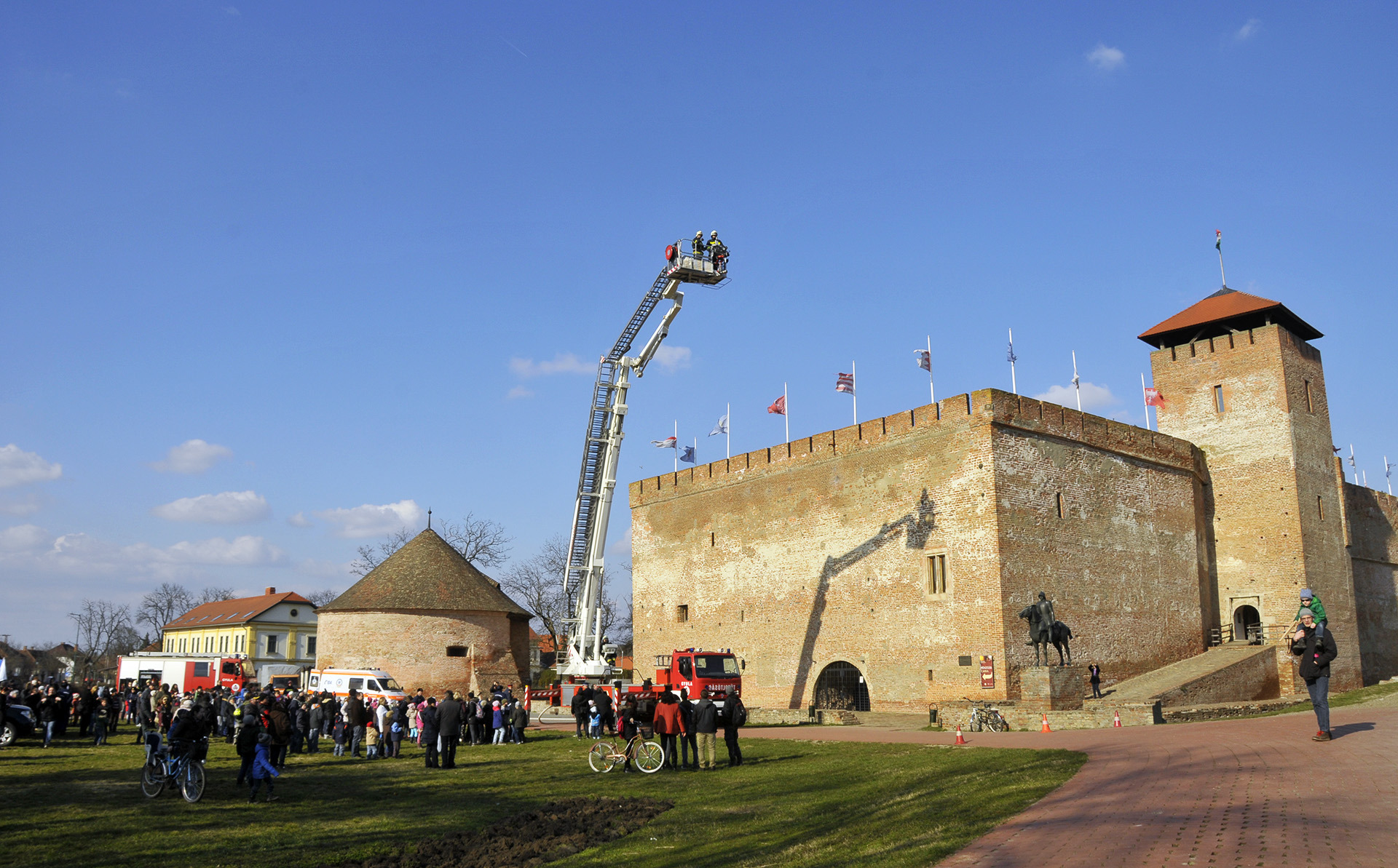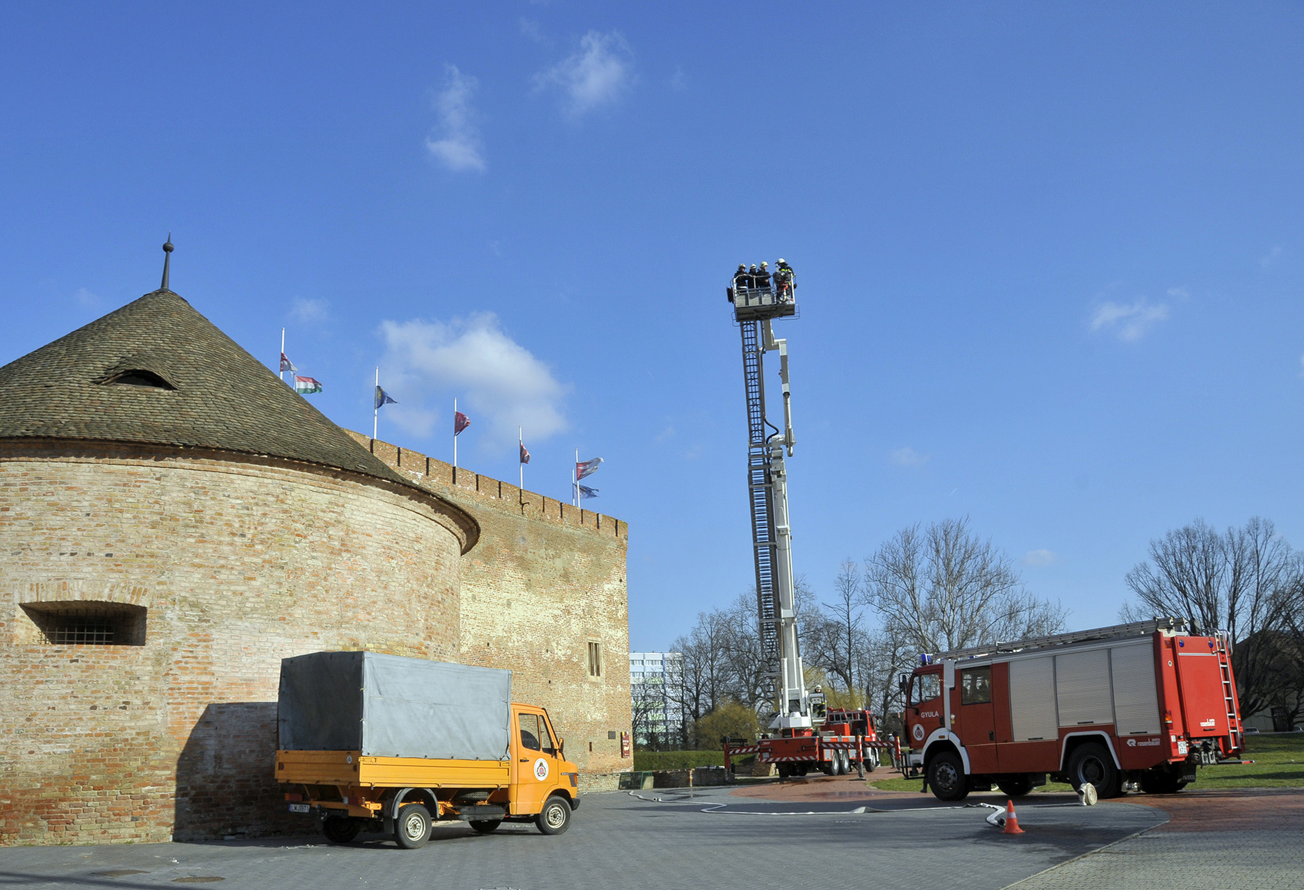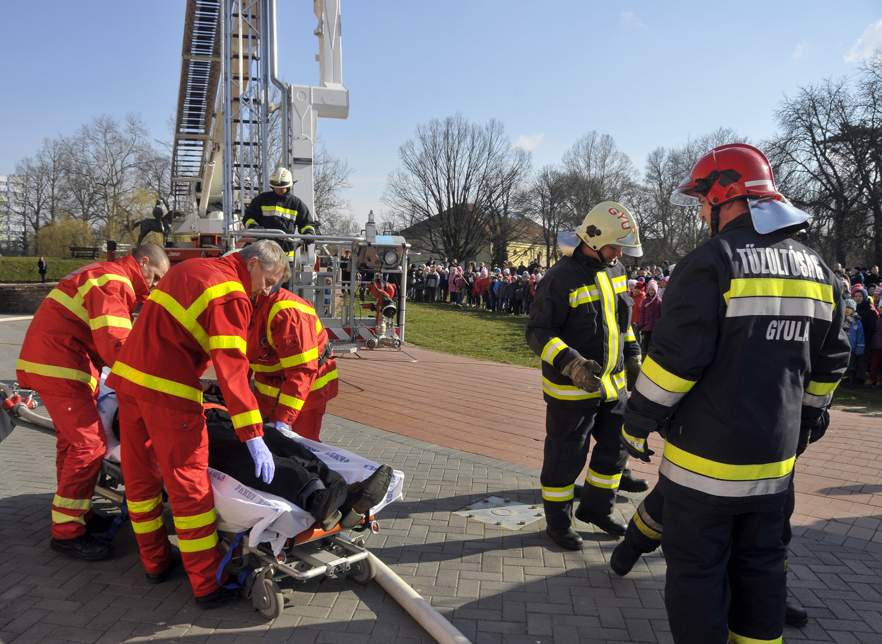 Látványos rendszerbeállító gyakorlat keretében ismerhették meg a gyulaiak a Bronto Skylift típusú, emelőkosaras, magasból mentő tűzoltószert március 6-án a gyulai várkertben. A járművet a Belügyminisztérium Országos Katasztrófavédelmi Főigazgatóságának főigazgatója, dr. Bakondi György tű. altábornagy bocsátotta Gyula város, illetve Békés megye rendelkezésére a közelmúltban.